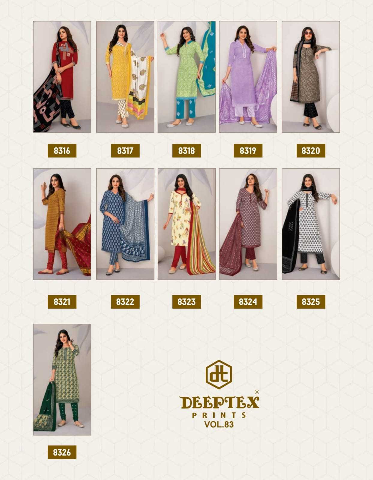 DEEPTEX PRINTS New Launch MISS INDIA VOL-83 26 Beautiful Designs Rate - 360 PURE COTTON PRINTED DRESS MATERIALS |