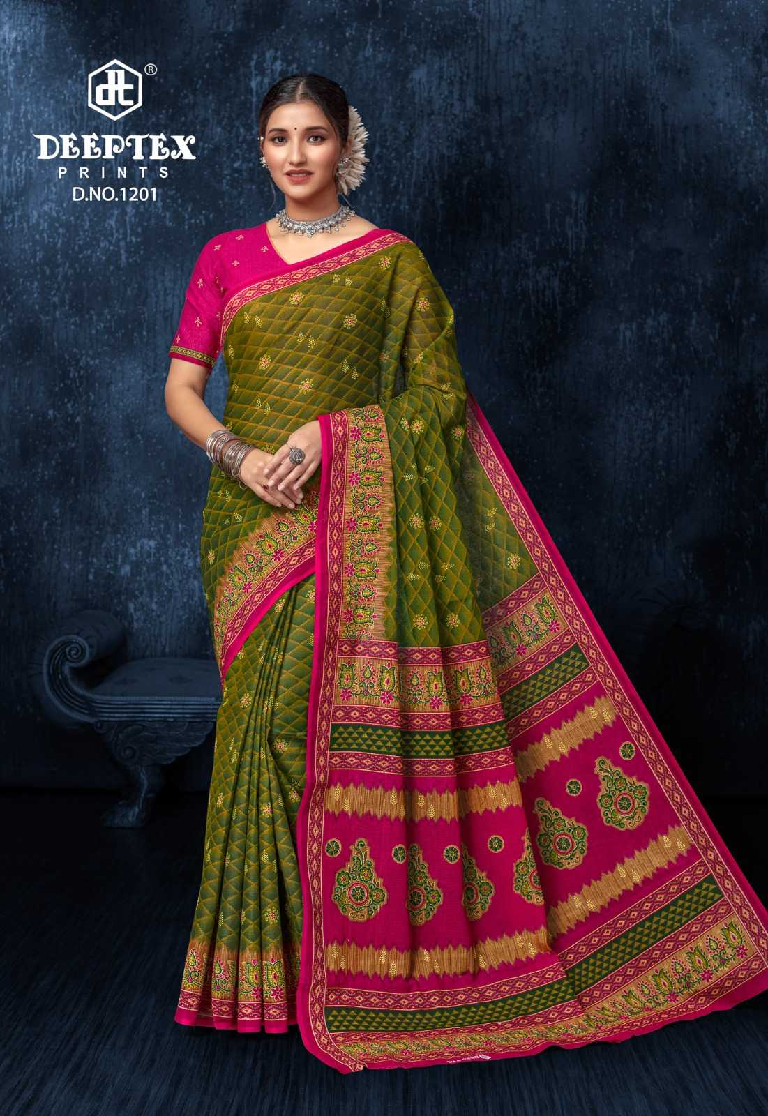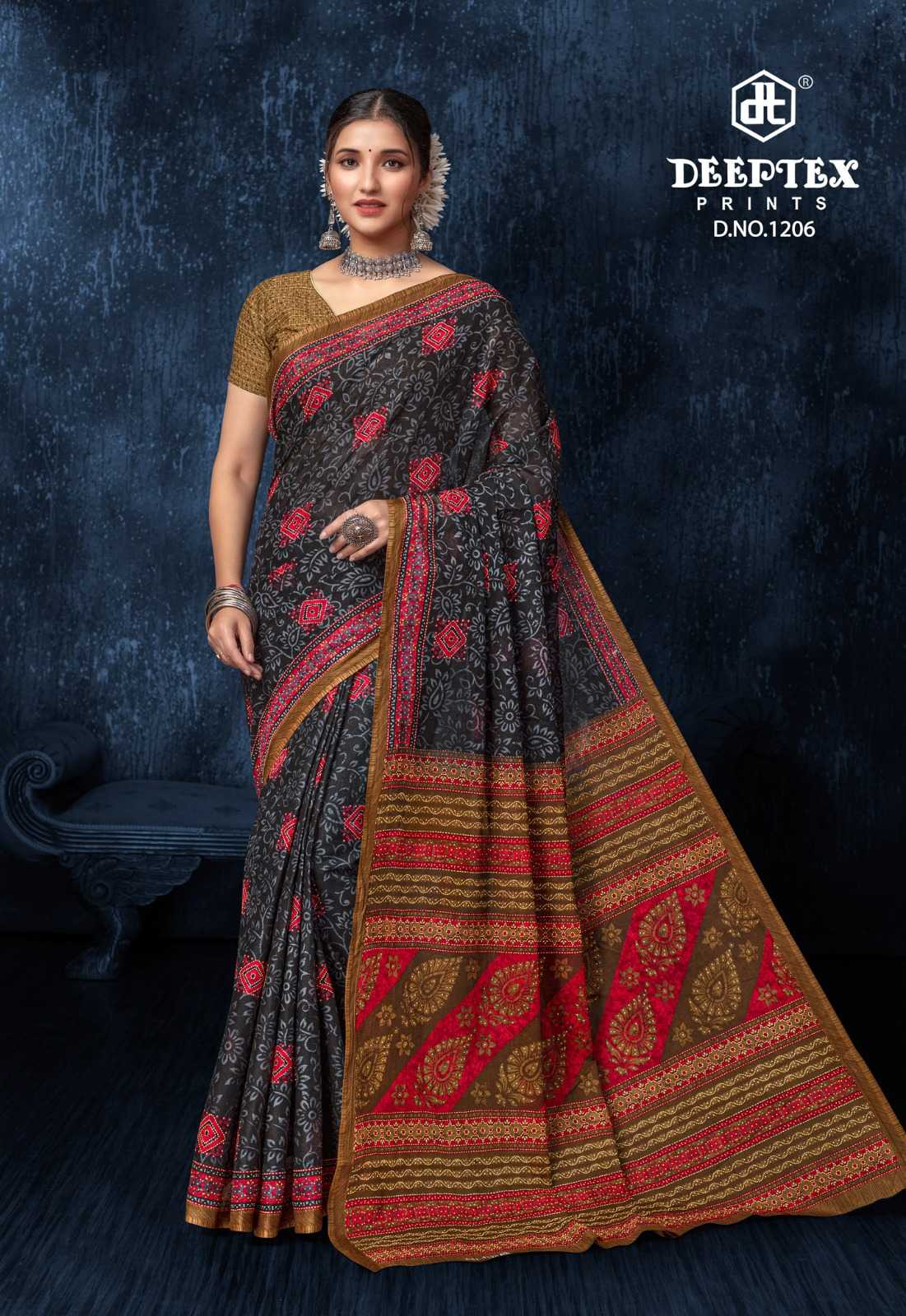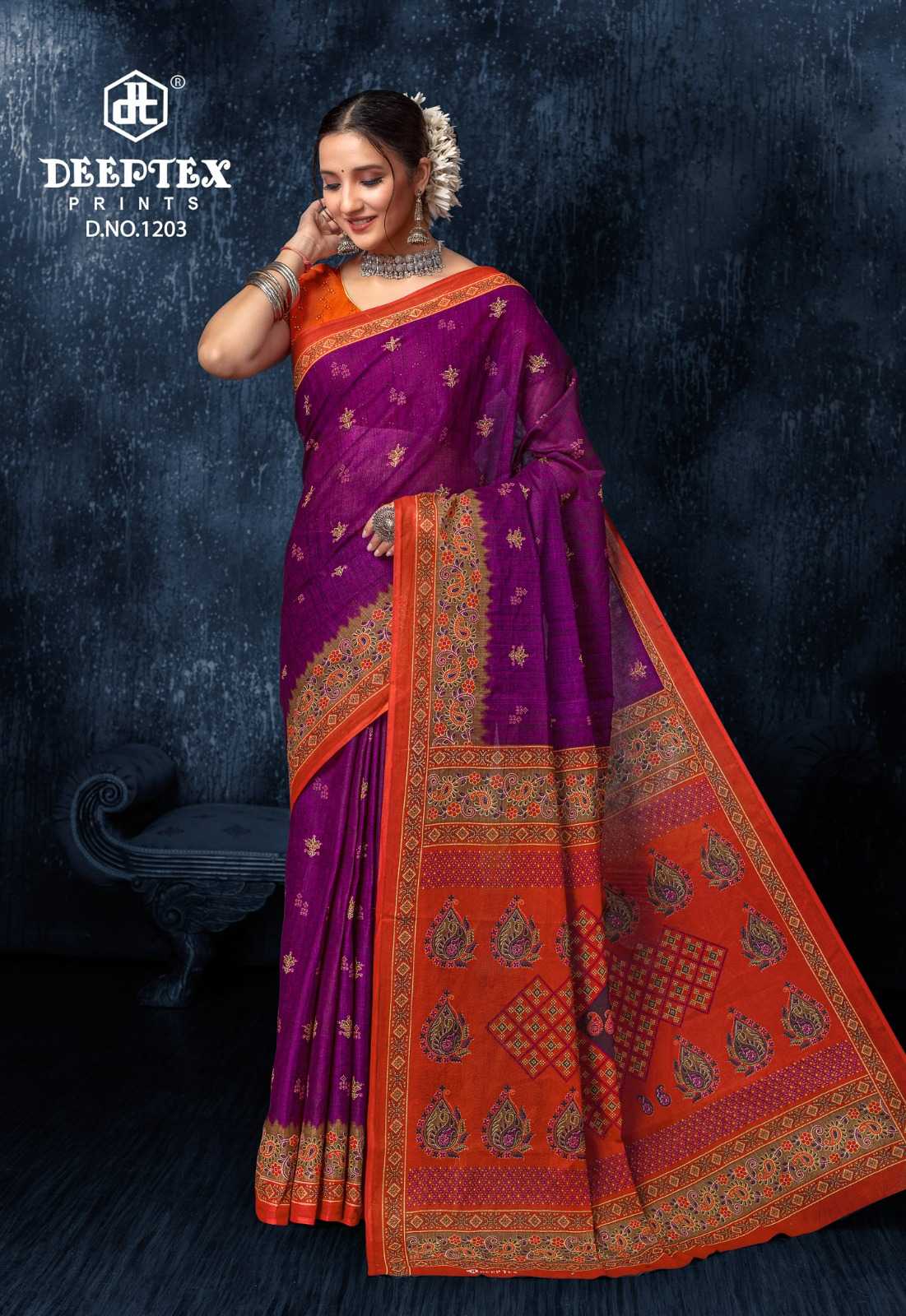 Deeptex Prints Prime Time Vol. 12 ============== Pure cotton sarees Saree With Blouse |