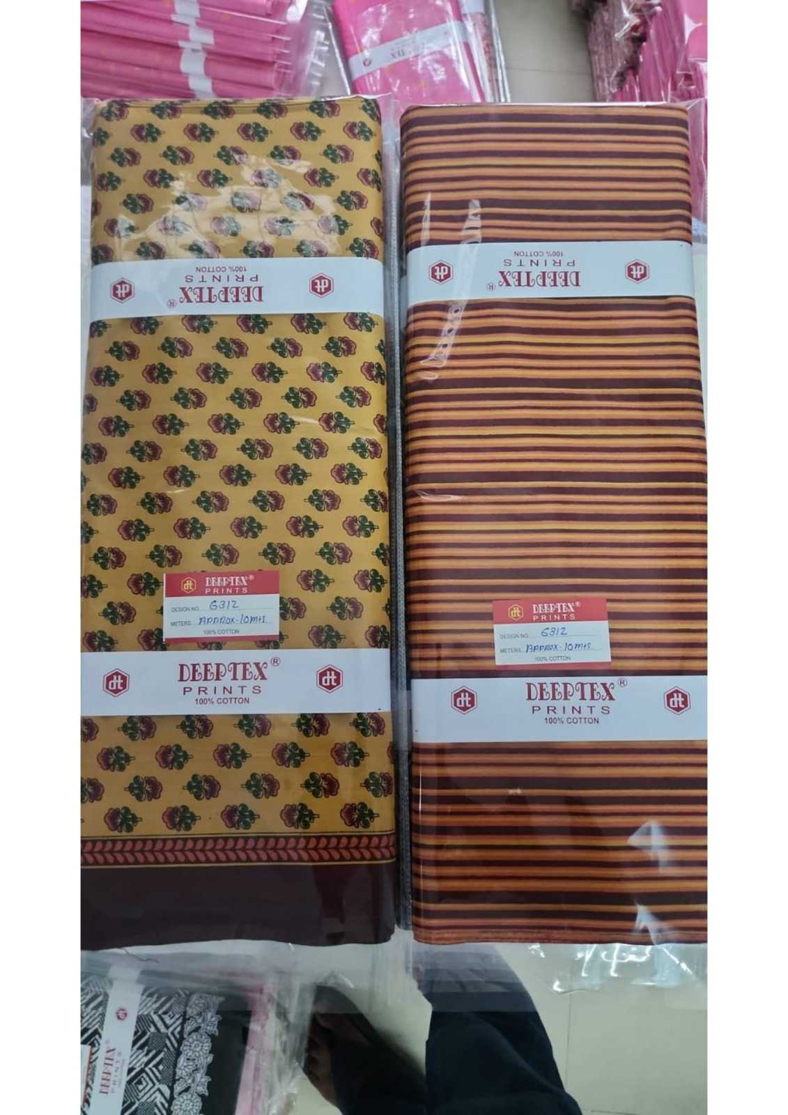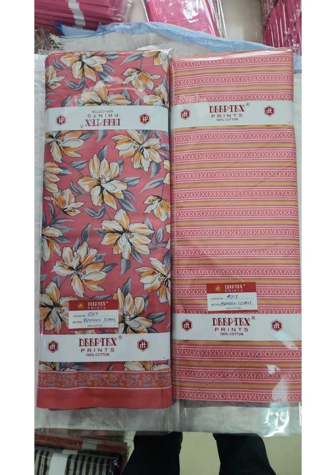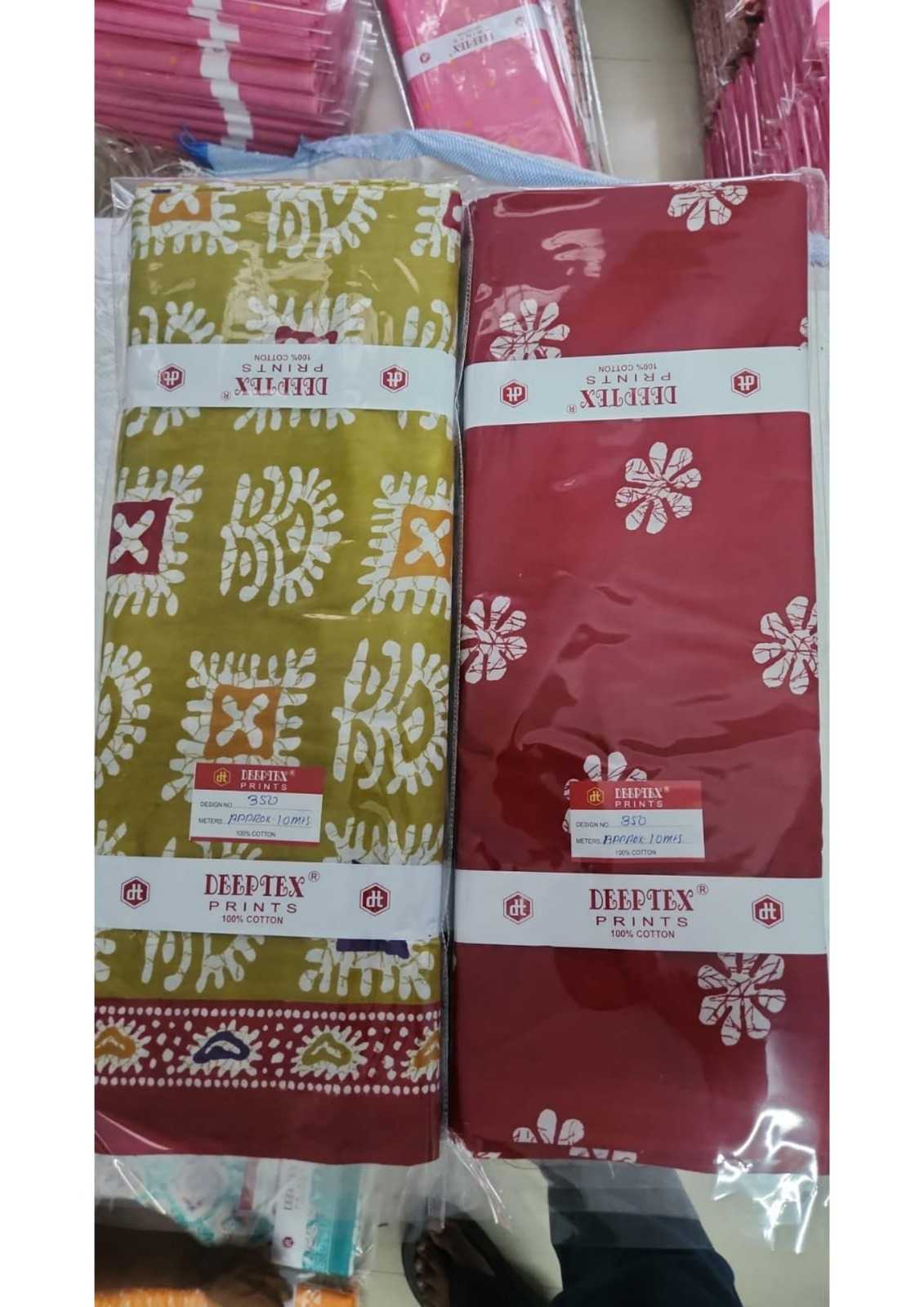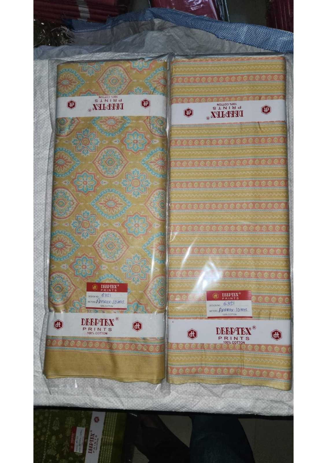 DEEPTEX PRINTS THAN WISE MATERIAL 100% PURE COTTON 1 DESIGN:- 20 MTR TOP + 20 MTR SALWAR (40 MTR) RATE :- 65 PER MTR NOTE :- MIN ORDER 10 DESIGN (AS PER AVAILABLE STOCK) |