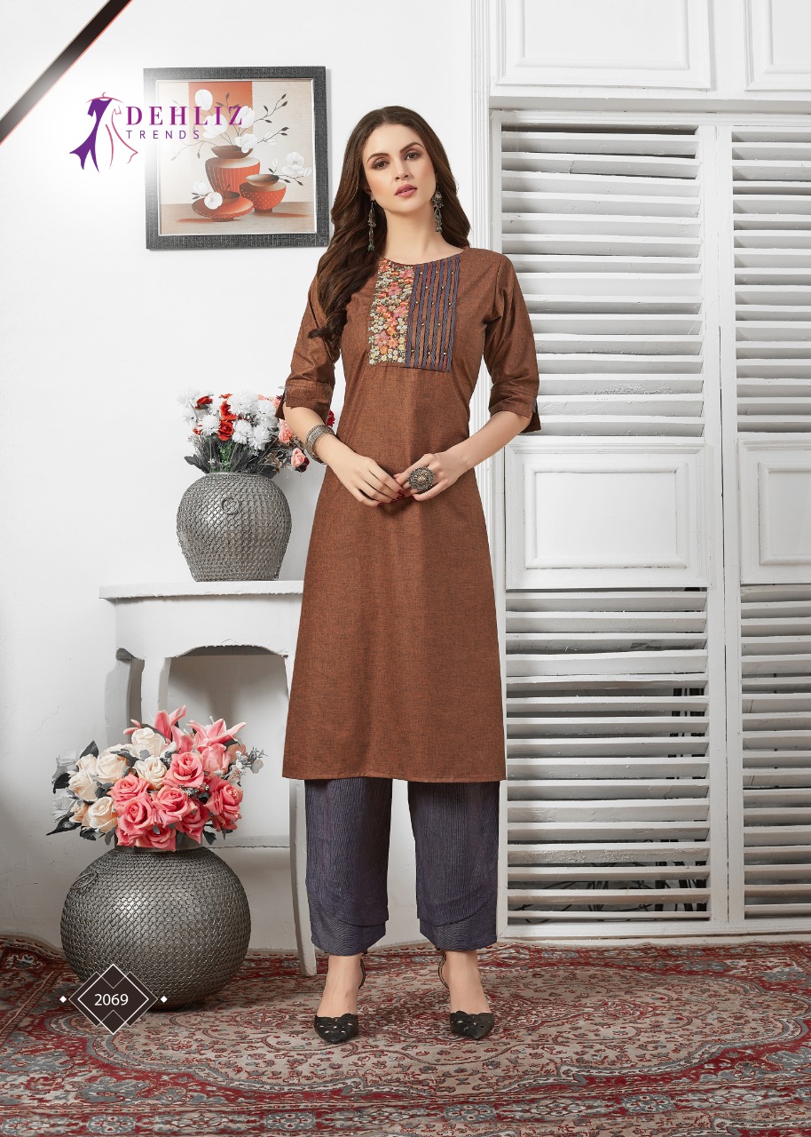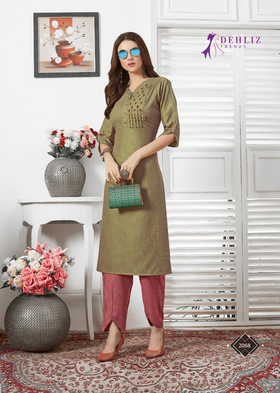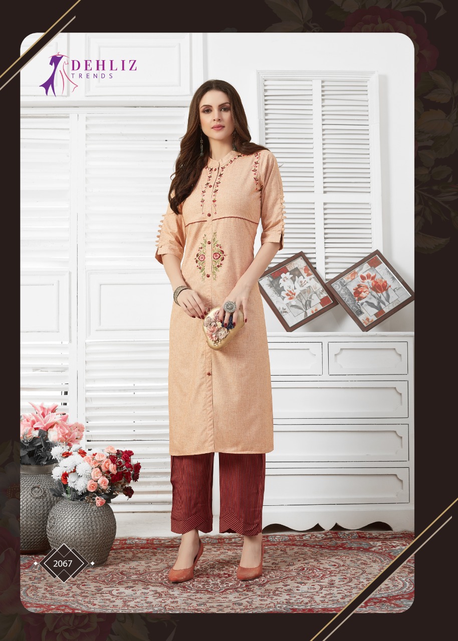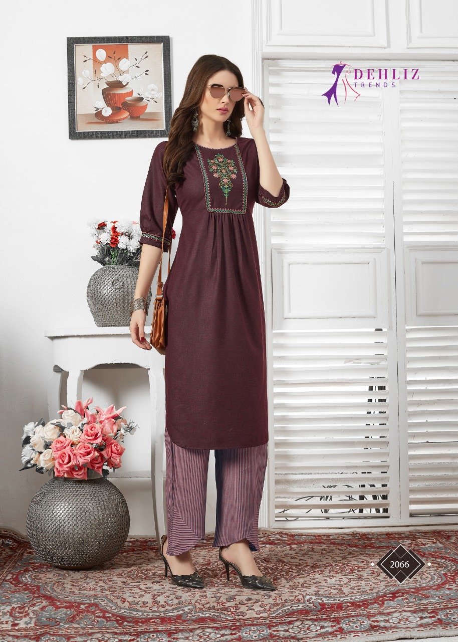 DEHLIZ TRENDS Catalogue name - click vol 2 Two pis concept Details Fabrics - 1. Kurti -- RAJDHANI PREMIUM COTTON 2. Bottom---RAYON BASE STRIPE FABRICS Size - M(38) L(40) XL(42) XXL(44) Designs - 6⃣ pcs ₹ Rate : 7⃣3⃣5⃣ only |