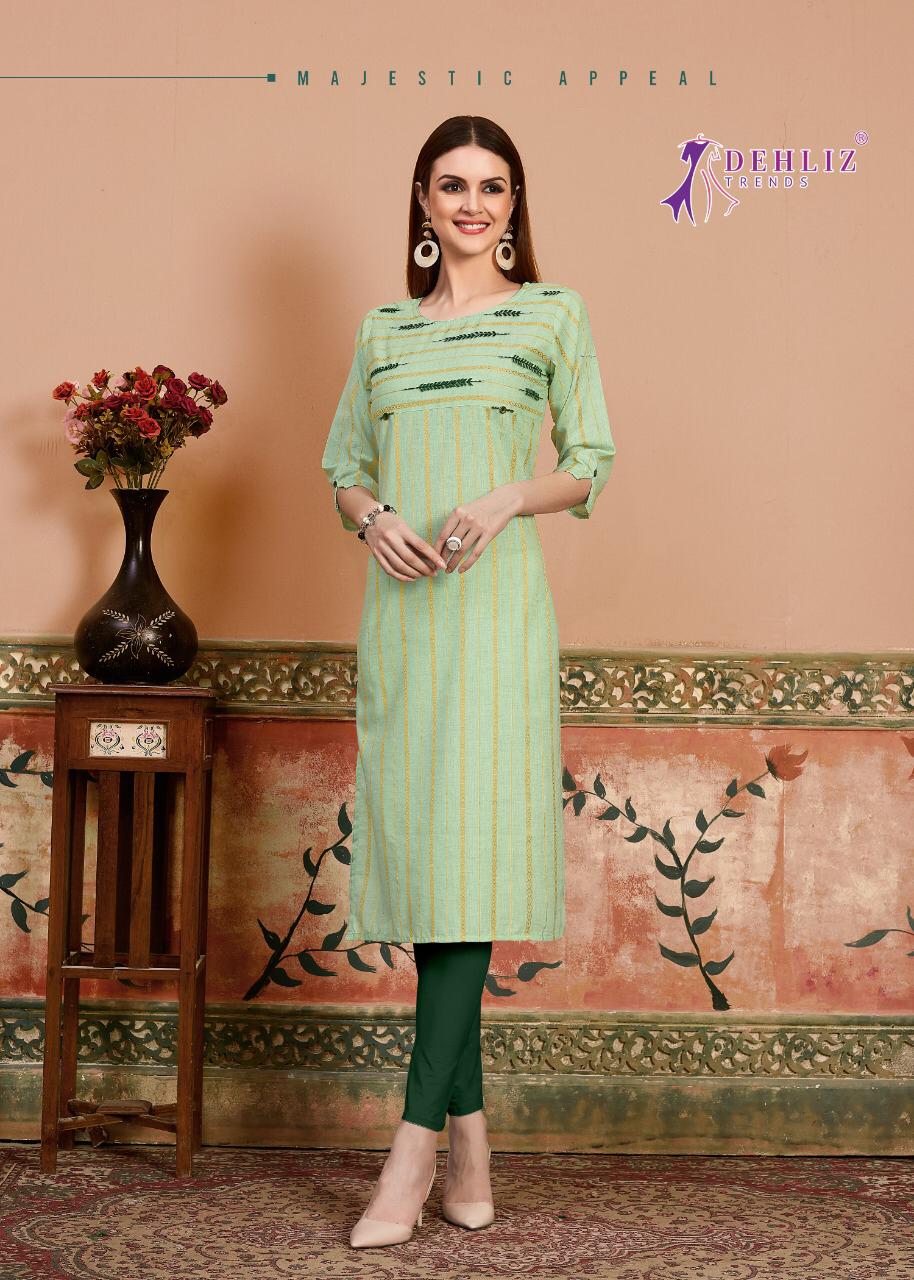 Dehliz Trendz Summer Cotton Embroidery Kurtis Wholesaler