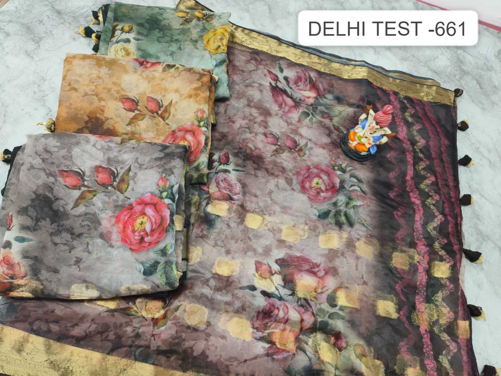 Delhi test 661no. -950/- Fabric: Organza silk Concept: Flowers🌸🌺🌻 print design in organza buti fabric Blouse: fancy blouse Packing : 09.11.2023📌 |