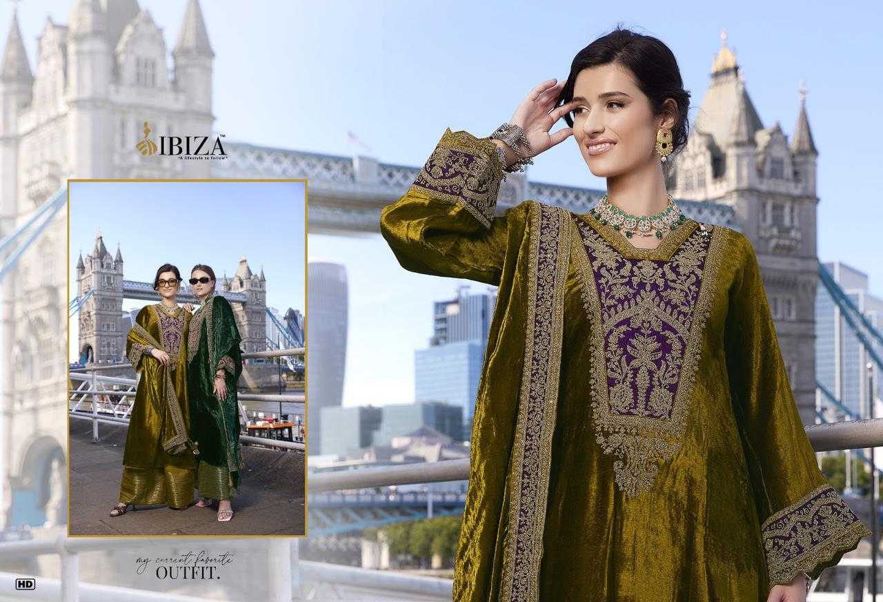 🙏🙏 IBIZA🙏🙏 👊Fabric Details👊 👗Top:- PURE VISCOSE VELVET NACH & SLIVE EMBROIDERY WORK BOTTOM:-PURE GAJI SILK JAQUARD 🔻Designs:- 6 PCS Rate: 3455/-