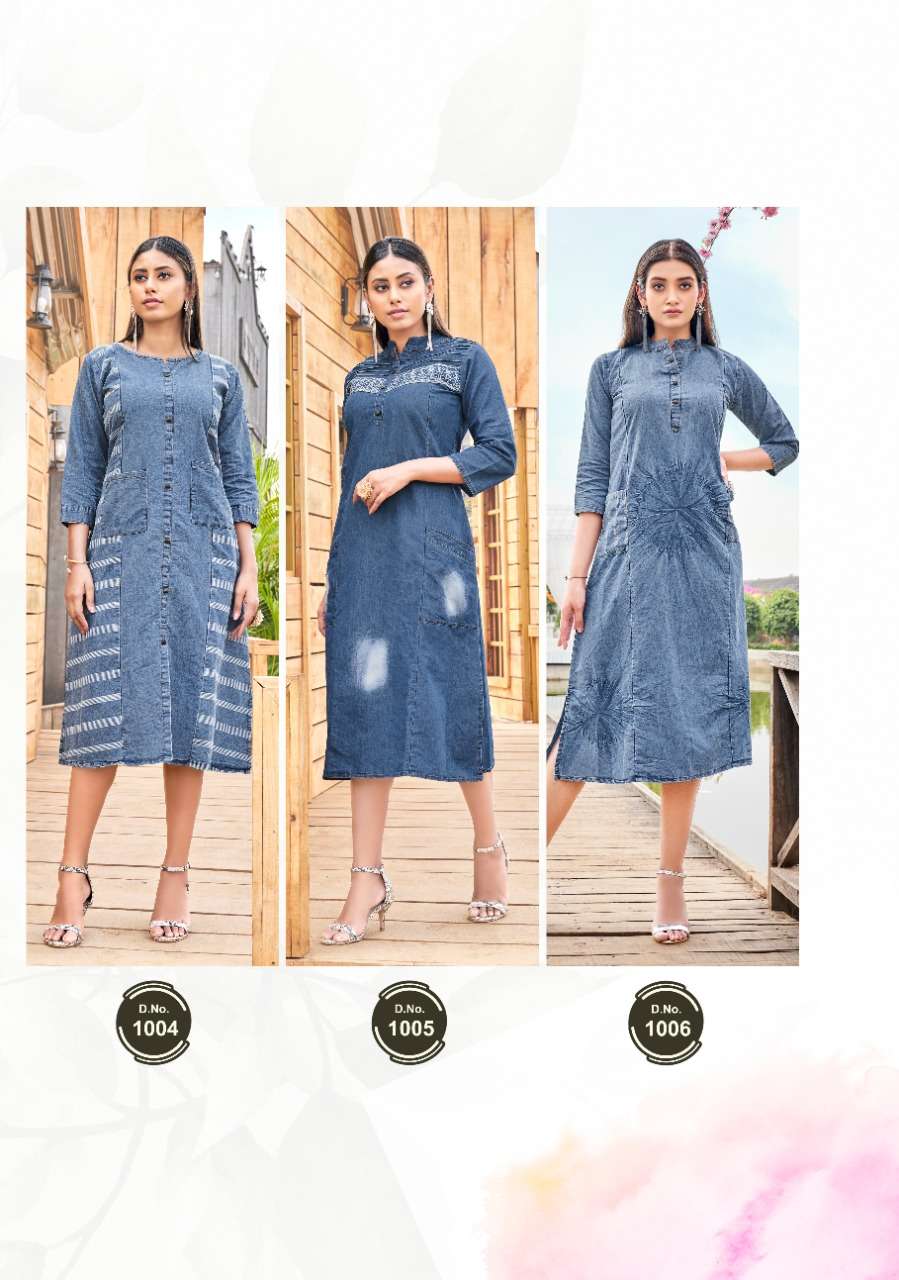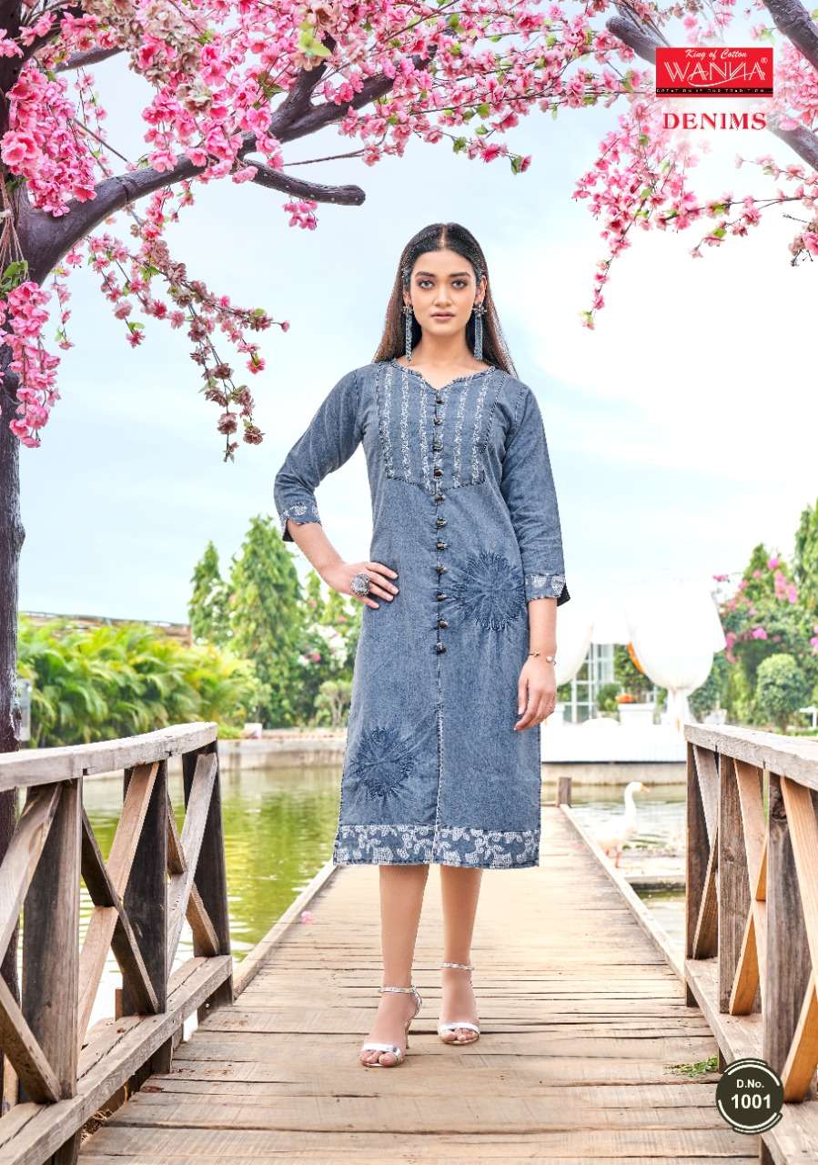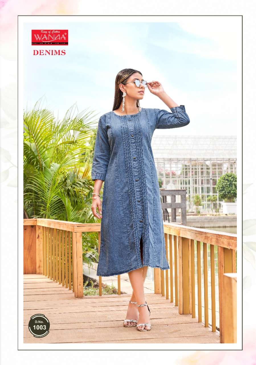 Wanna®️ Product 🎀Launch New Super Fancy Denim Kurti Catalogue🎀 📕Catalogue name :" Denims 👌🏻" 💵Rate : 525/- only 💵 👗Designs : 6 ✂Sizes : M L XL 👘Fabric Details : Top - Finest Quality of original Denim ⏺ One Piece Denim Collection |