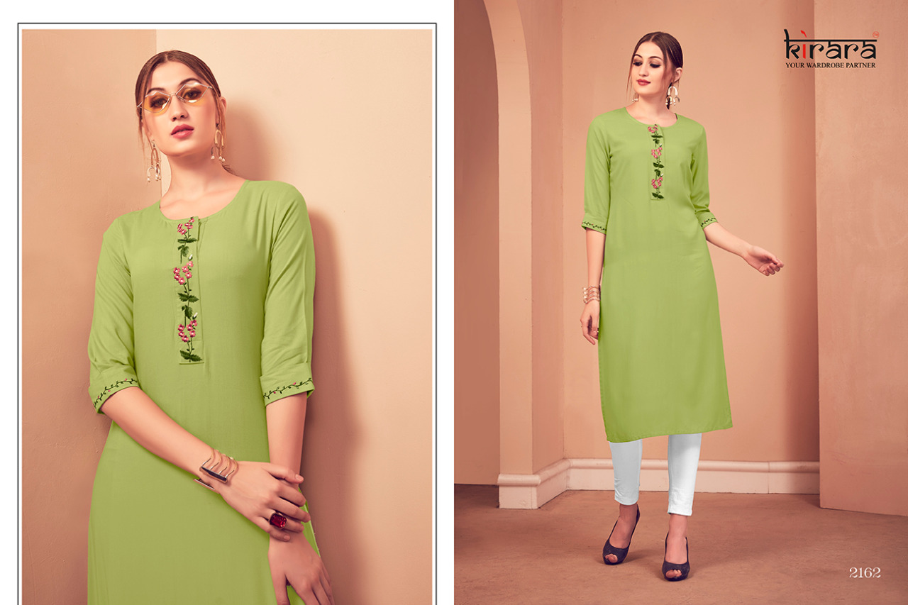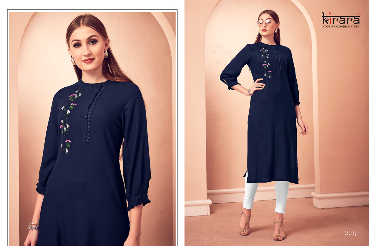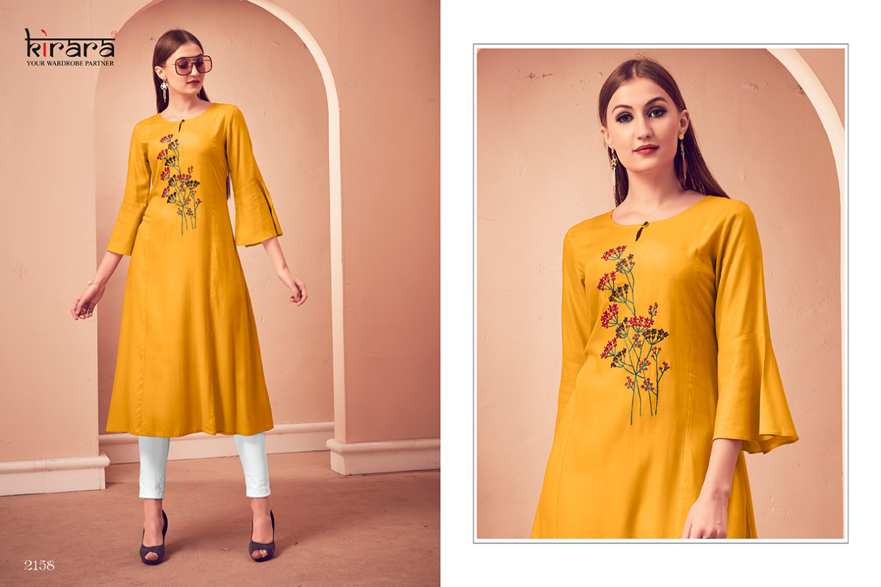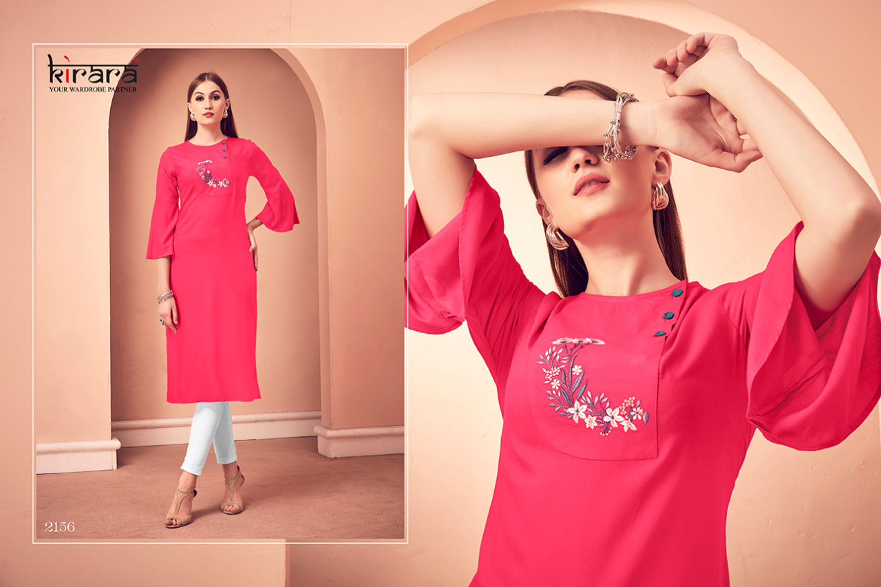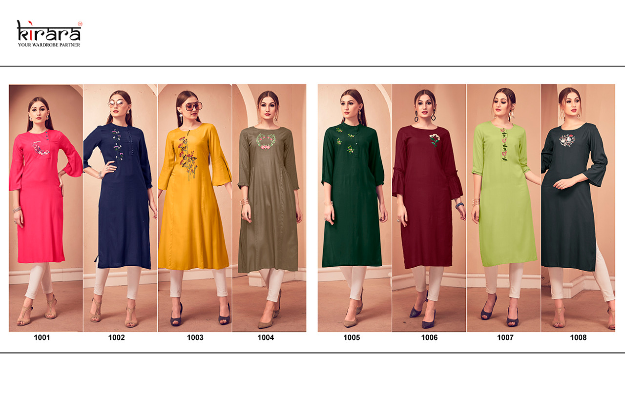 KIRARA KURTIES Launched New Catalogue Namo 2 Fabric:- Reyon Style:- Casual wear Sizes :- M, L , XL , XXL Length - 46" Rate :- Rs.455/-per piece. Total piece - 8 pieces |