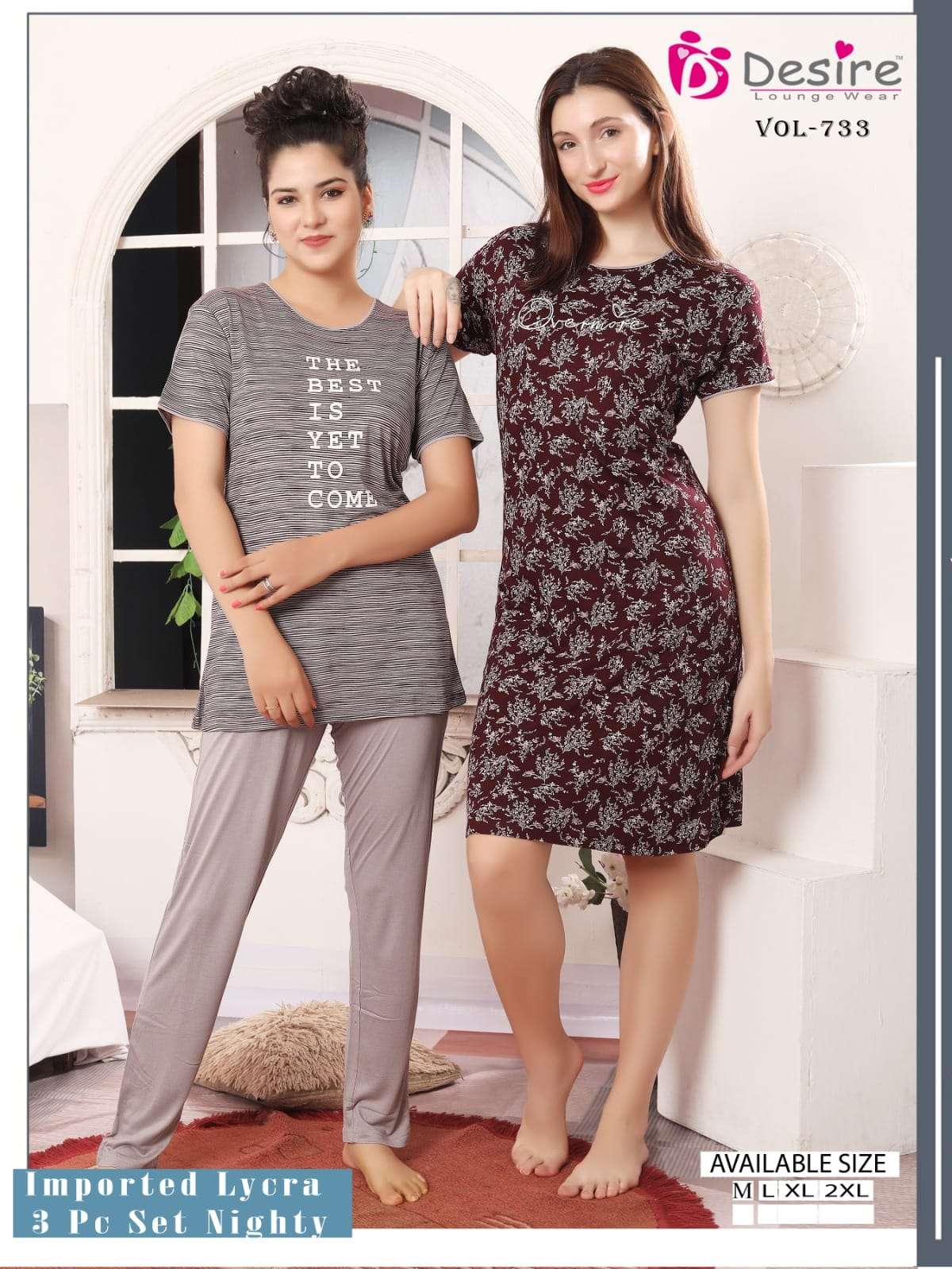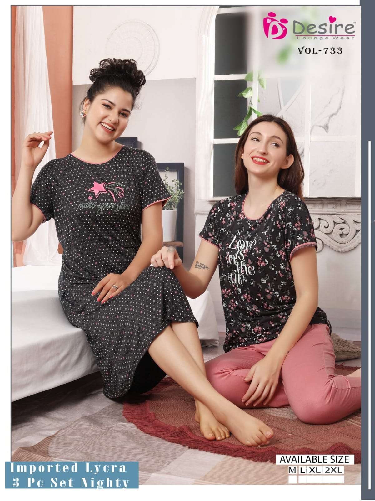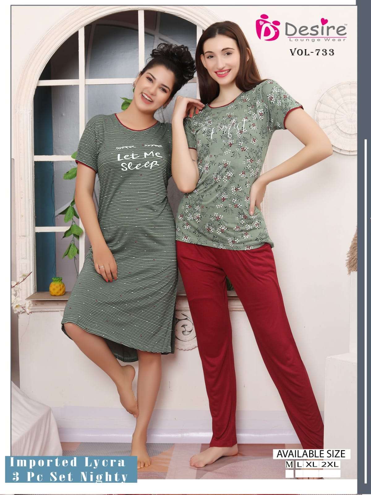 desiner vol 733 readymade lycra night suit and long top 3 piece set