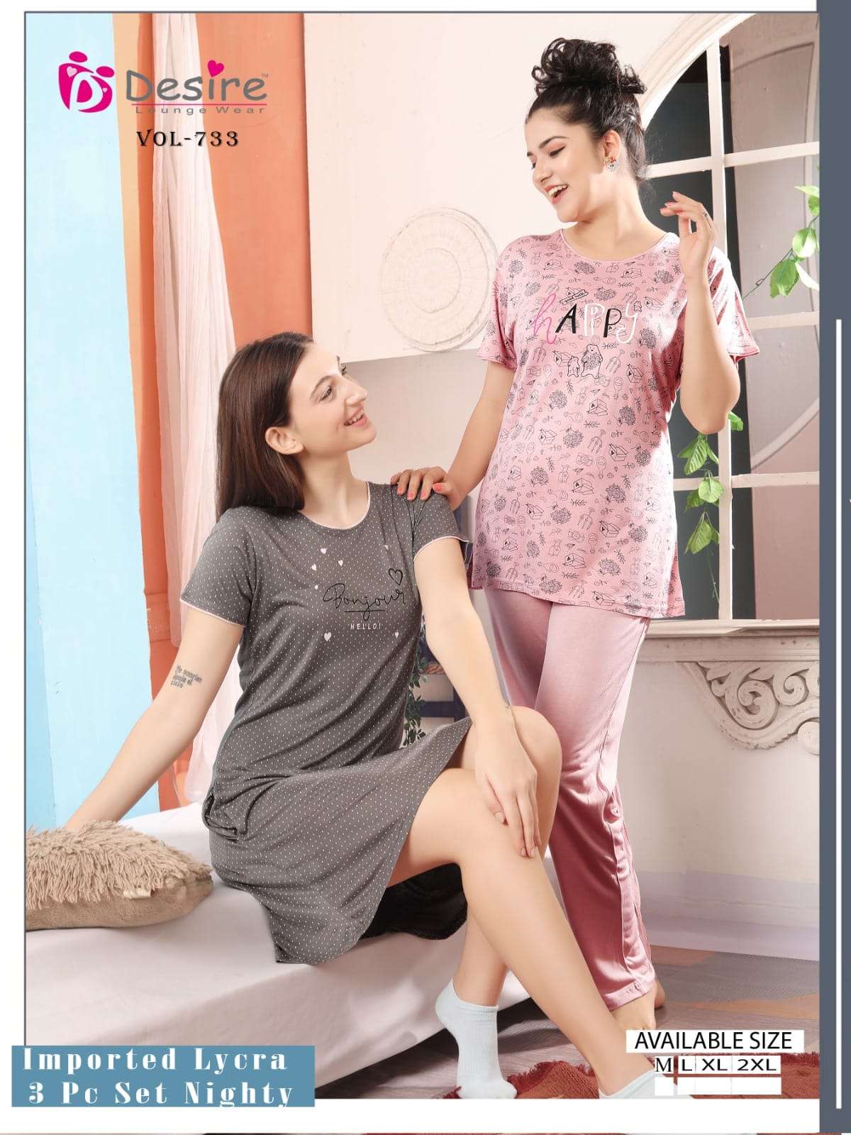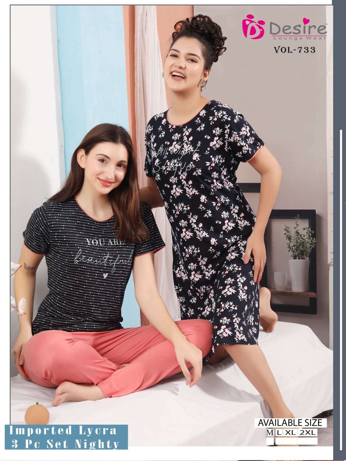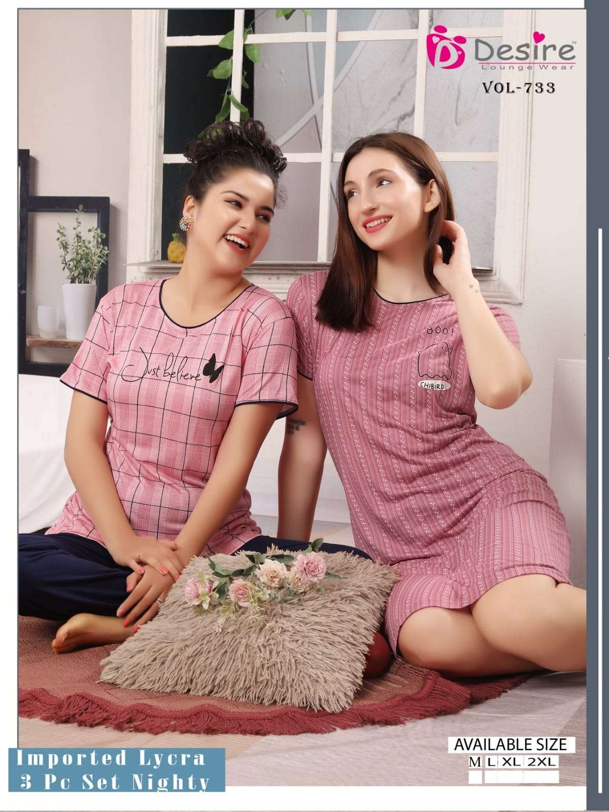 desiner vol 733 readymade lycra night suit and long top 3 piece set