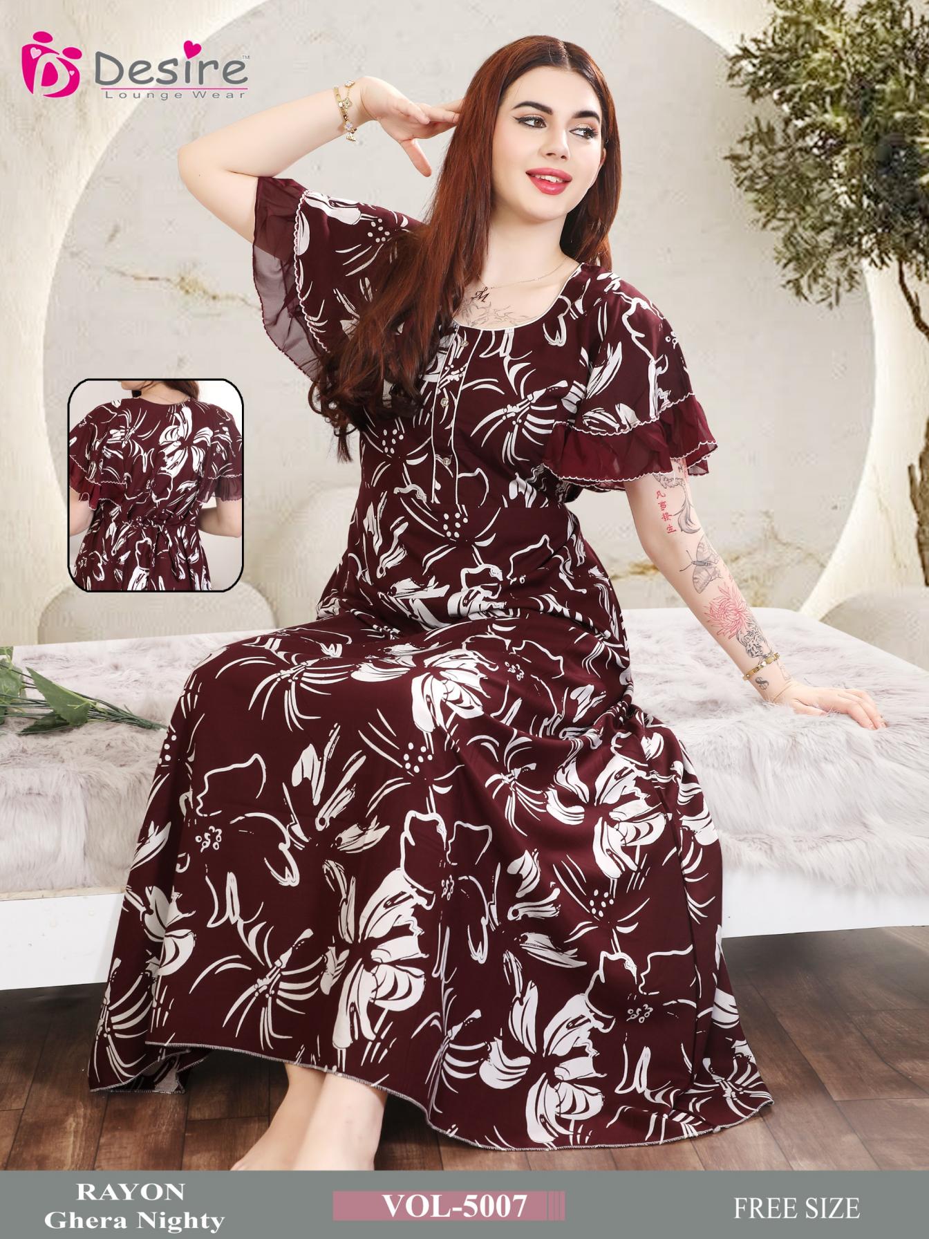 desire vol 5001-5007 readymade fancy rayon ghera combo nighty for womens