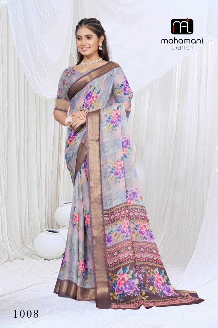 MAHAMANI CREATION 🌹DEVSENA 🌹 Rate _ 660/- per pcs GST EXTRA Pics 12 Fabric =Marshmallow with zari border digital Print Set to set |