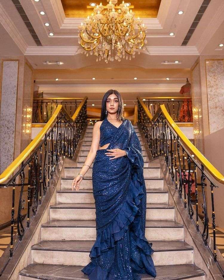 New BlockBuster Design Launching 5MM Sequins Ruffle Frill Saree CODE-DF 3228 Fabric Details Full Saree Of Georgette With Heavy 5MM Sequence Embrodery Work Embrodery Details Blouse-60 Gram Georgette Fabric with 5MM Sequence Embroidery Note-Full Work Done on Saree till 5.5 metre Beautiful Satin Ruffle Frill Border Done on Saree Premium Quality |