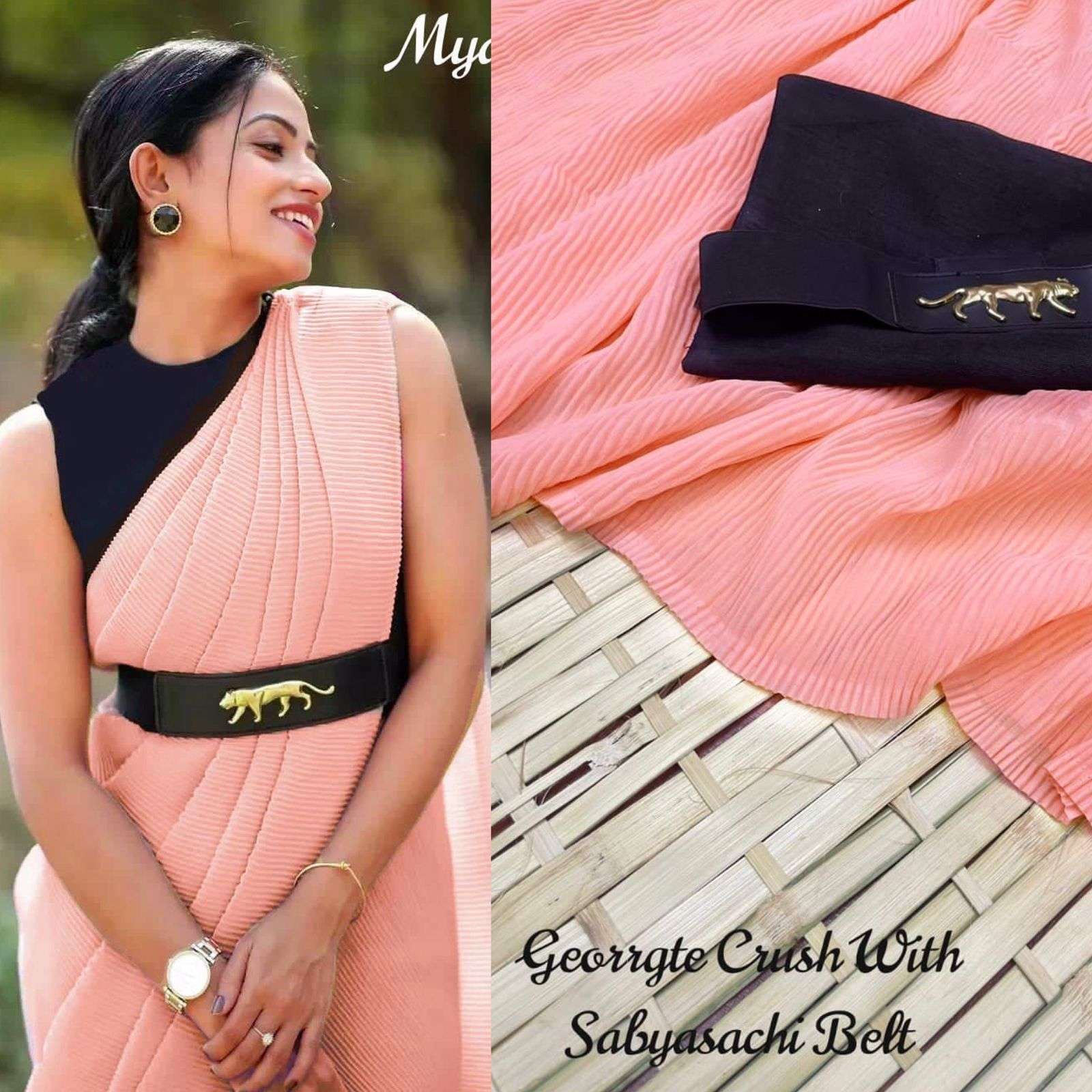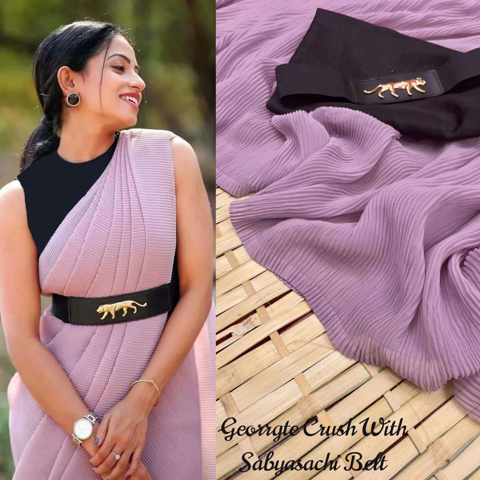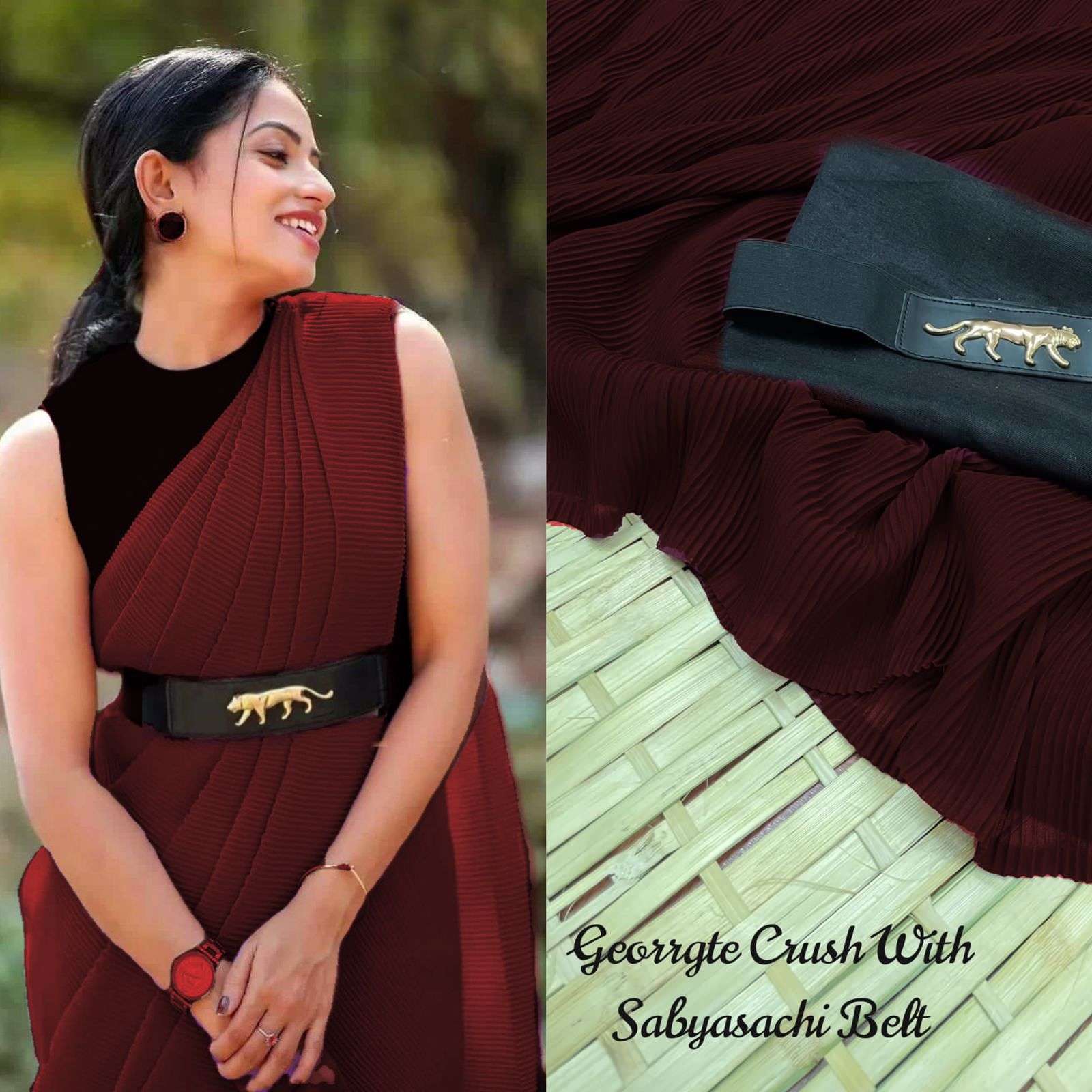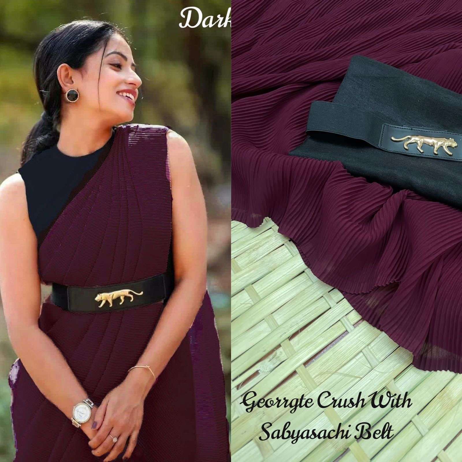 MOST HIT SABYASACHI BELT CONCEPT CRUSH SAREE CODE-DF 3241 FABRIC DETAILS Magic Georrgte Saree With Blouse Bangalori Silk With SABYASACHI ADJUSTABLE BELT Rate - * 699* PREMIUM QUALITY |