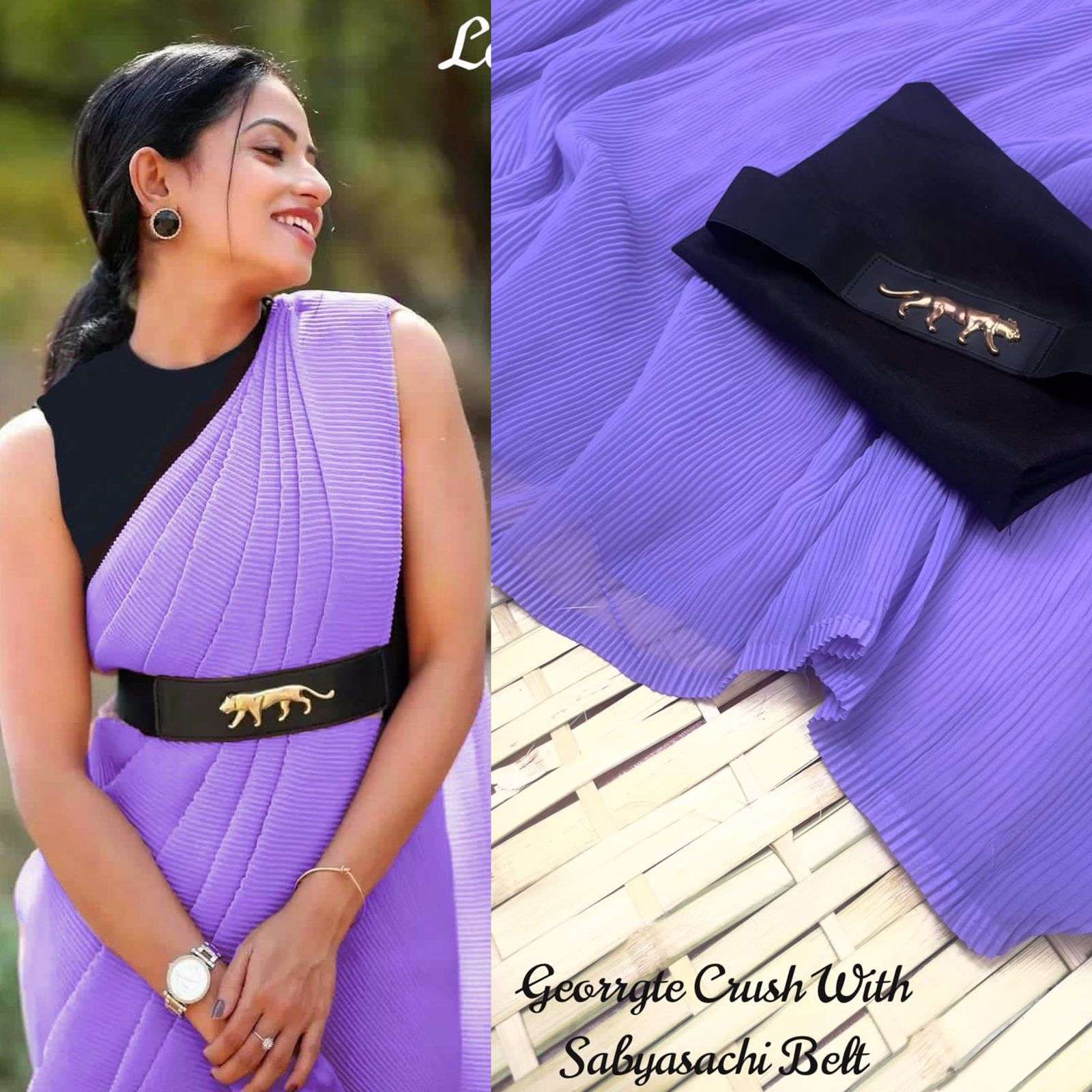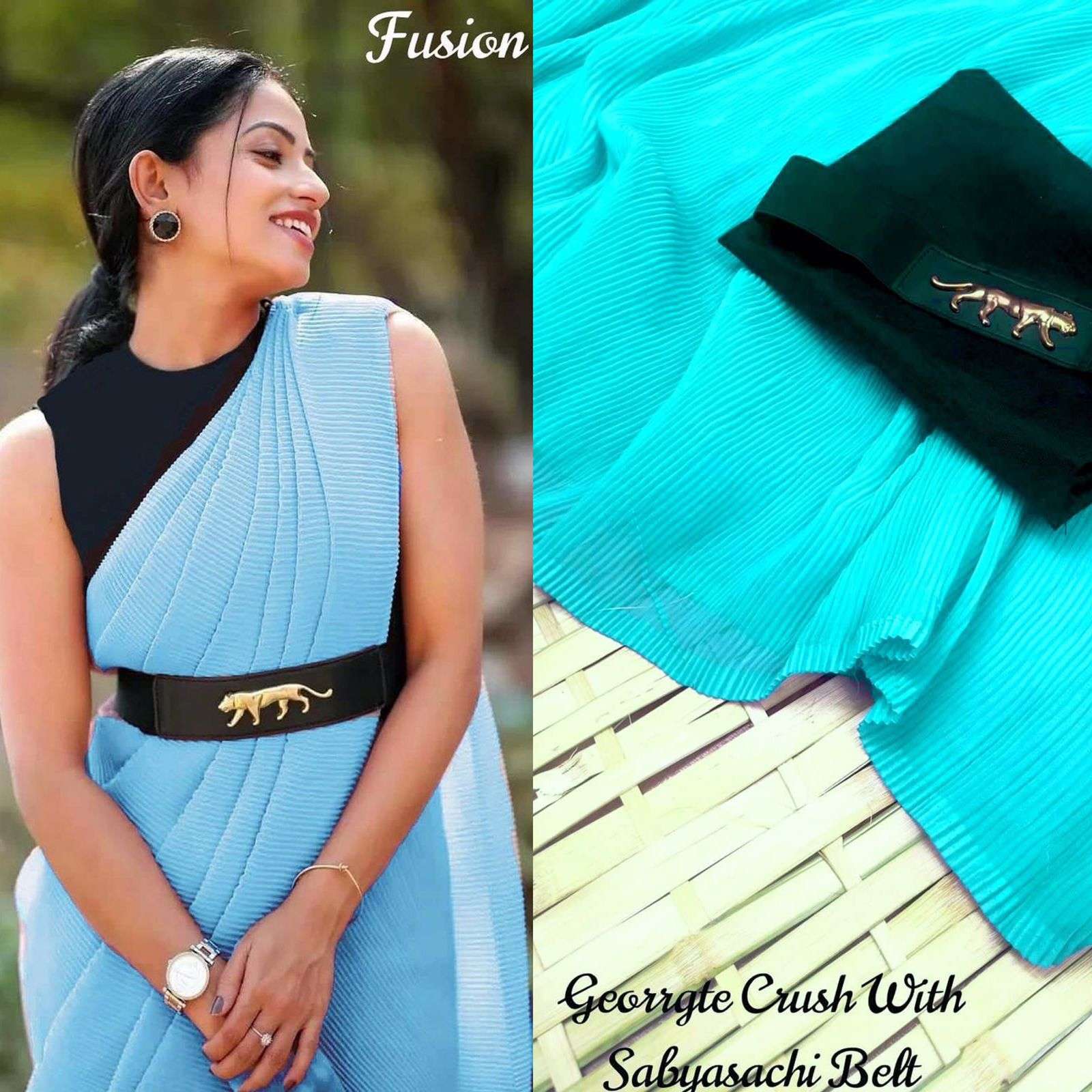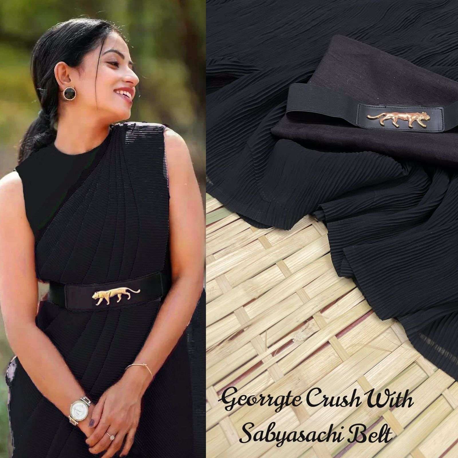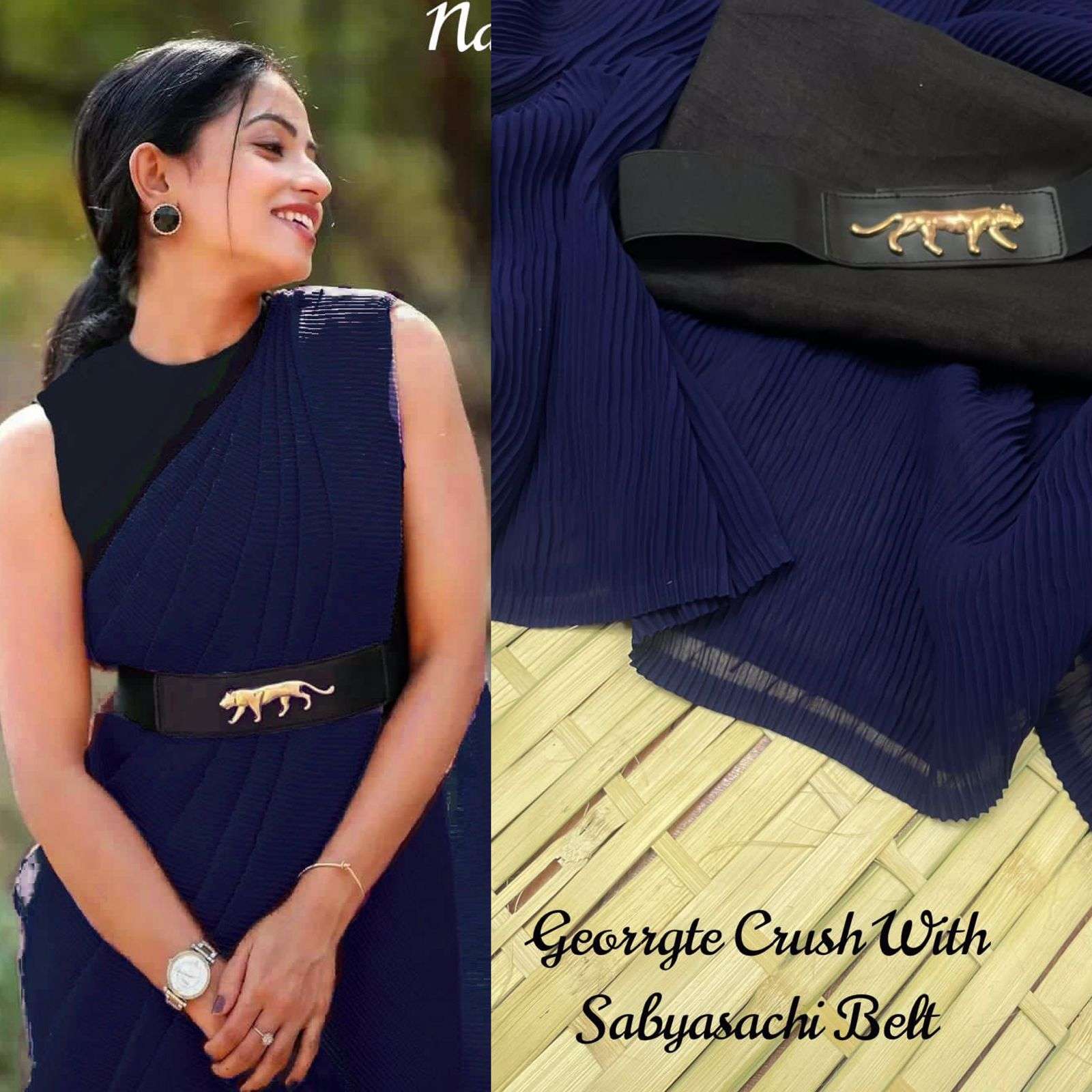 MOST HIT SABYASACHI BELT CONCEPT CRUSH SAREE CODE-DF 3241 FABRIC DETAILS Magic Georrgte Saree With Blouse Bangalori Silk With SABYASACHI ADJUSTABLE BELT Rate - * 699* PREMIUM QUALITY |