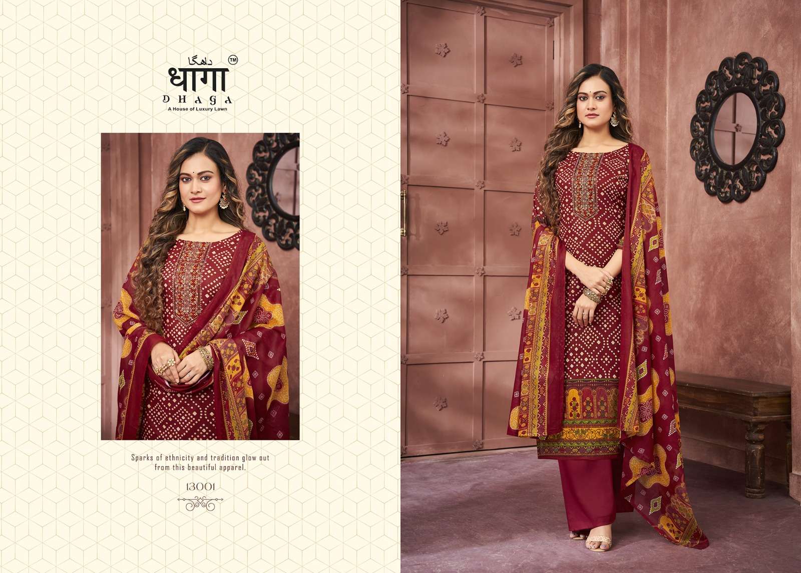 dhaga present karachi cambric cotton bandhani digital print salwar suits collection