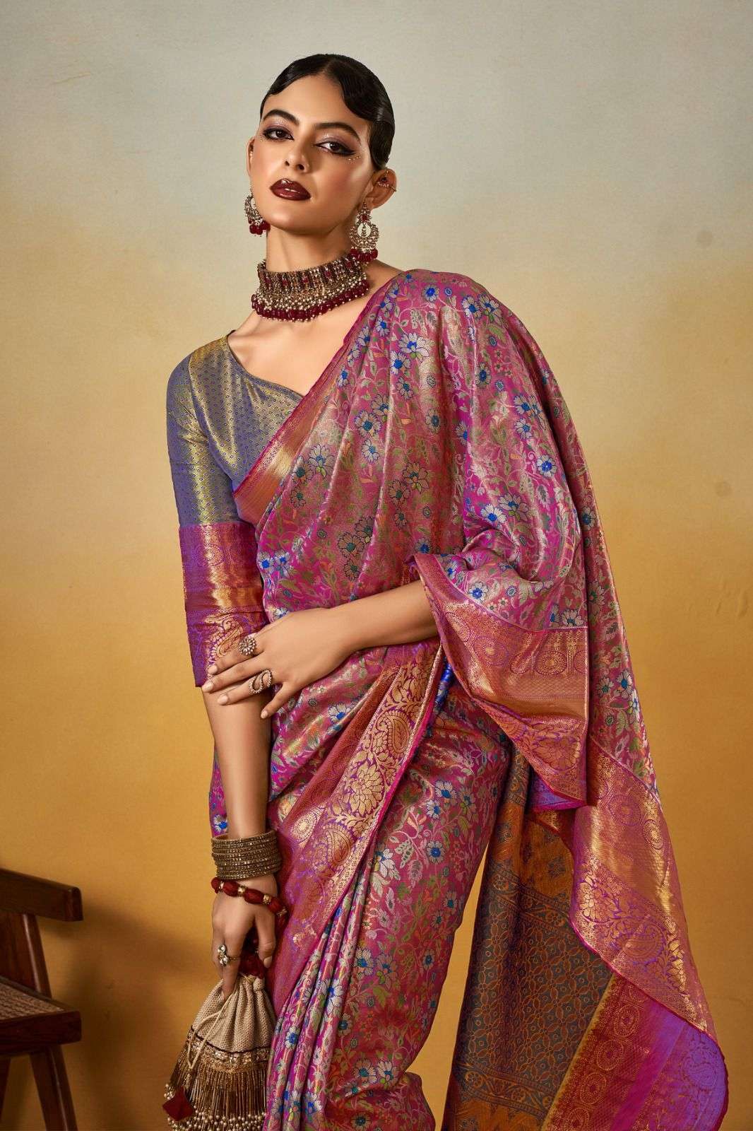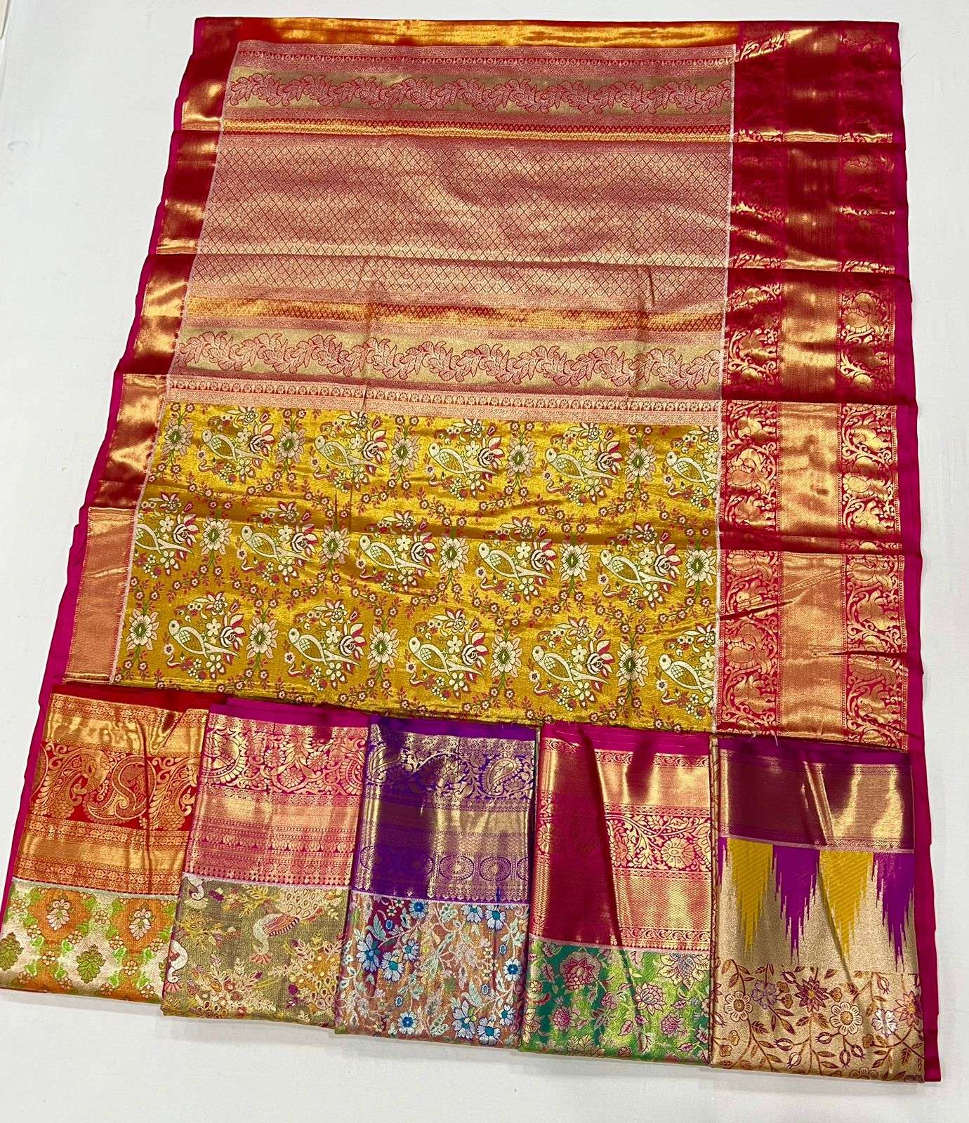 Brand : Sosy Catalog Name -Dharmavaram Saree Fabric : Pure Dharmavaram Silk With Zari Weaving On All Over Saree With Contrast Big Border Blouse Fabric : Pure Dharmavarm Silk Occasion : Party Wear, Festival Wear |