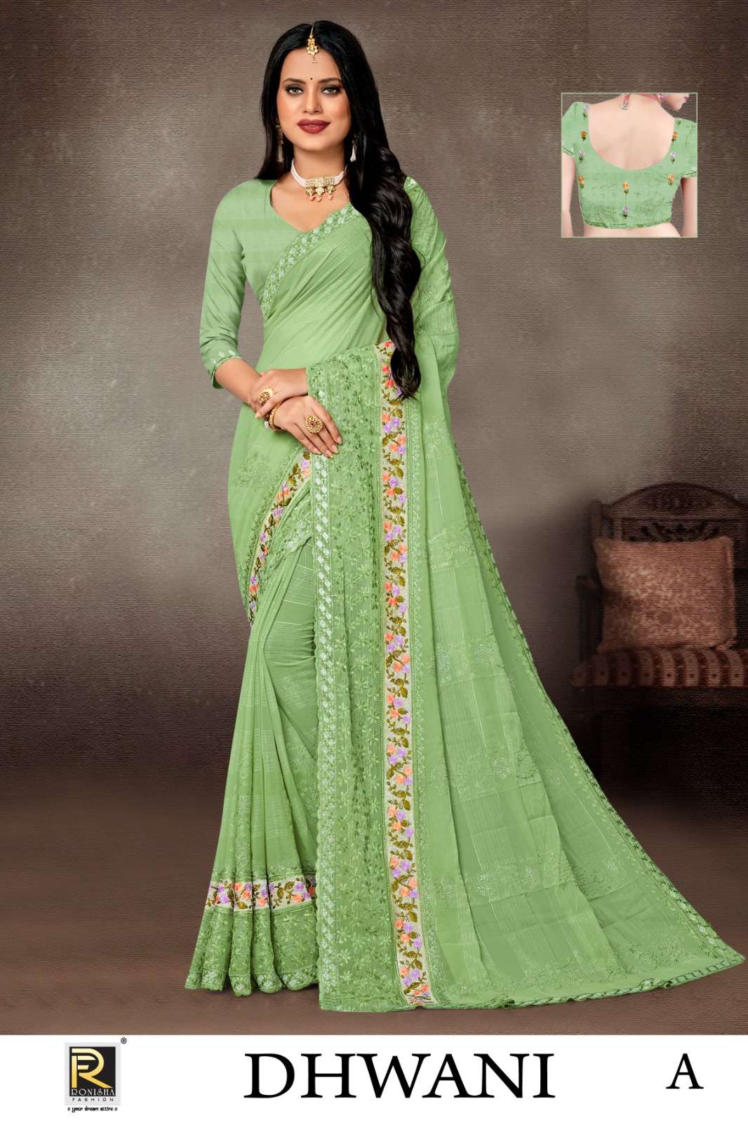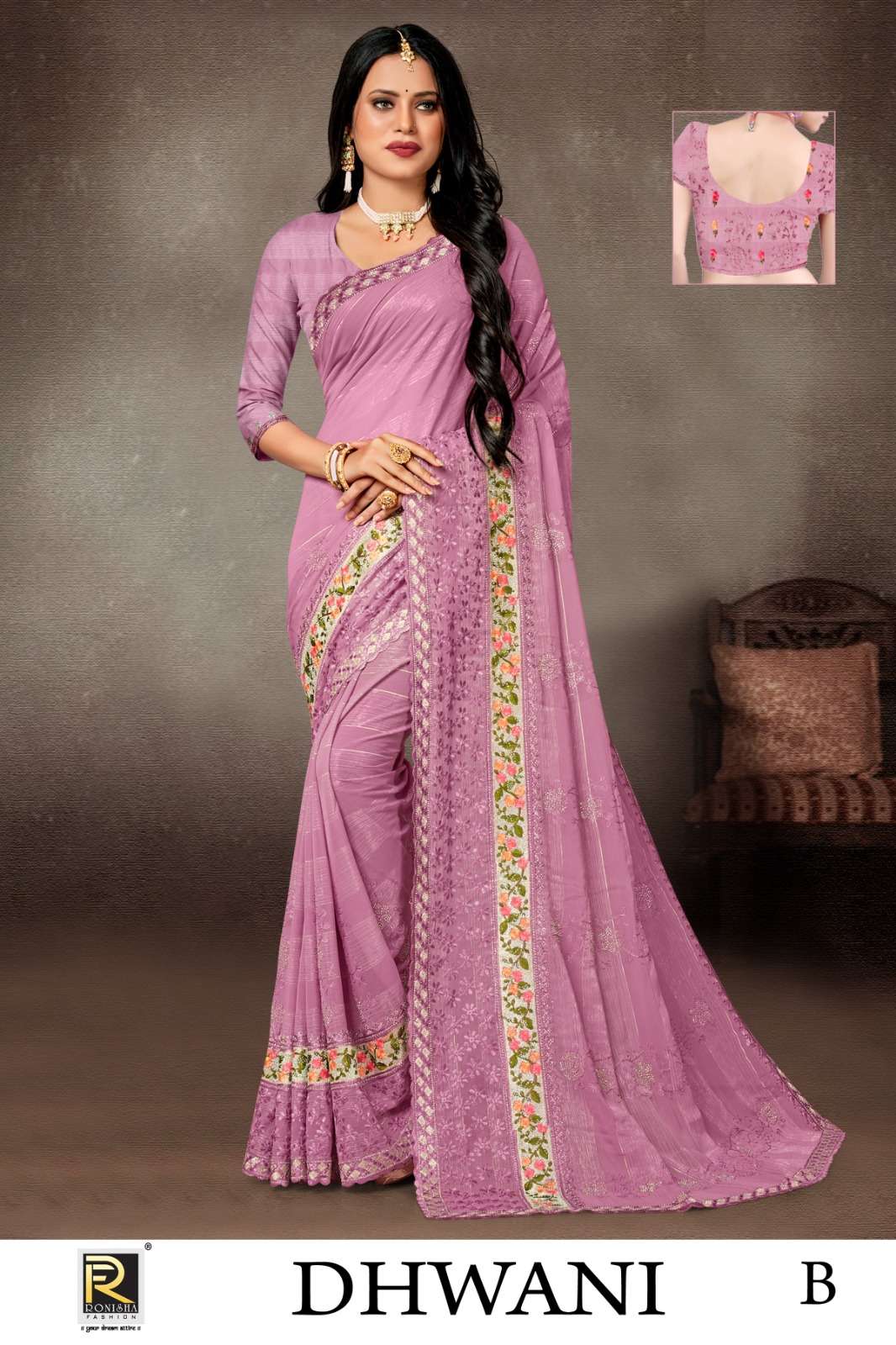 DHWANI BY RANJNA SAREE FANCY FABRICS EMBROIDERY WORK AND SIROSKI DIAMOND WORK SUPER HIT COLLECTION