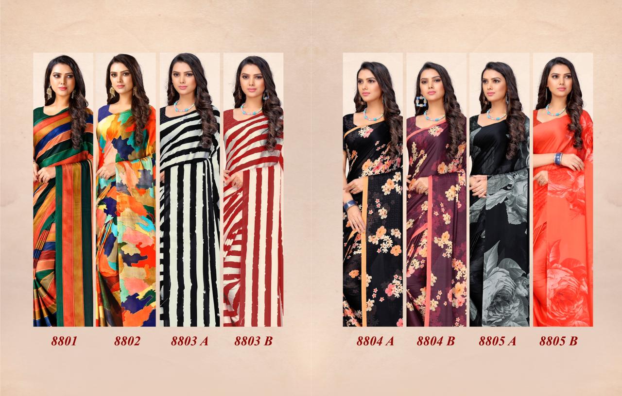 SURAT DIGITAL VAGANZA CATALOG (8801 SERIES) by Sushma SKY SATIN (8 SAREES) 990/- Set to set. GST 5 Percent Extra. Delivery from today |