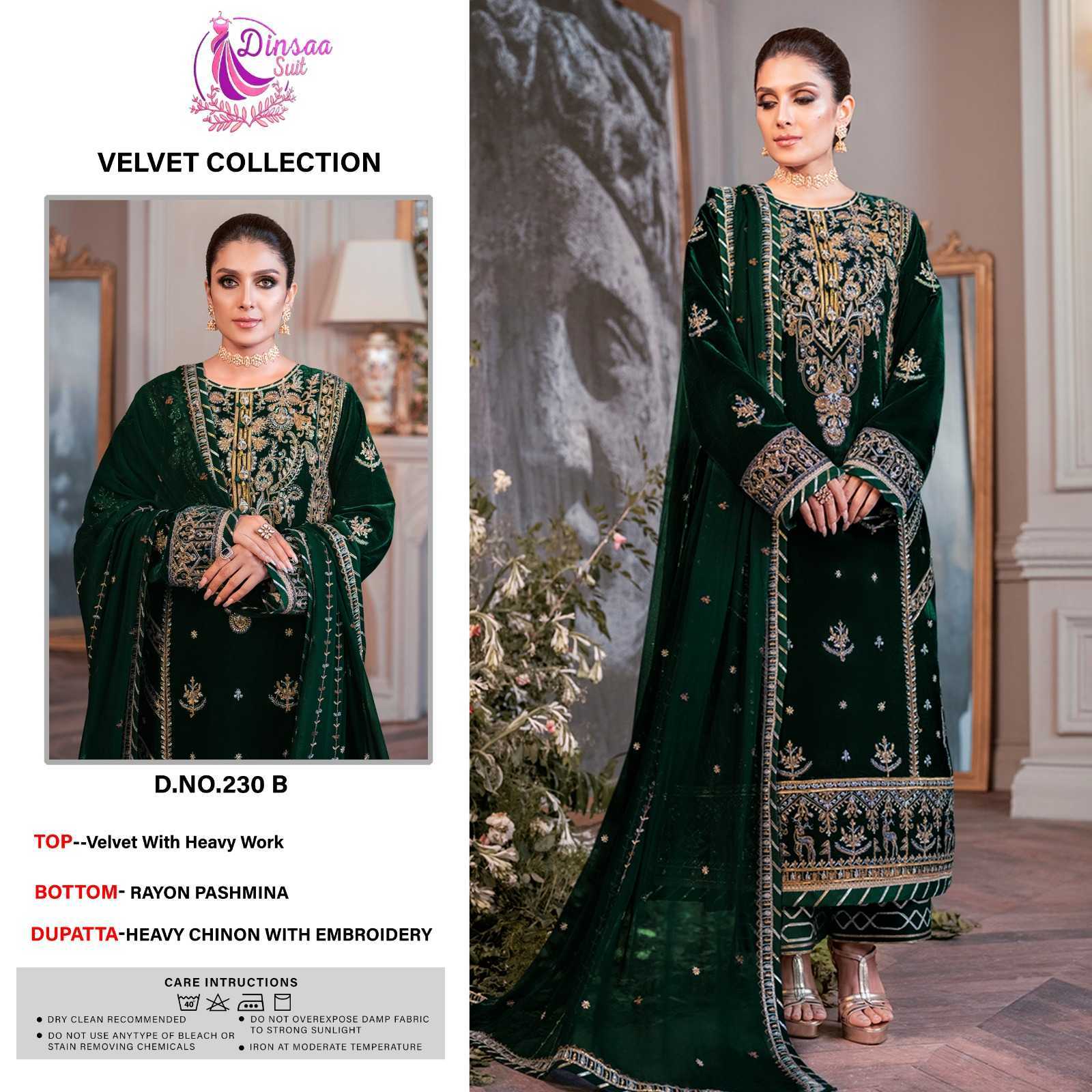 dinsaa 230 b colours designer velvet pakistani suits winter wear single design