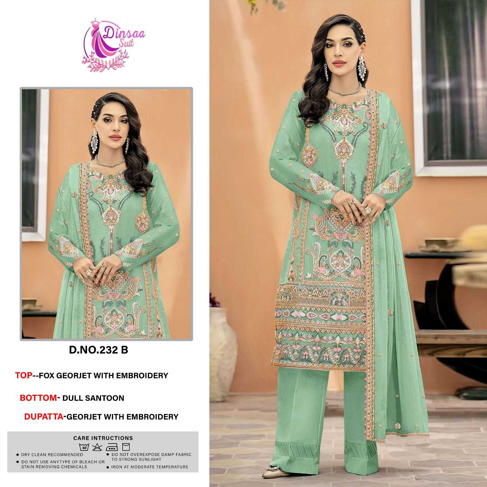 dinsaa 232 b pakistani georgette embroidery unstitch single design ladies suit