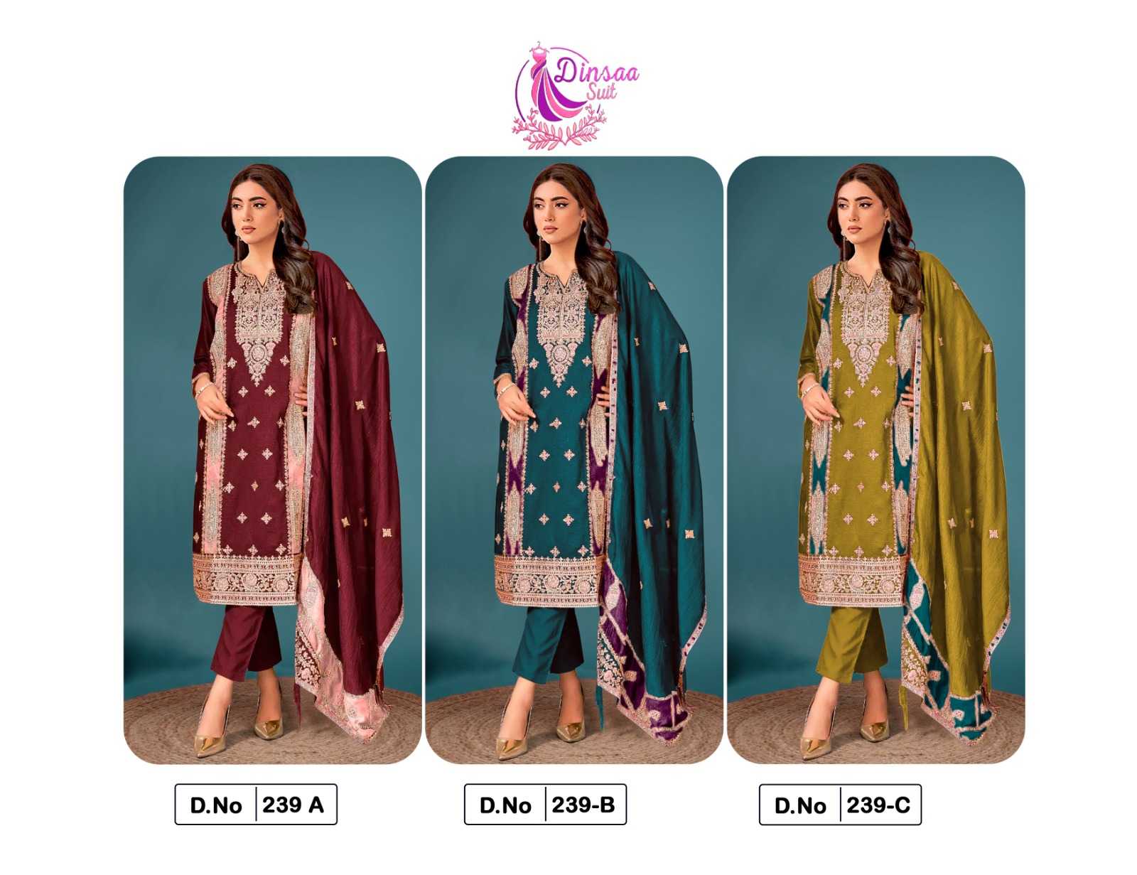 Dinsaa Suit Presents Latest Collection Launched on 29-01-2024. Presenting Beautiful collection of 3 PCS with Unstitched .