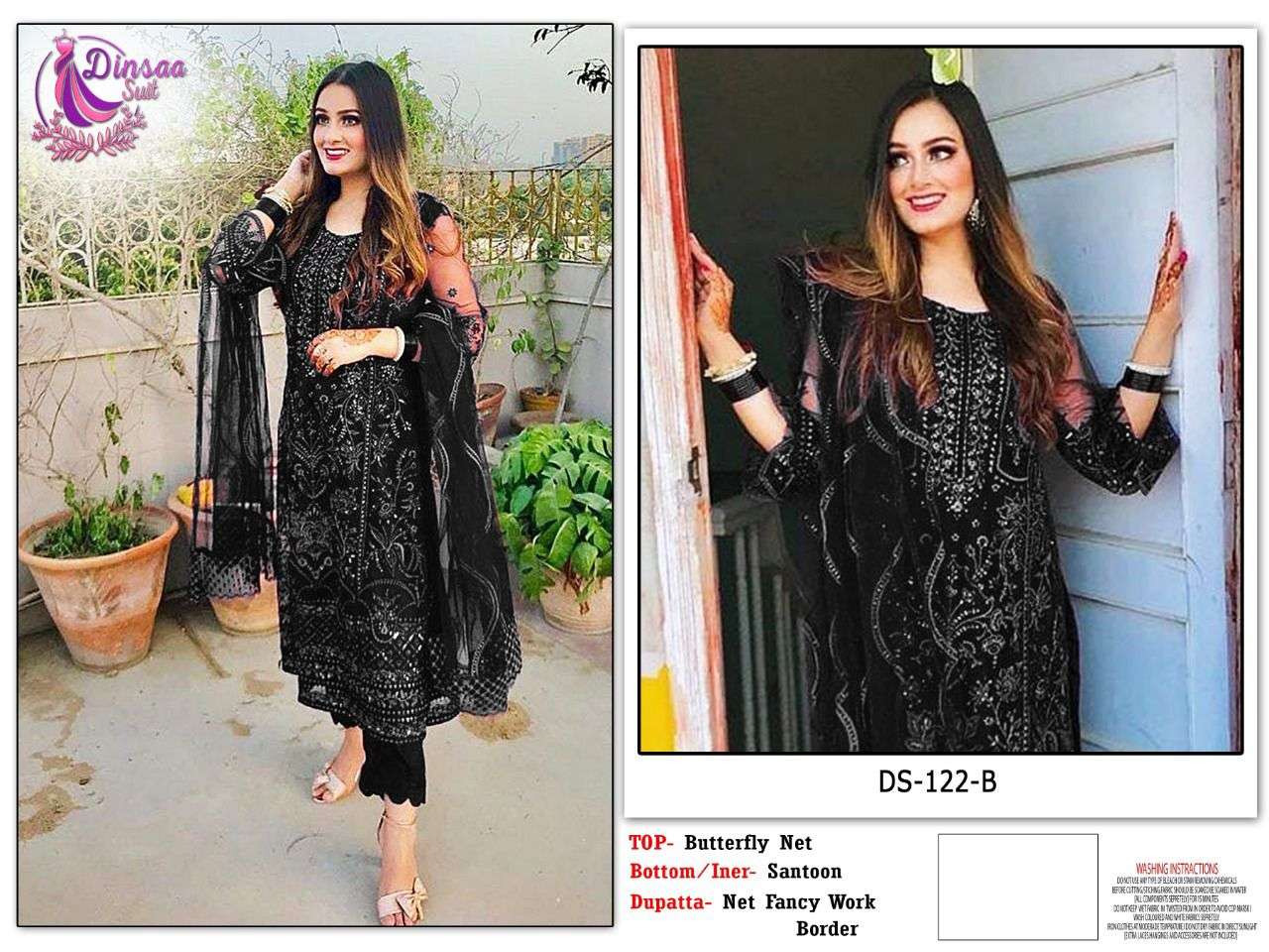 DINSAA SUIT DESIGN NUMBER TOP :- BUTTERFLY NET EMBROIDERY DUPATTA :- NET EMBROIDERY WORK BOTTOM/ INNER :- SANTOON