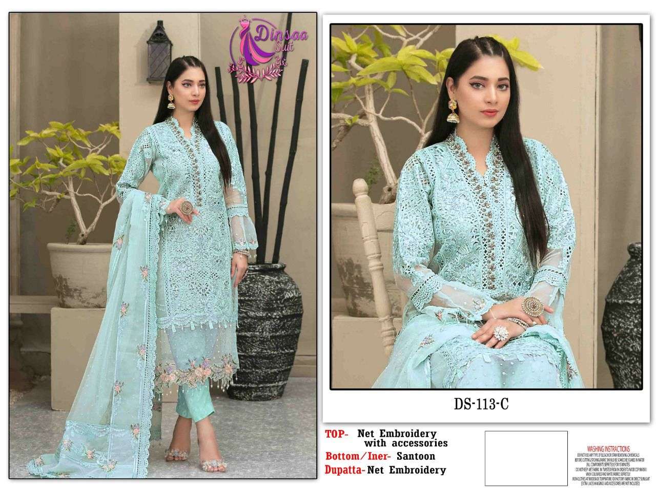 BRAND NAME:-DINSAA SUIT _MARIA B HIT DS-113 Top:- * BUTTERFLY NET EMBROIDERED