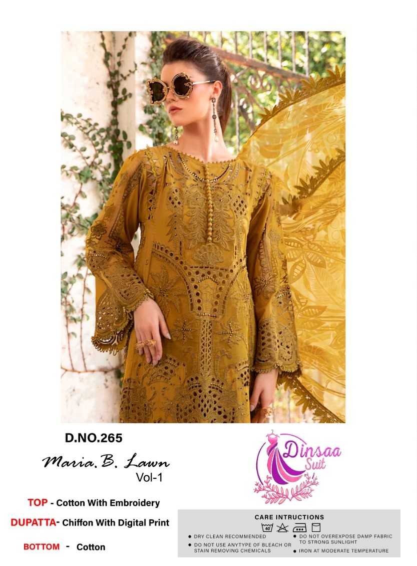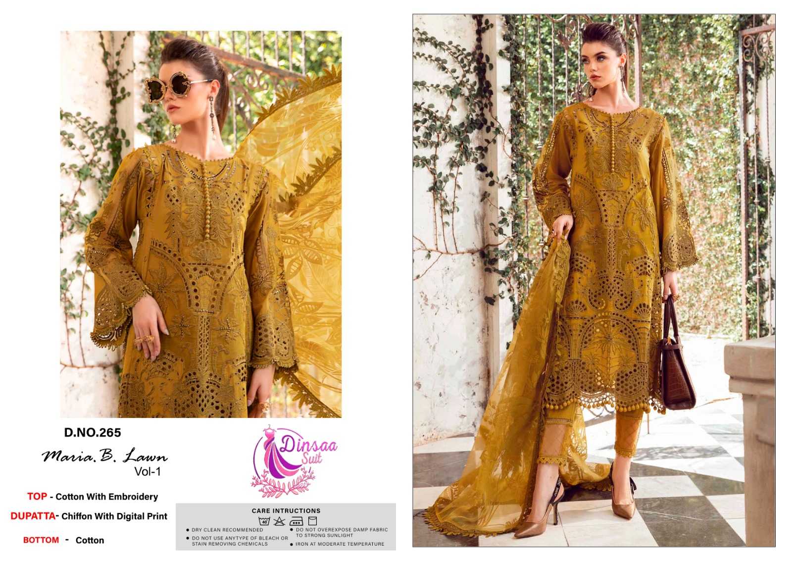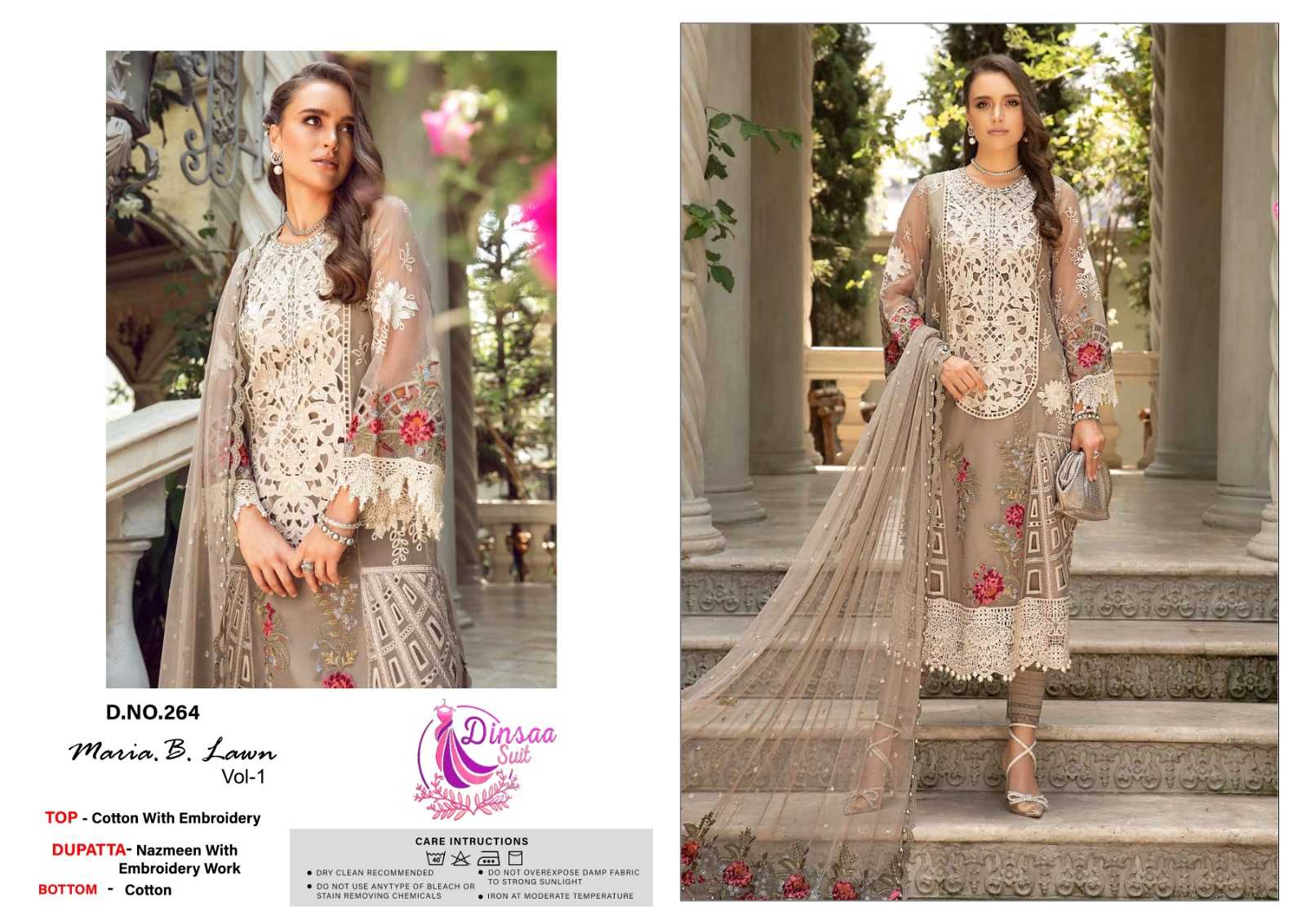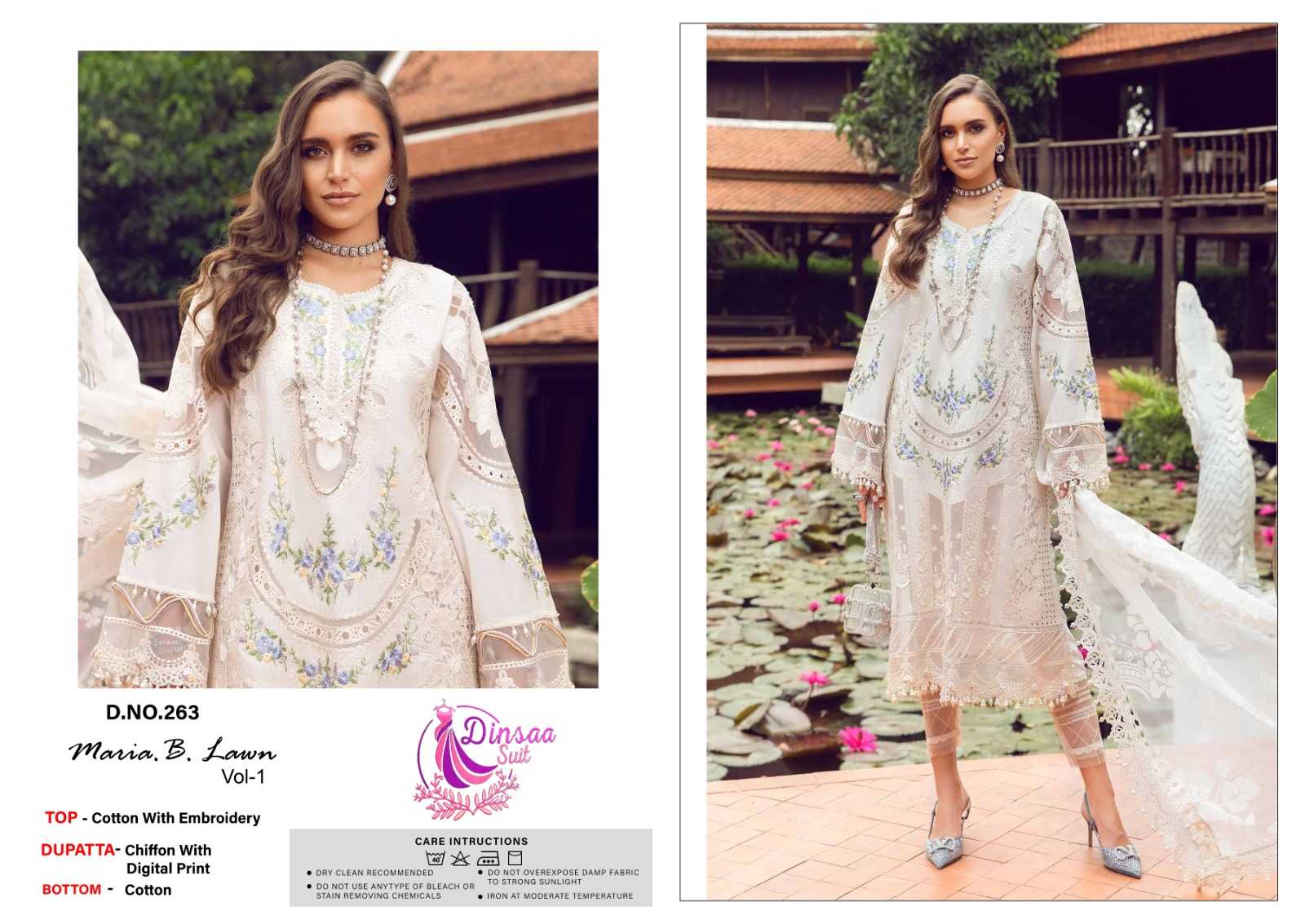 DINSAA SUIT ®️ MARIA B Lawn VOL- 1 TOP - COTTON WITH HEAVY SELF EMBROIDERY BOTTOM-SEMILAWN DUPATTA -COTTON WITH DIGITAL PRINT(263-265)/NAZMEEN WITH WORK(264) DESIGNS 3 RATE-1150/- |