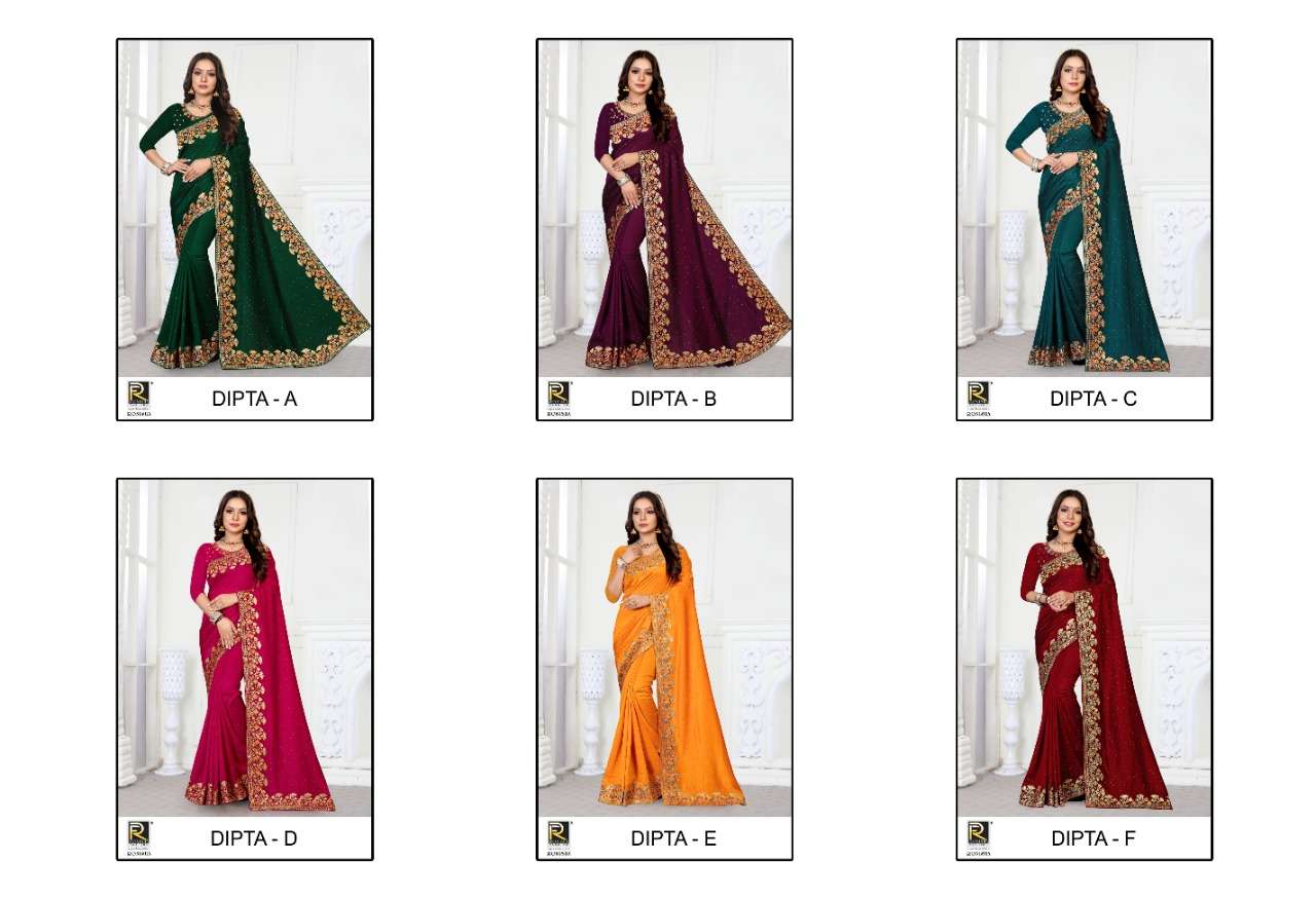 Dear Customer, We are launching our new Saree Catalog Brand – Ranjna Sarees Catalog Name : DIPTA Fabrics – VICHITRA SILK Cut - 6.30 Mtr * Set to set * Rate -1295/- Pc – 06 GST 5 Percent Extra. Book your order now |
