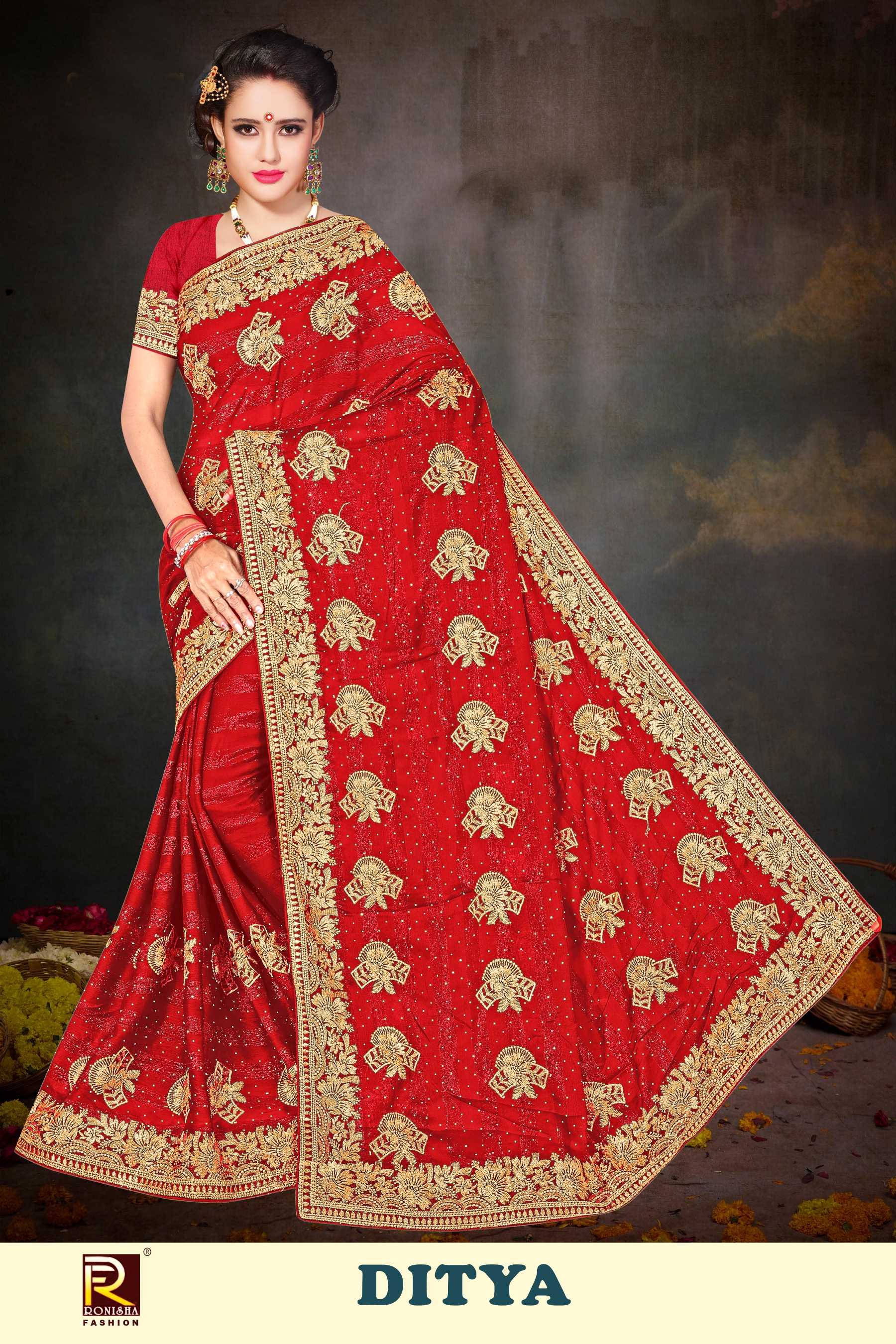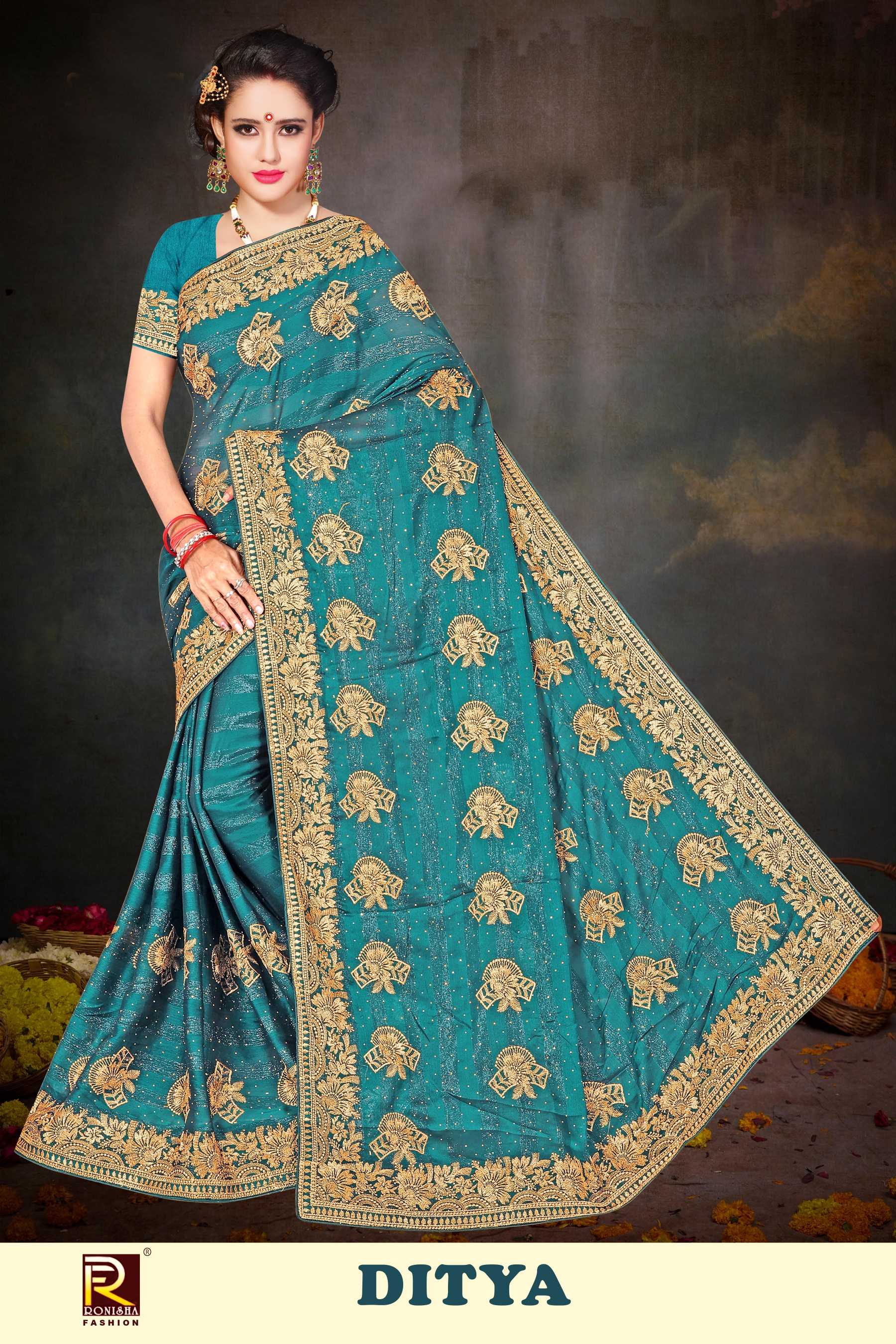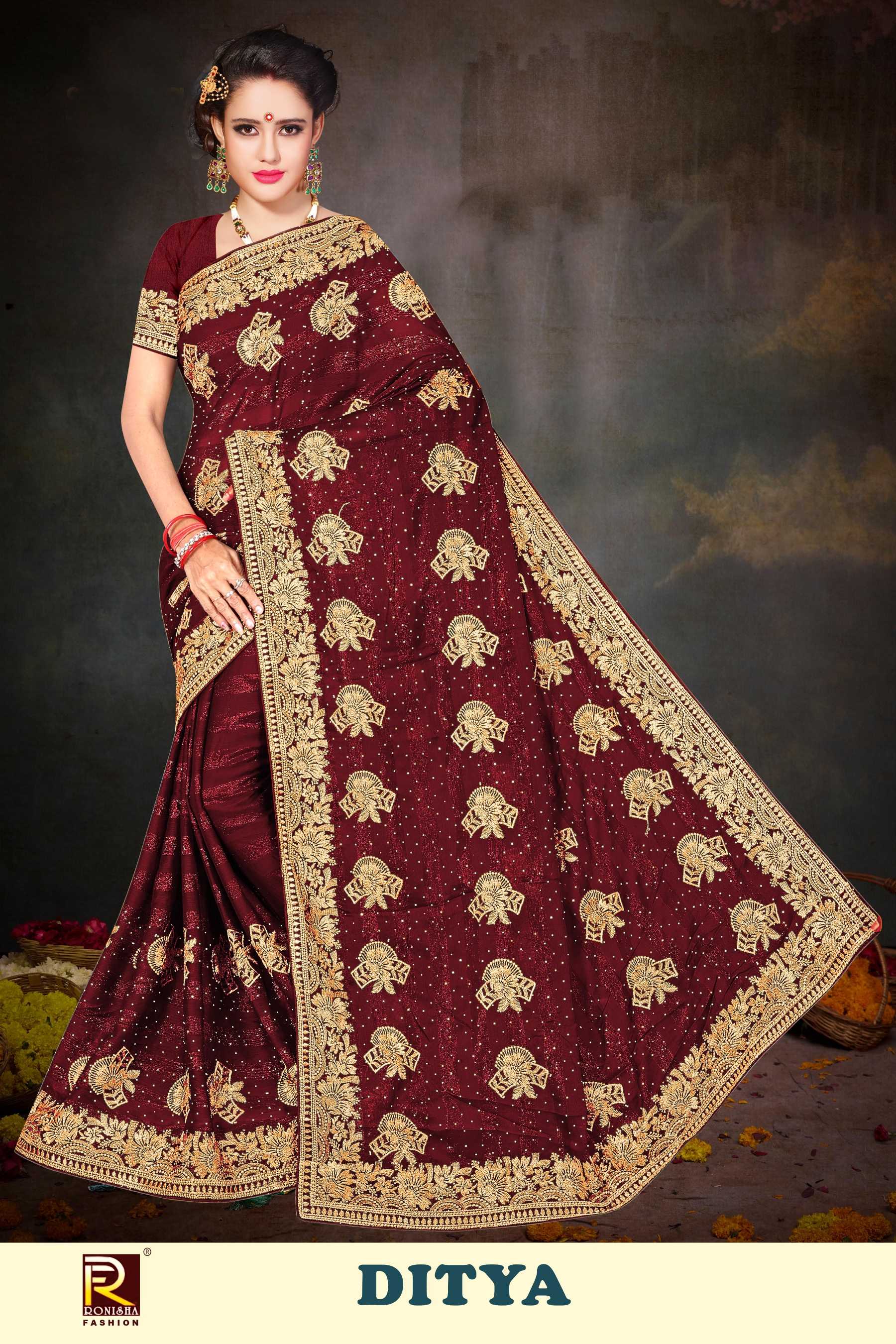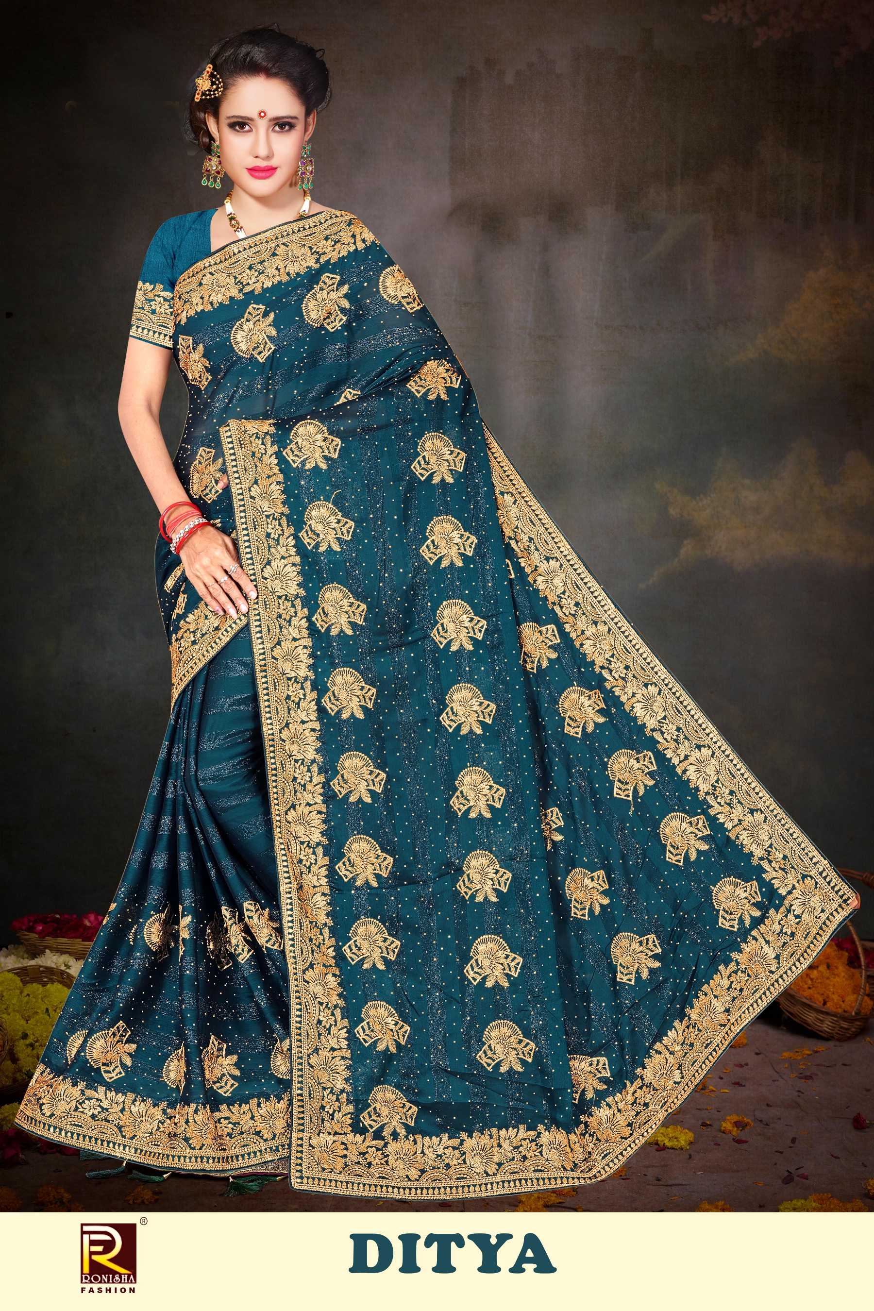 DITYA BY RANJNA SAREE RIMZIN FABRICS SIROSKI DIAMOND WORK & EMBROIDERY WORK FANCY SUPER HIT COLLECTION SAREES