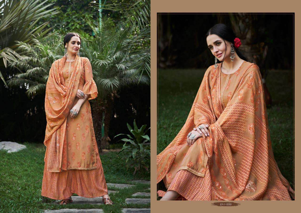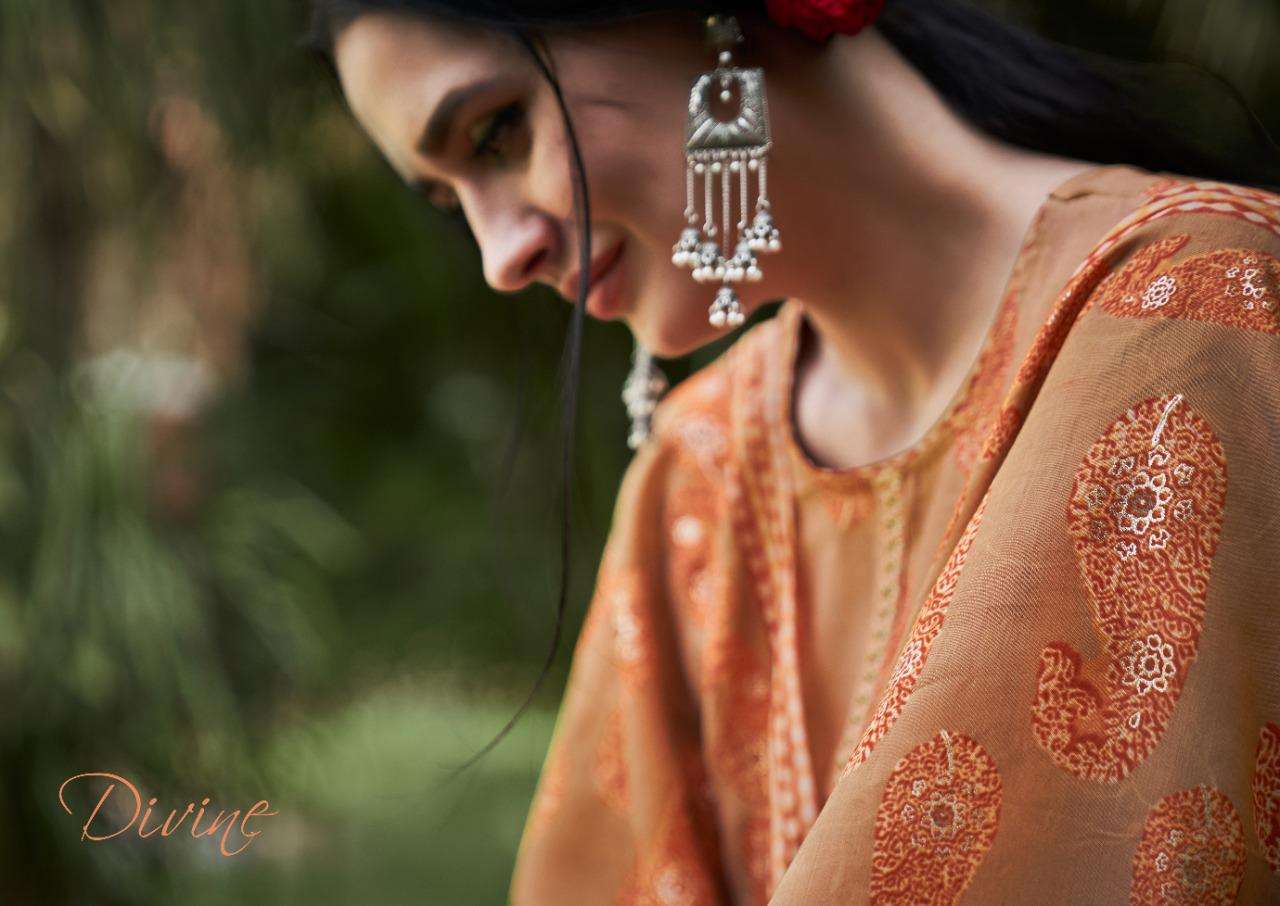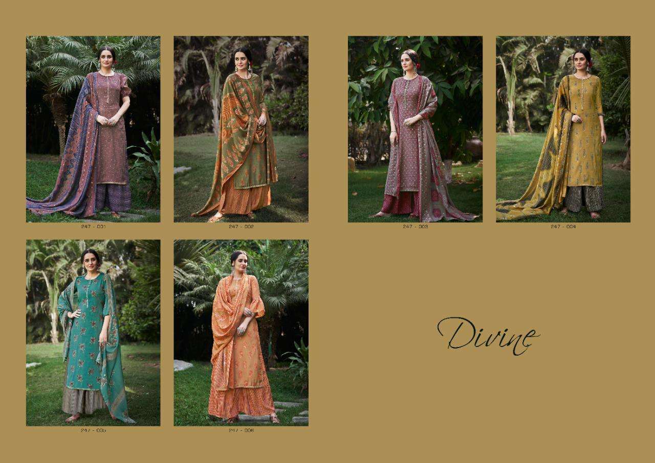 SARGAM PRINTS Presents       **DIVINE**           Vol-2    Fabric Details Top: PURE MUSLIN SILK FOIL PRINTS WITH EMBROIDERY LACE Bottom :MASLIN PRINTED Dupatta:*  PURE MASLIN FOIL PRINTED Designs: 6 PCS Rate: 1075 per pcs Set to set. GST 5 Percent Extra Delivery 2 days HSN CODE: 540754 |