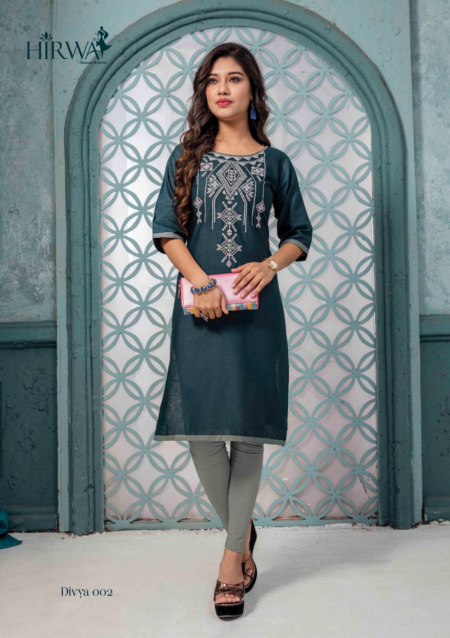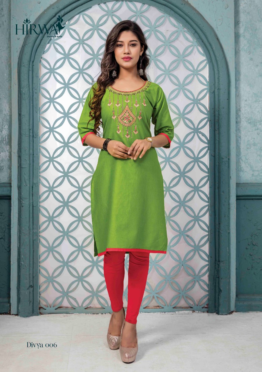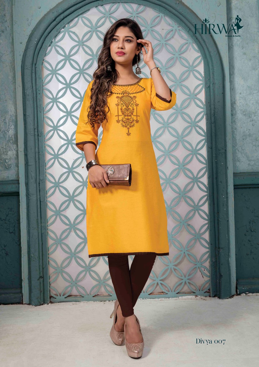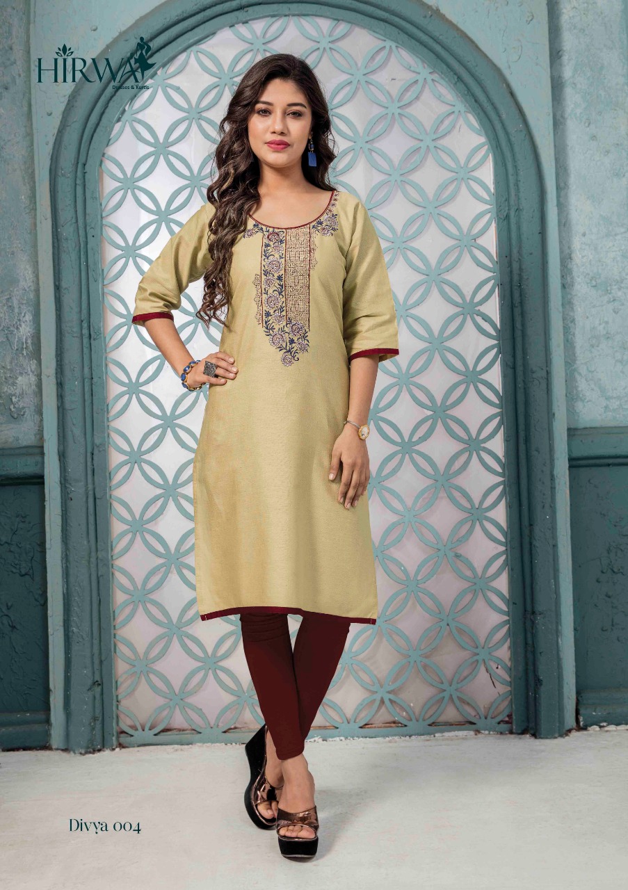 Divya By Hirwa Cotton Flex With Embroidery Work Regular Wear Kurti Seller
