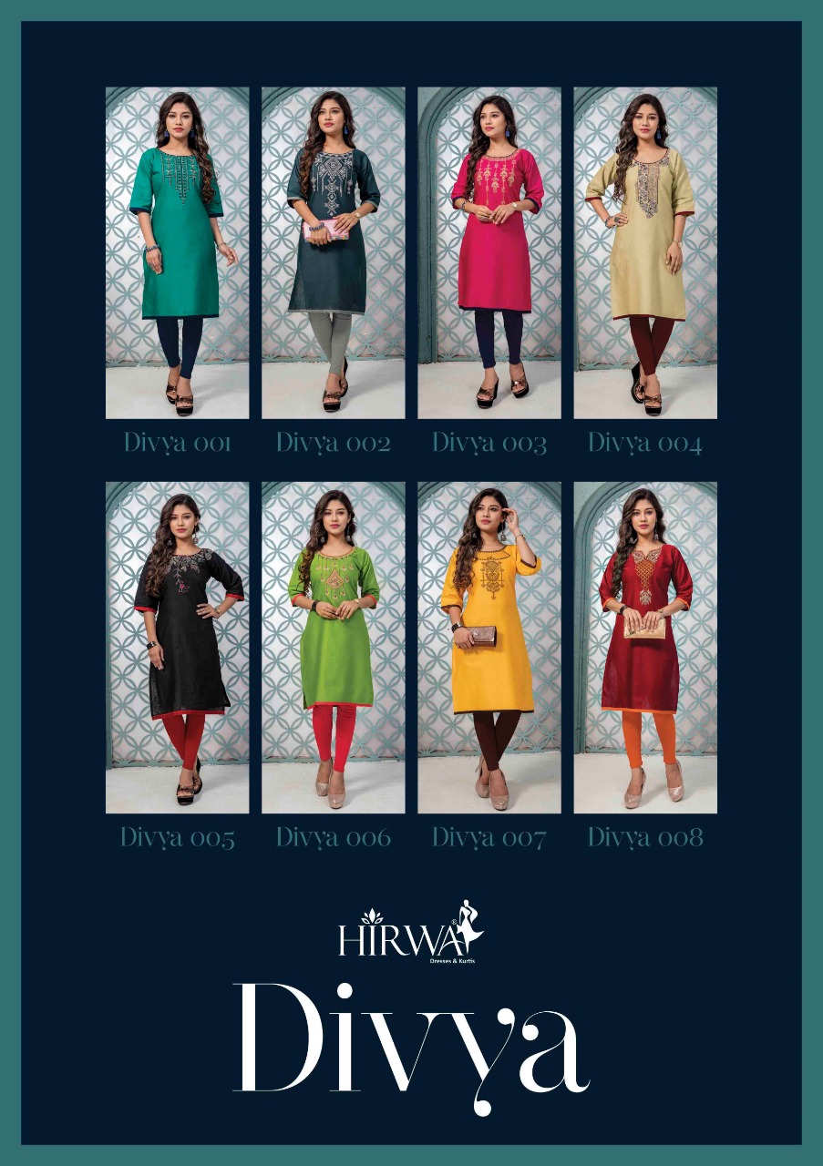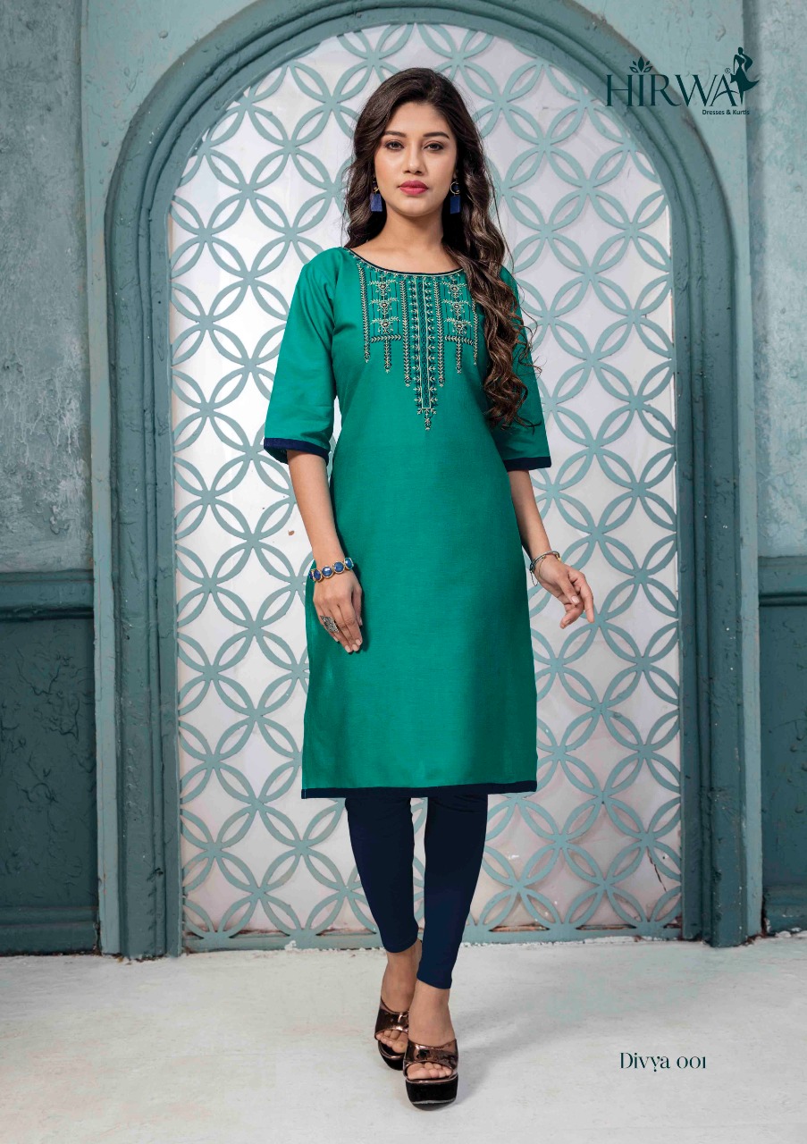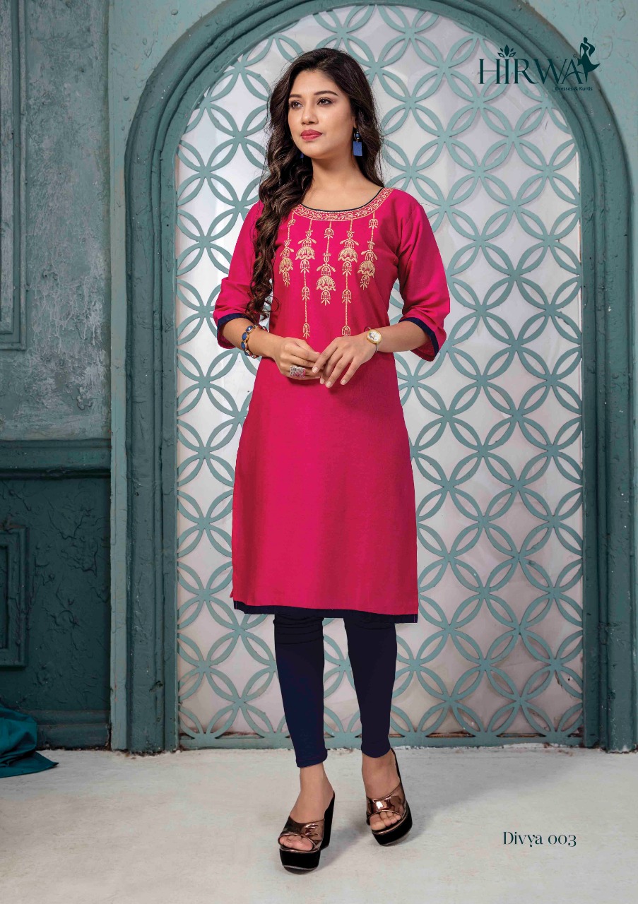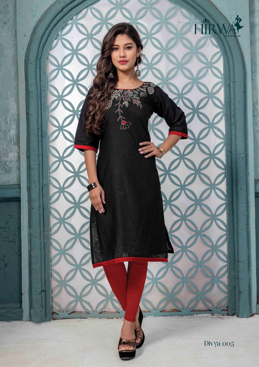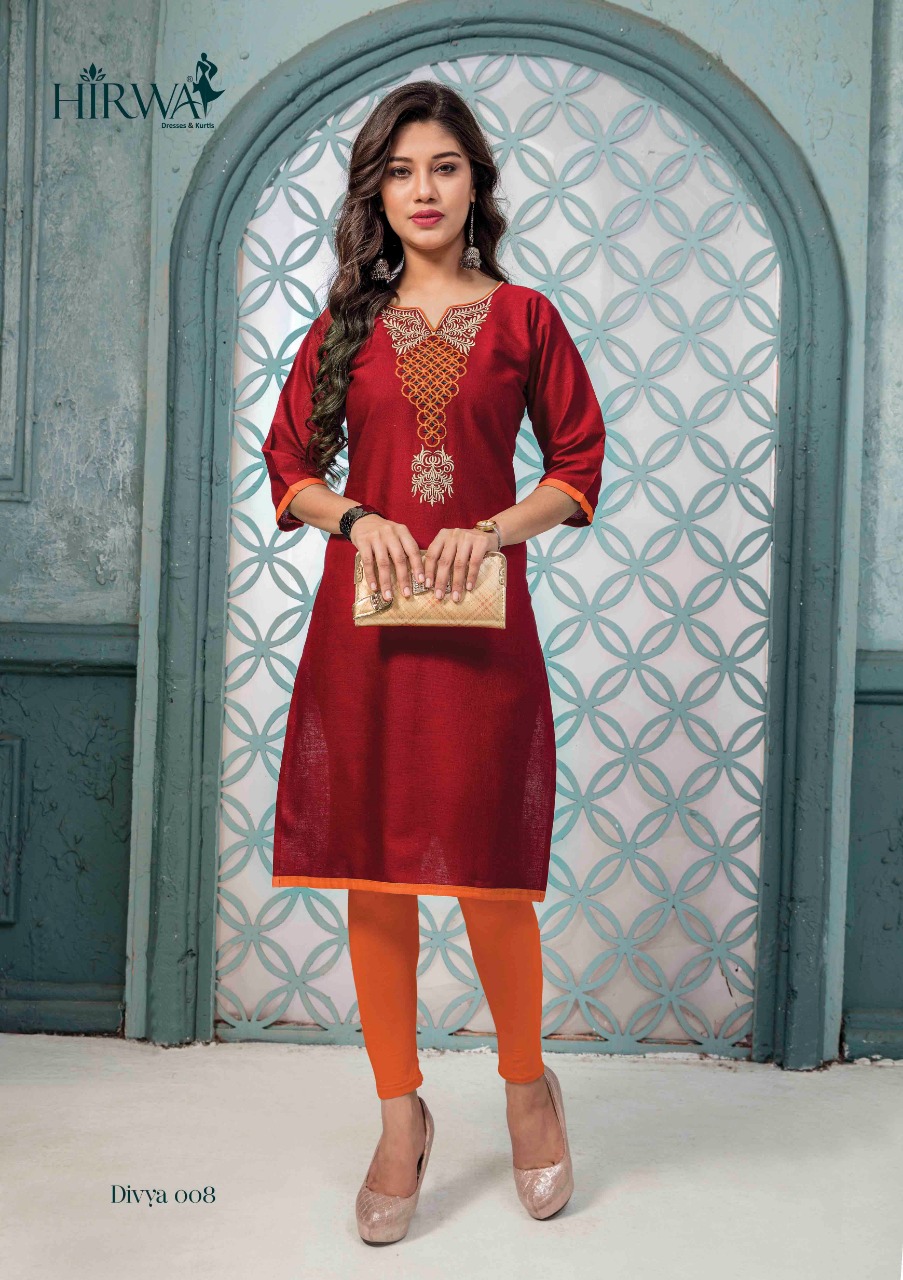 Divya By Hirwa Cotton Flex With Embroidery Work Regular Wear Kurti Seller