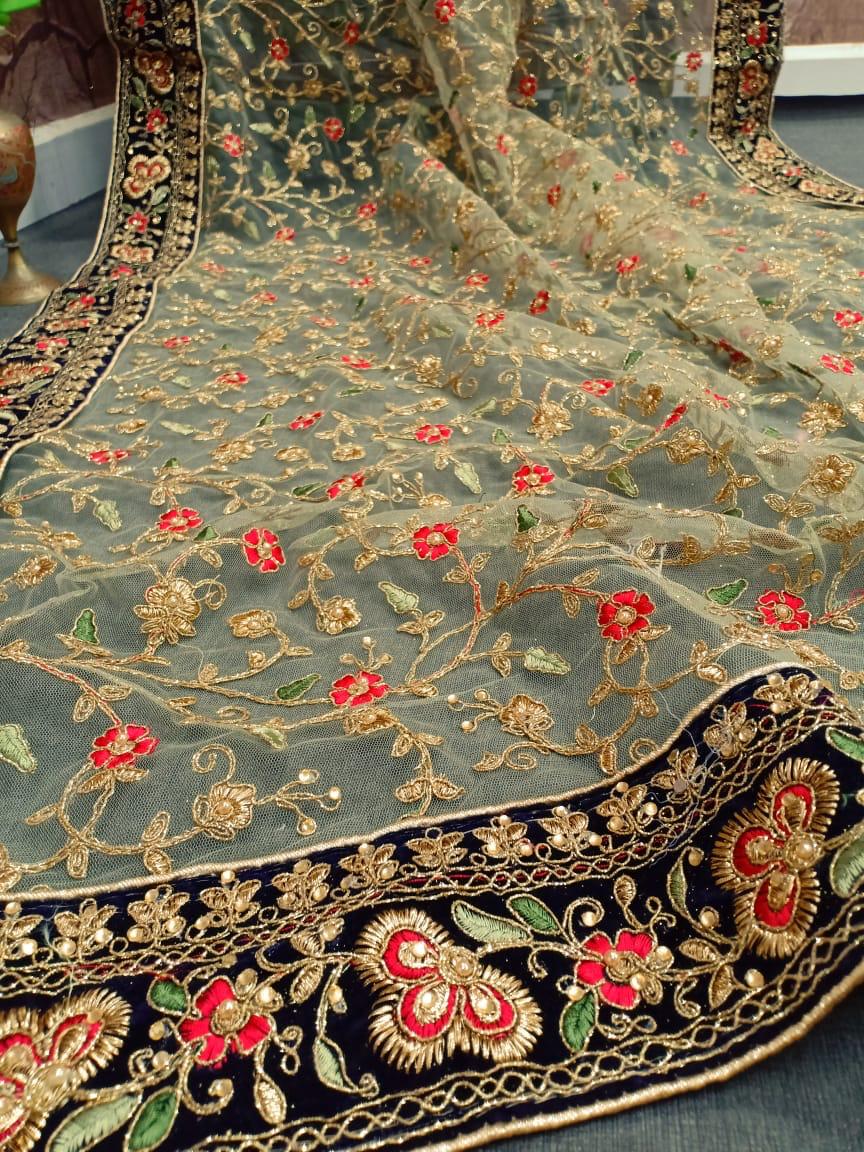 Saree :-Soft Net + havey glitter jari Work & hand work.&*9000 velvet fabrics with glitter codding jari work Blouse :-Net blouse with lace. Work :- Heavy codding work Embroidery + Stone Work. DF-4037 RATE-1749/- PIECE - 5 Delivery from today |