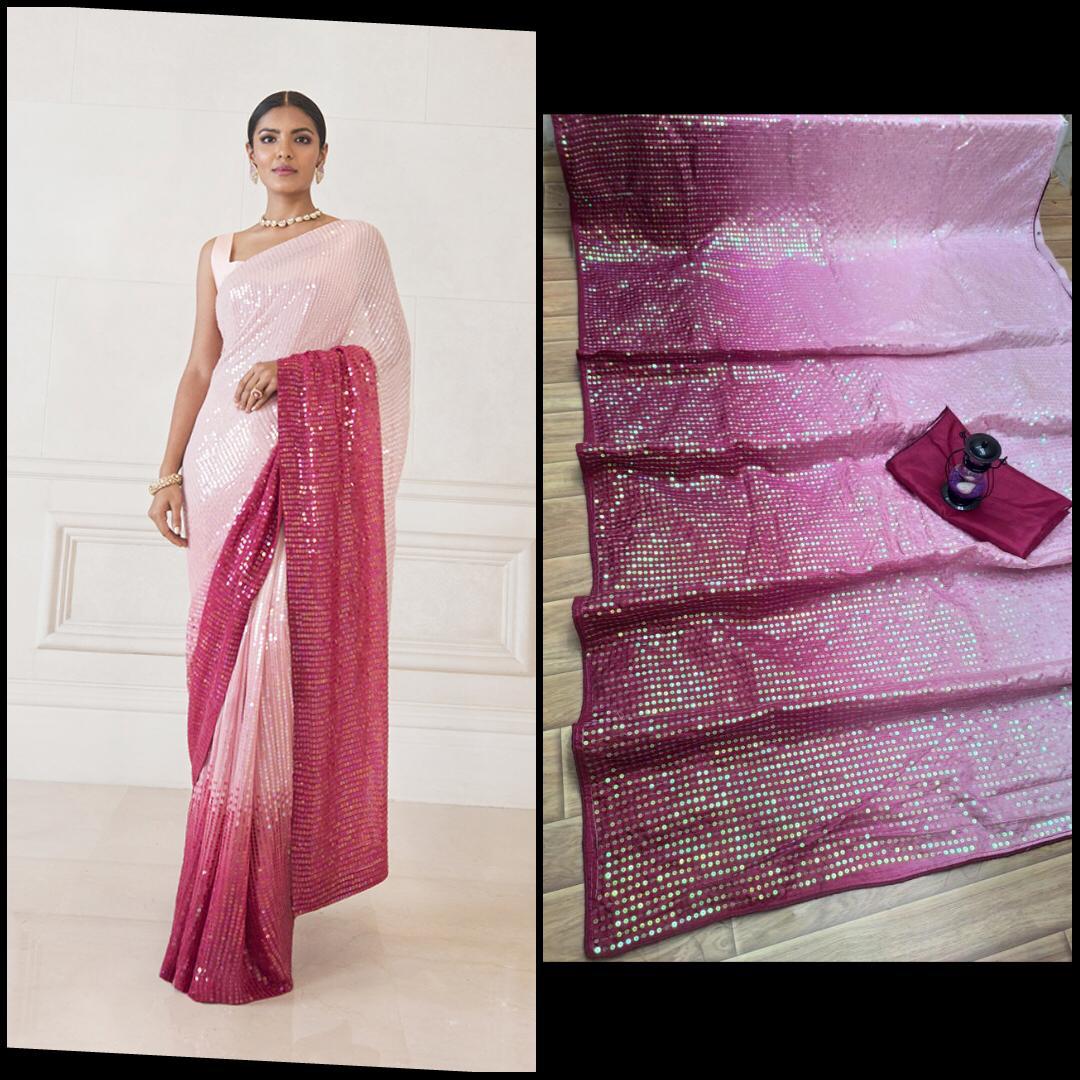 New BlockBuster Design Launching 3D EFFECT SEQUENCE SAREE CODE-DF-RUHANIYYAT PRICE-999 per pcs . Fabric Details Full Saree Of DOLLA PADING*3D EFFECT With Heavy 5MM RAINBOW Sequence Embroidery Work Embrodery Details 5MM Sequence Work Done On 4.5 mtr in saree Blouse-DOLLA PADING Beautiful Piping Done On Border Premium Quality BEWARE OF LOW PRODUCT ND REPLICA Image for Refrence purpose only |