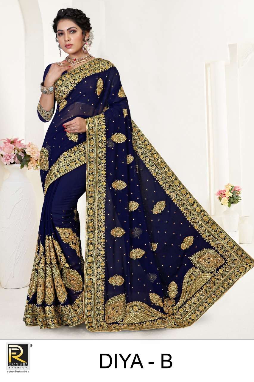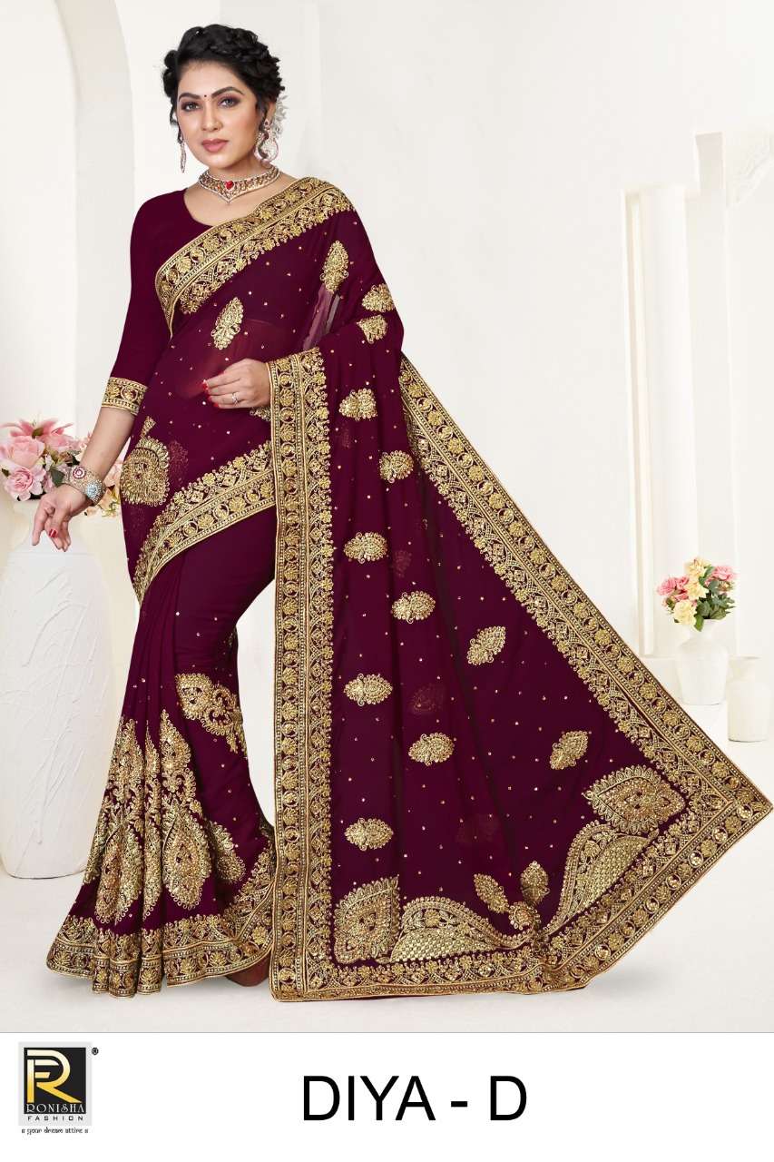 Diya by Ranjna sarees embroidery jari worked heavy Diamond wedding collection wholesale shop