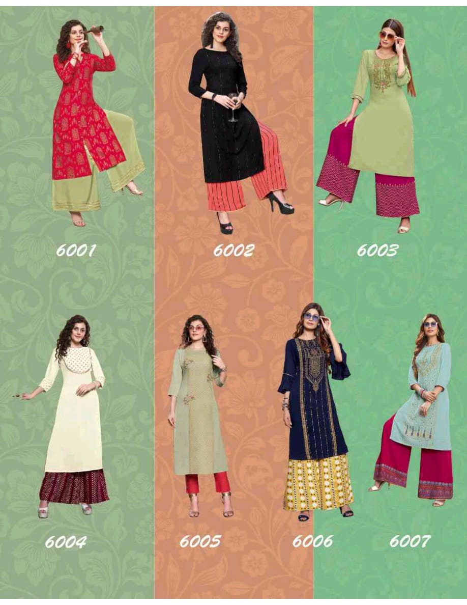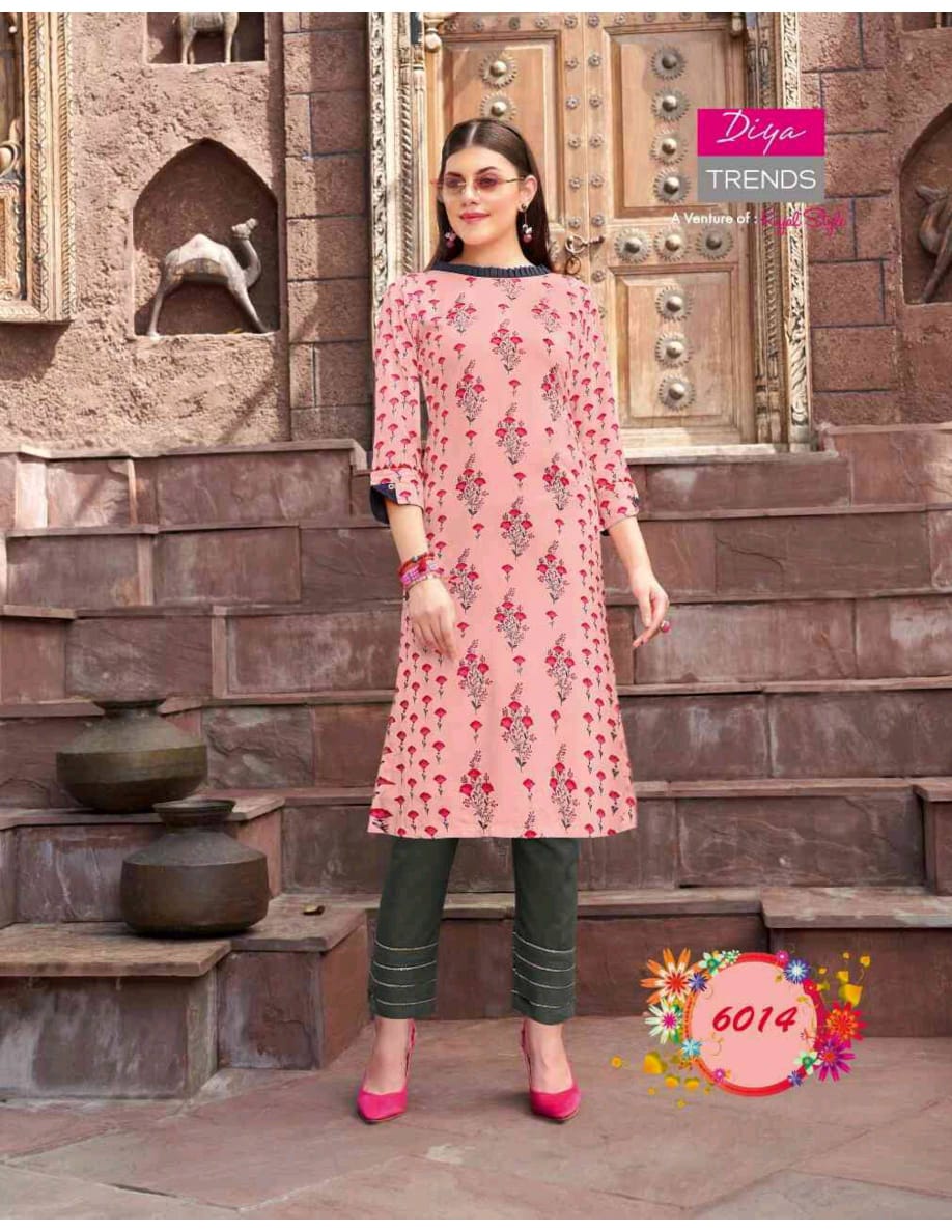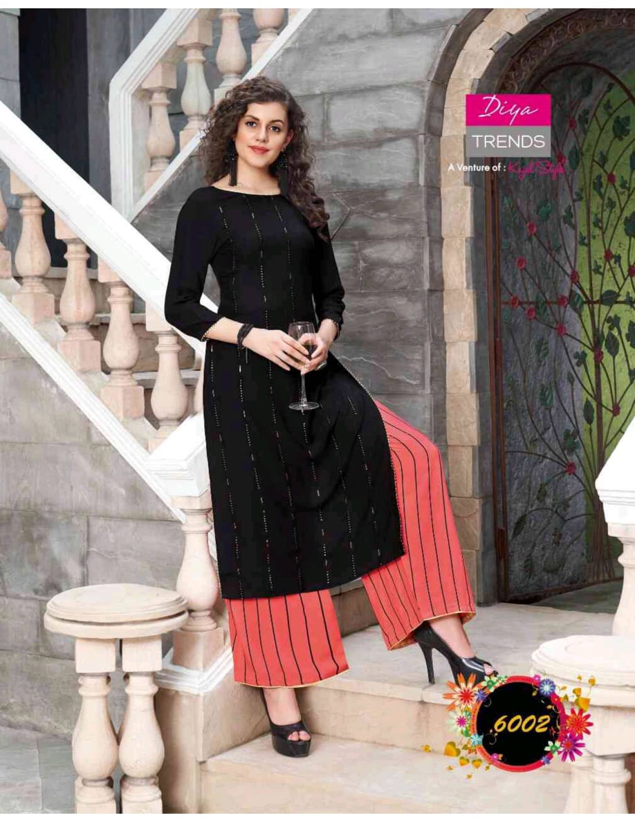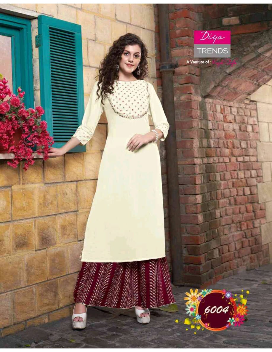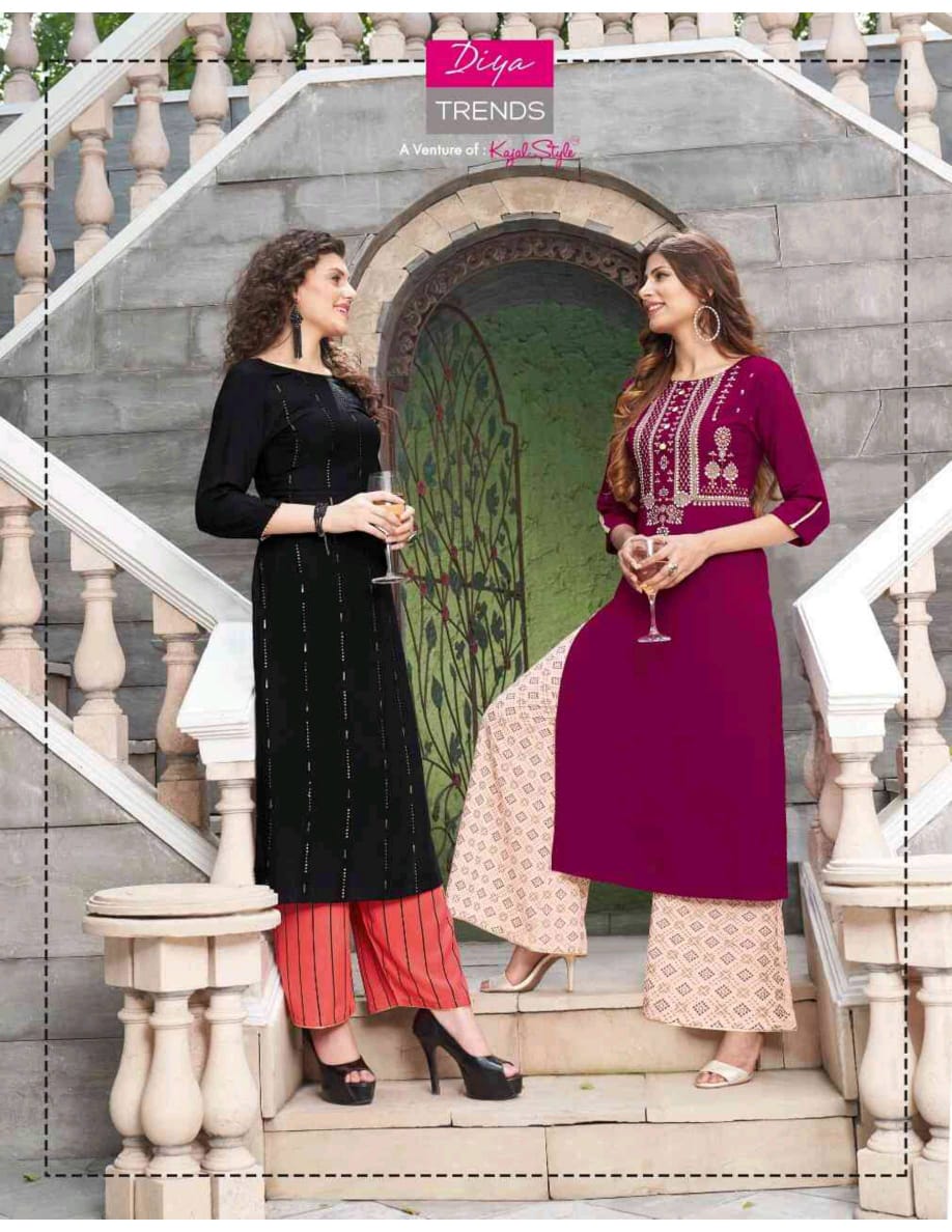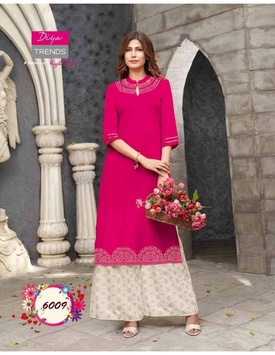 Diya Trends Bibas Vol 6 Rayon Classy Prints Kurti With Plazzo And Pant Pair Wear Daily