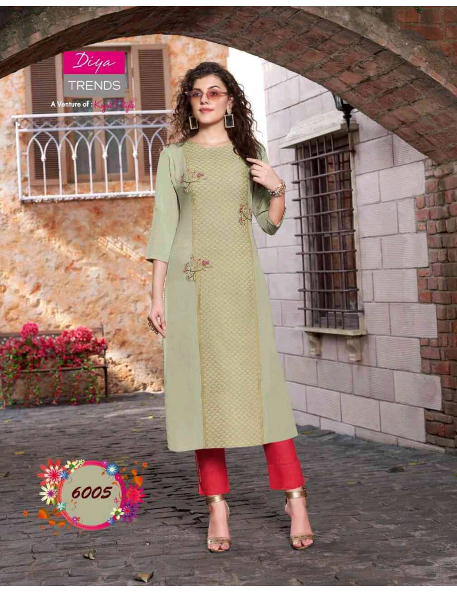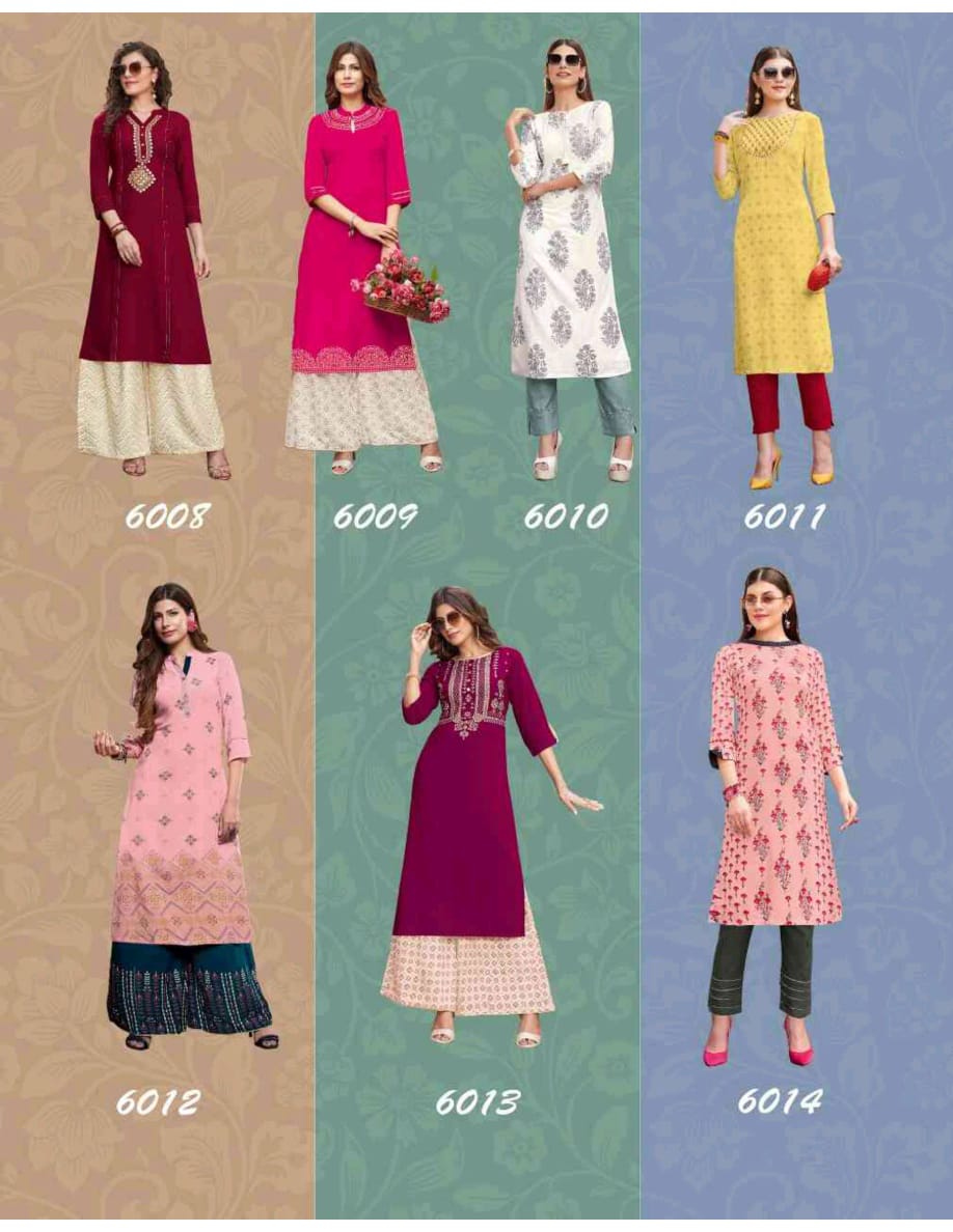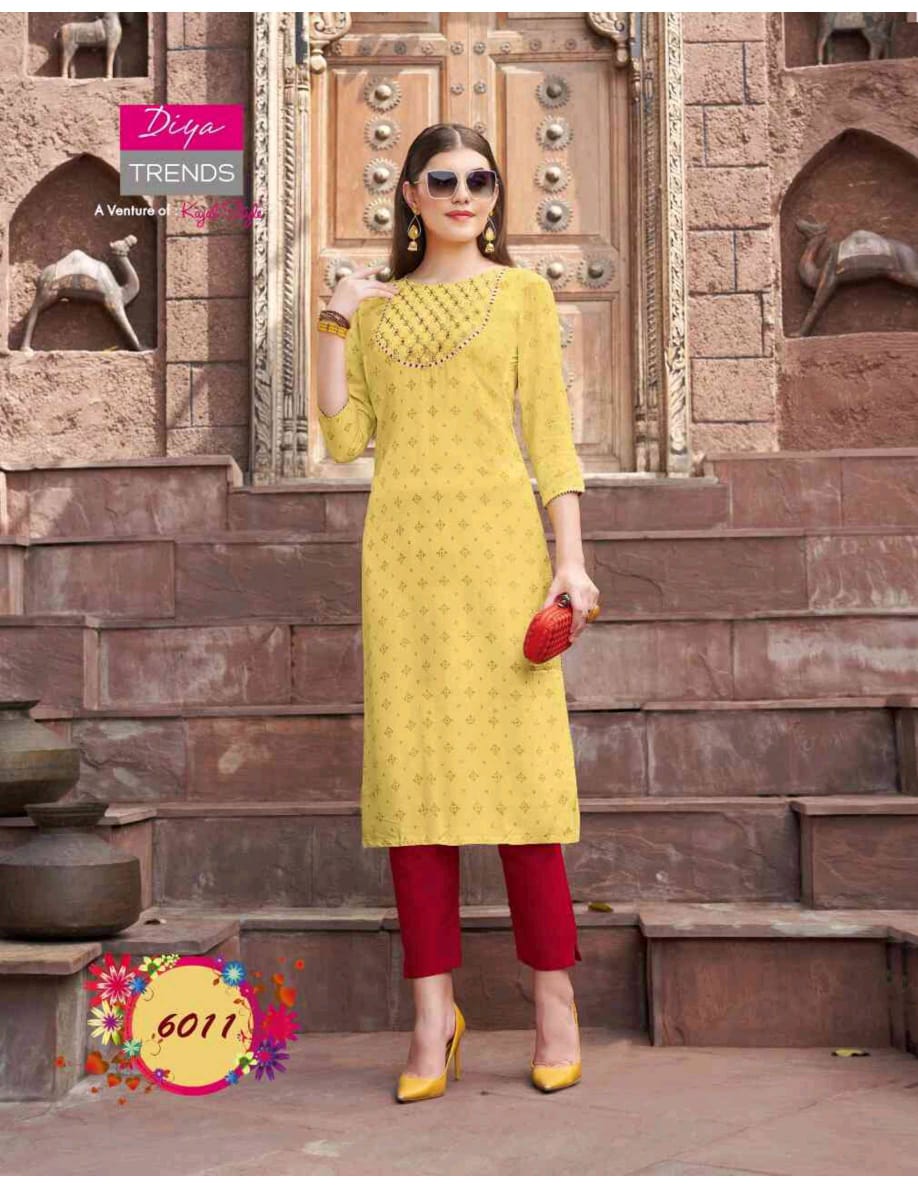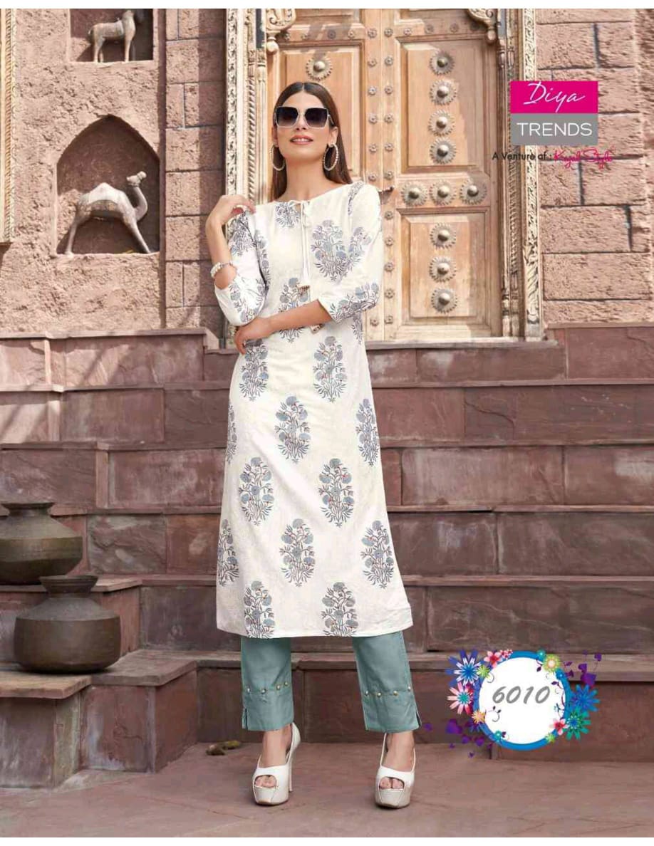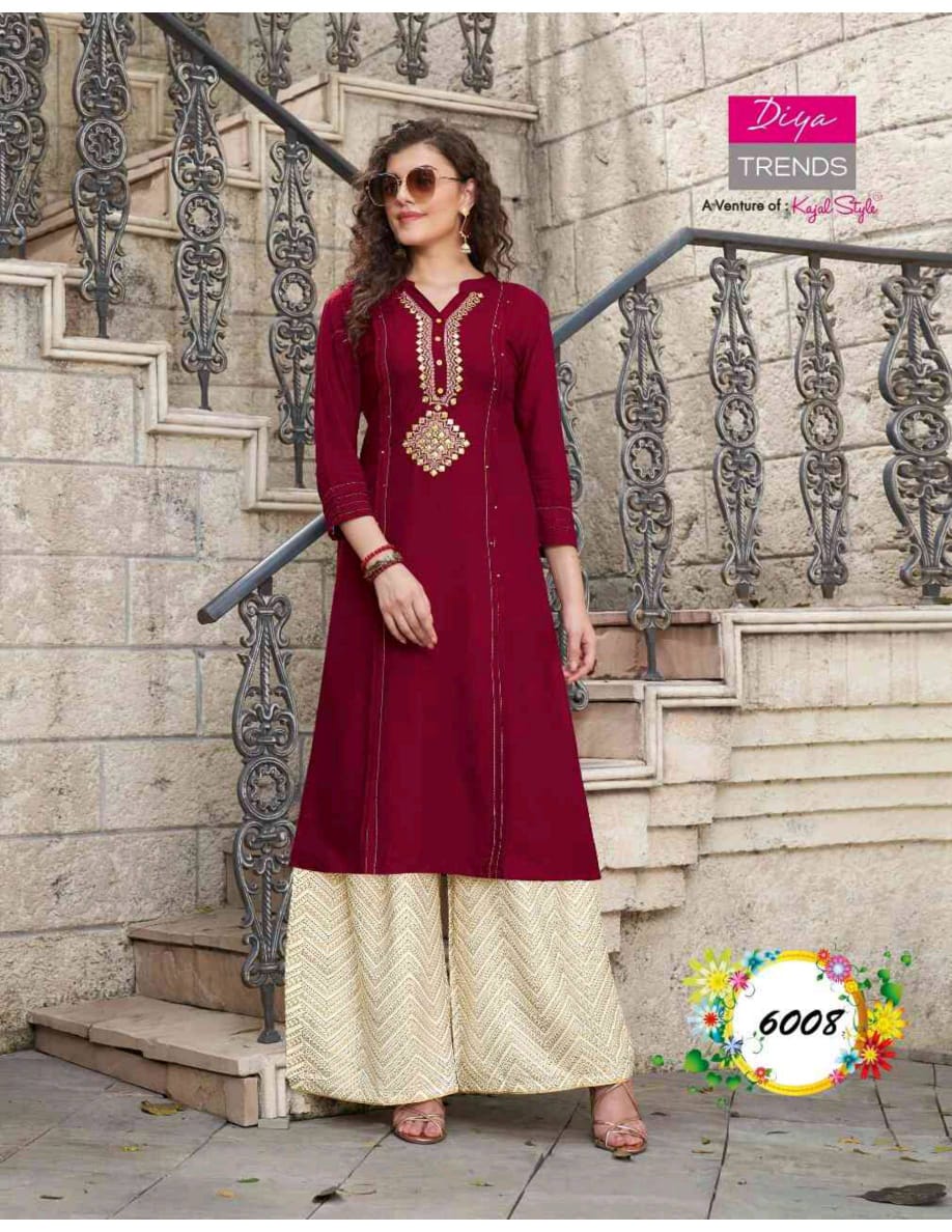 Diya Trends Bibas Vol 6 Rayon Classy Prints Kurti With Plazzo And Pant Pair Wear Daily
