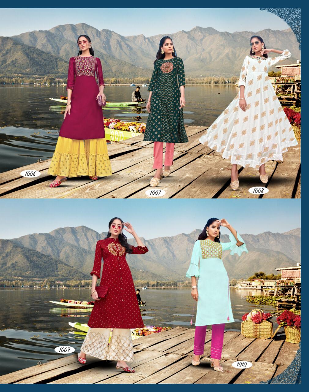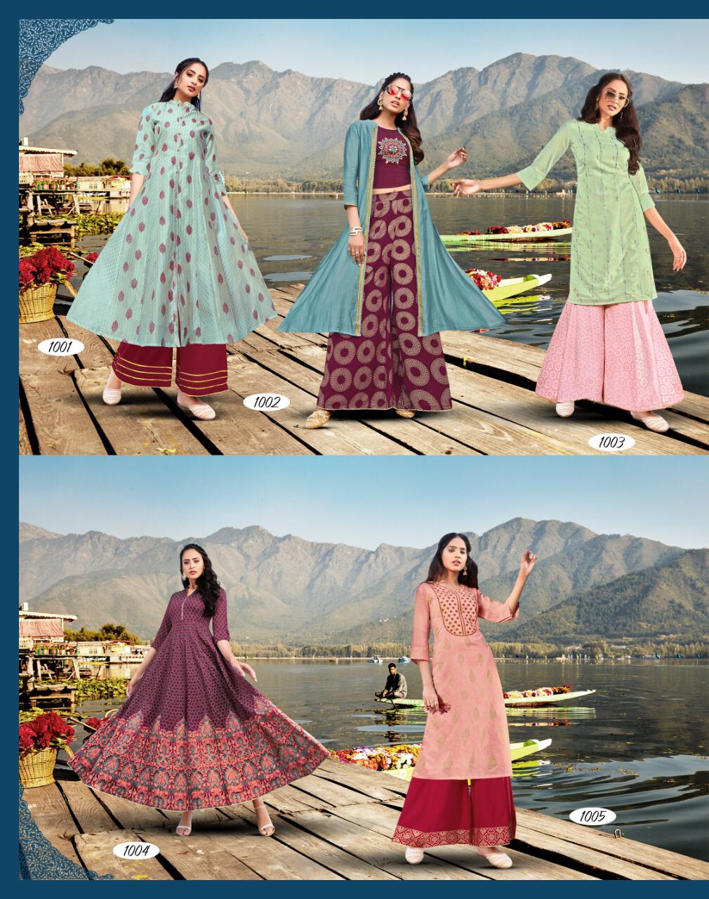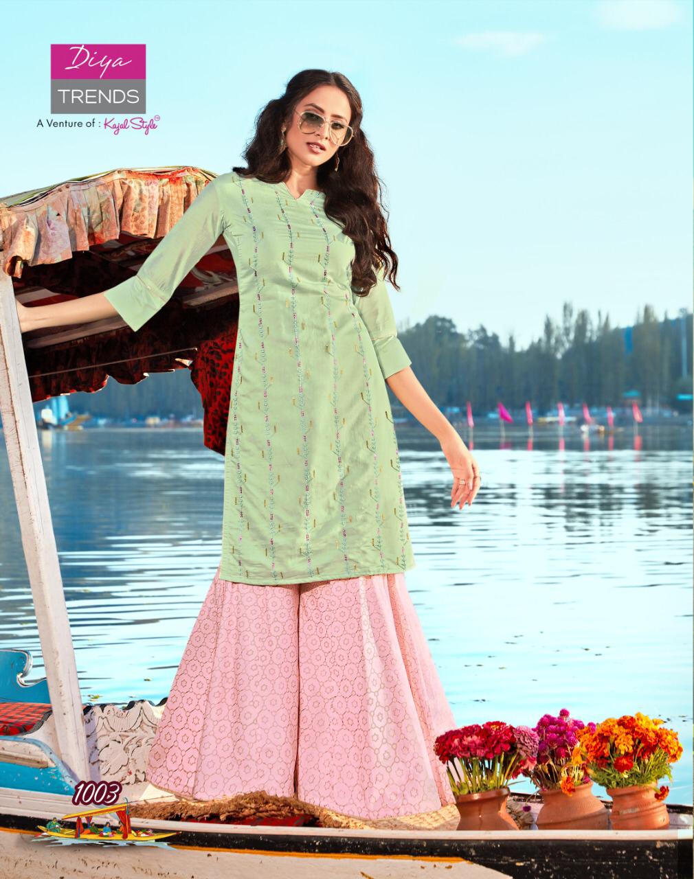 Diya Trends Fashion Festive Vol 1 Exclusive Modal Chanderi Kurti With Sarara Plazzo And Pant Pair