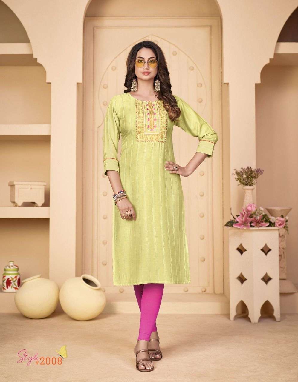 🧥Pattern: STRAIGHT KURTI WITH EMBROIDERY WORK 🎗Size - S(18) M(19) L(20) XL(21) XXL(22) 3xl(23) 4xl(24) ☣Designs- 8 pcs |