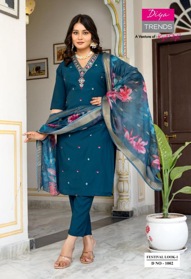diya trends festival look roman silk designer readymade 3pcs set