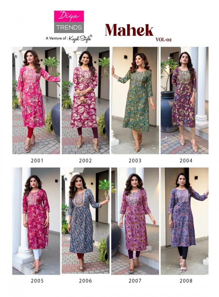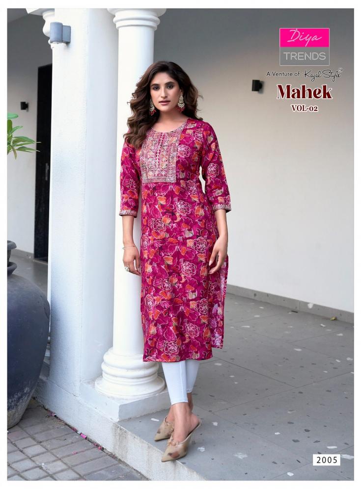 diya trends mahek vol 2 rayon elegant style full stitch plus size long kurti supplier