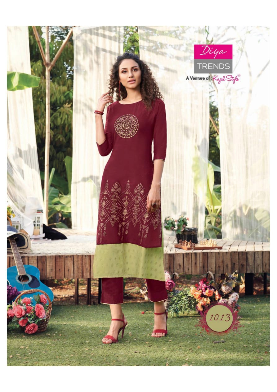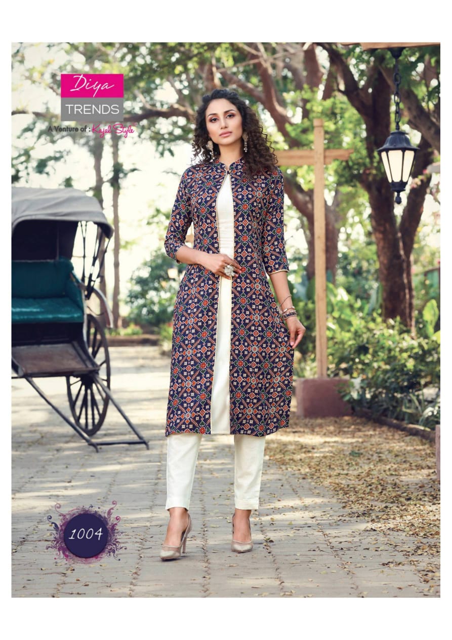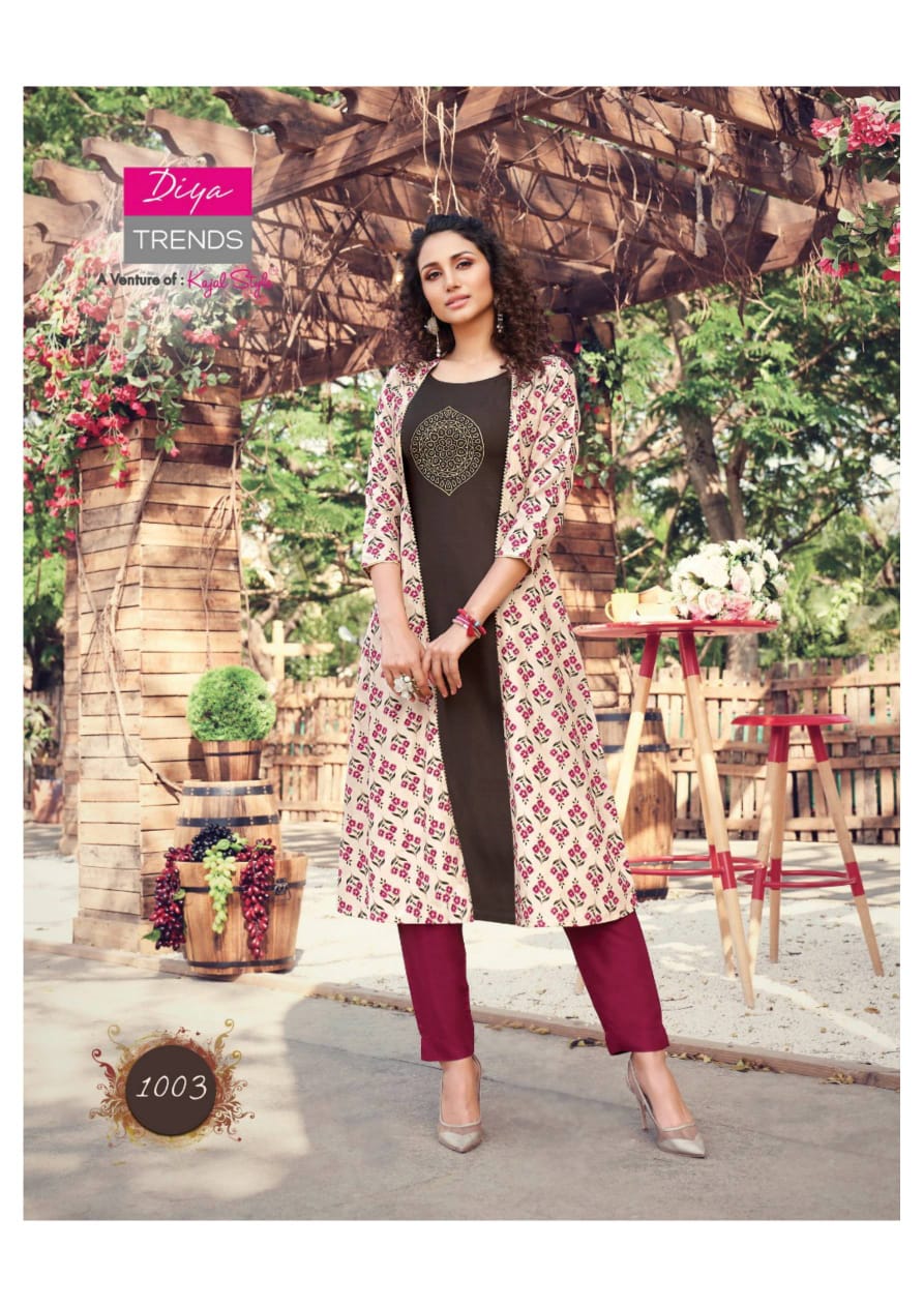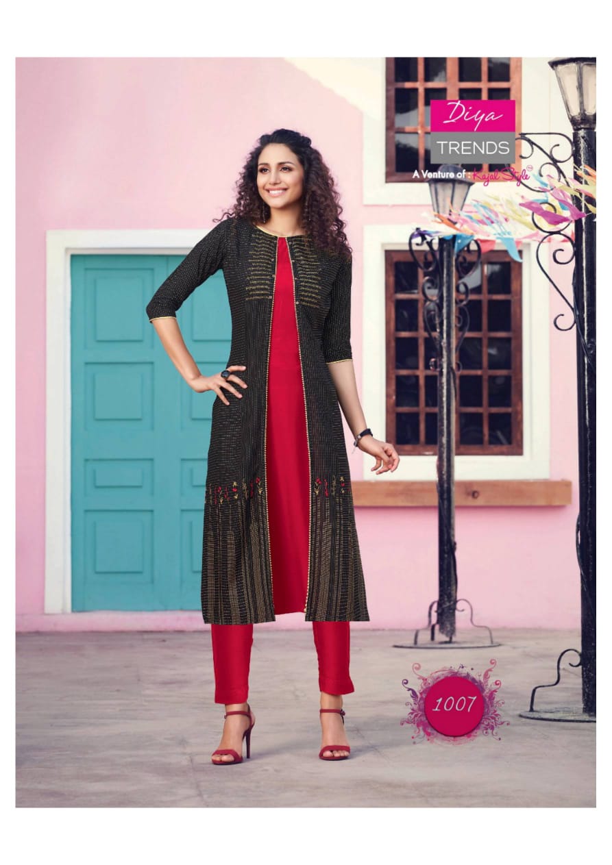 Diya Trendz Scarlett Vol 1 Rayon Cotton Designer Kurti With Shrug