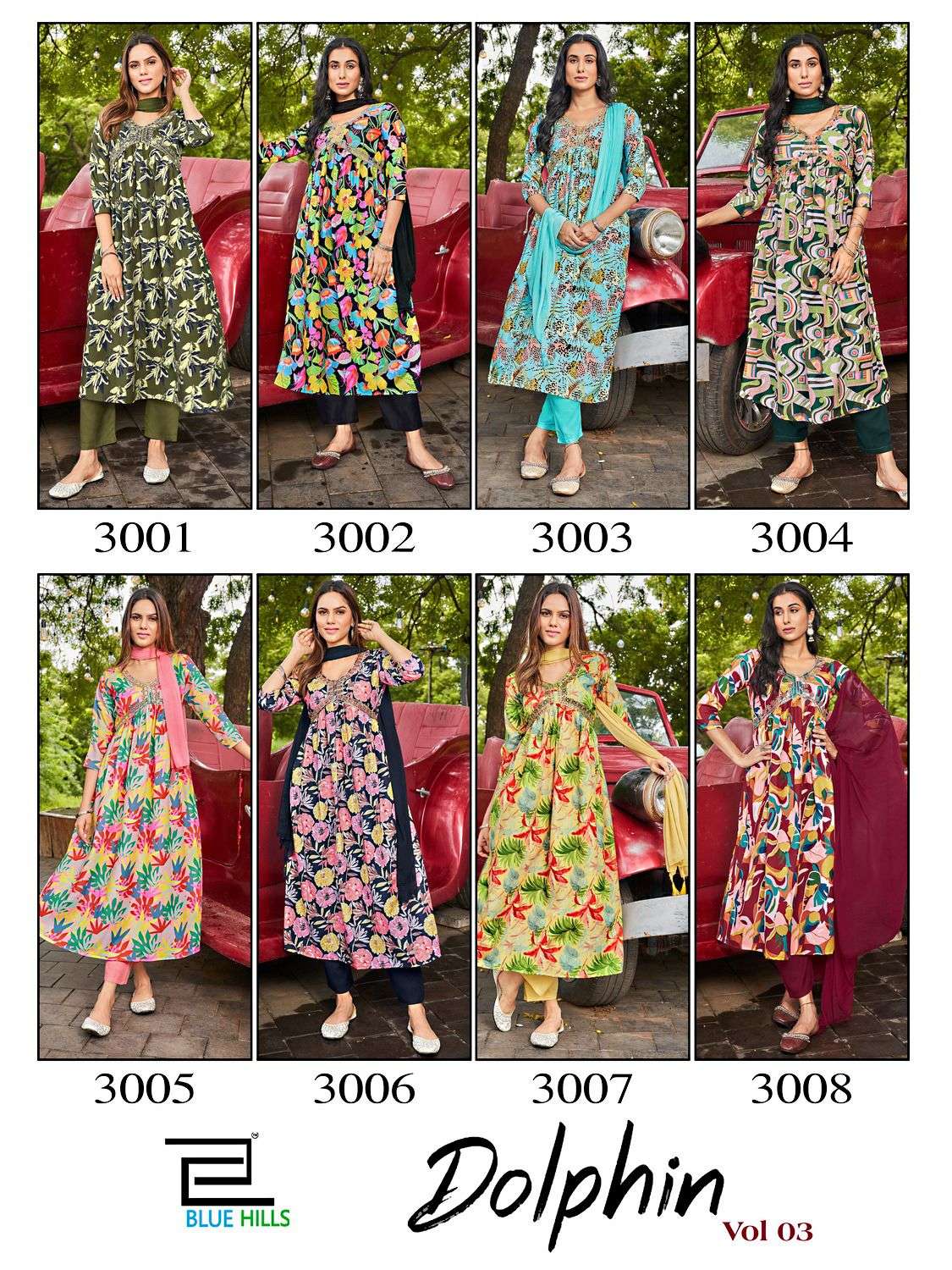 dolphin vol 3 by blue hills digital print alia cut kurti with pant and dupatta