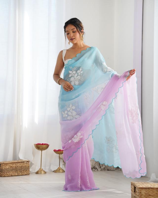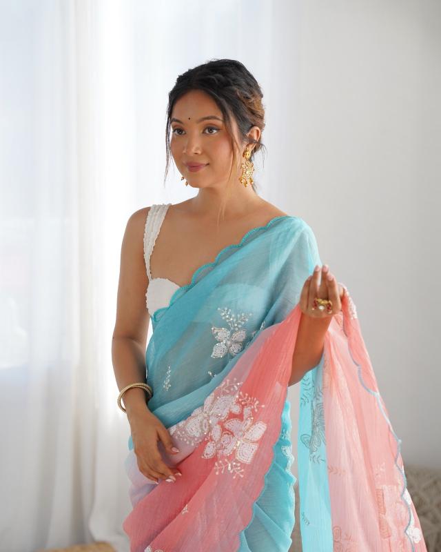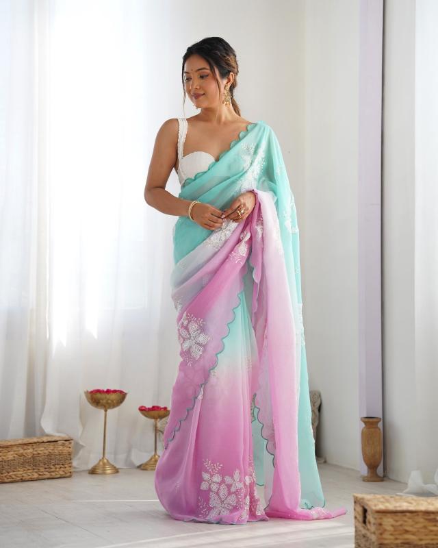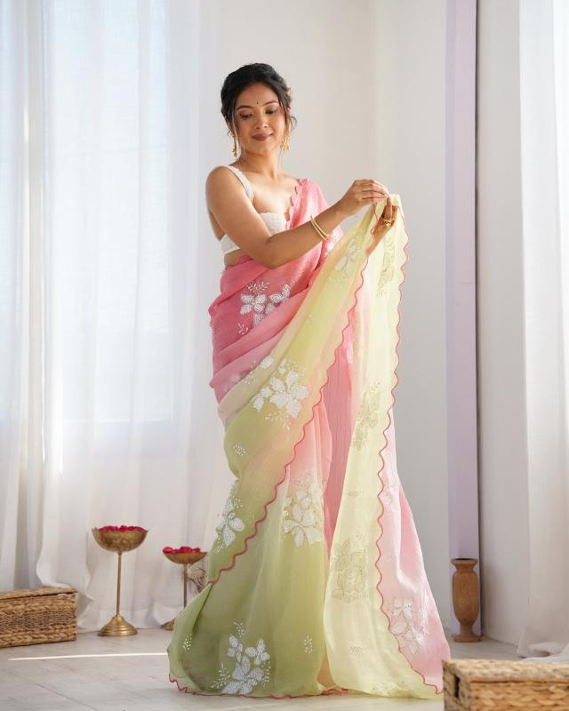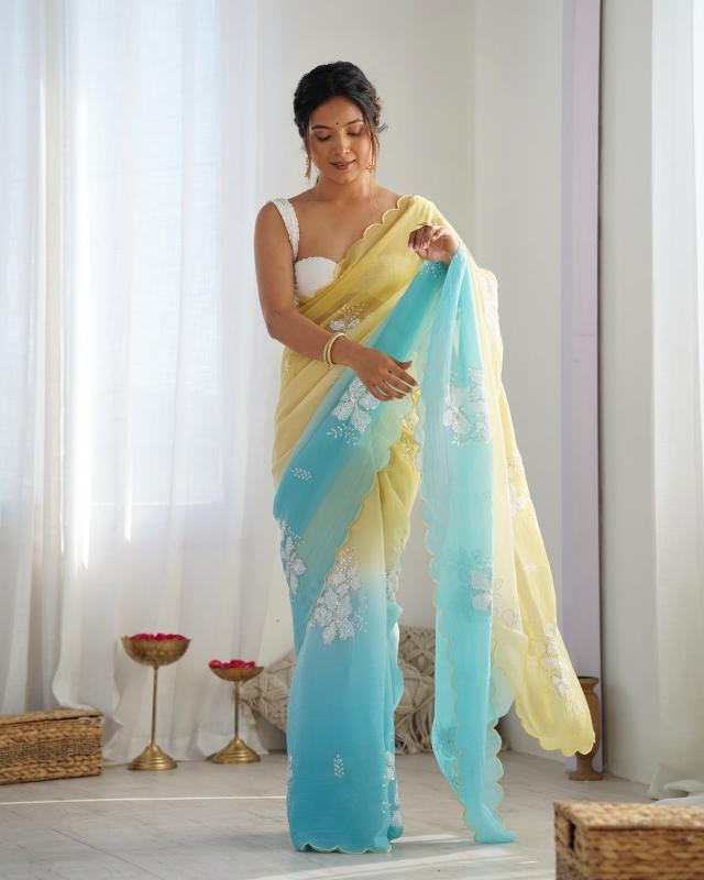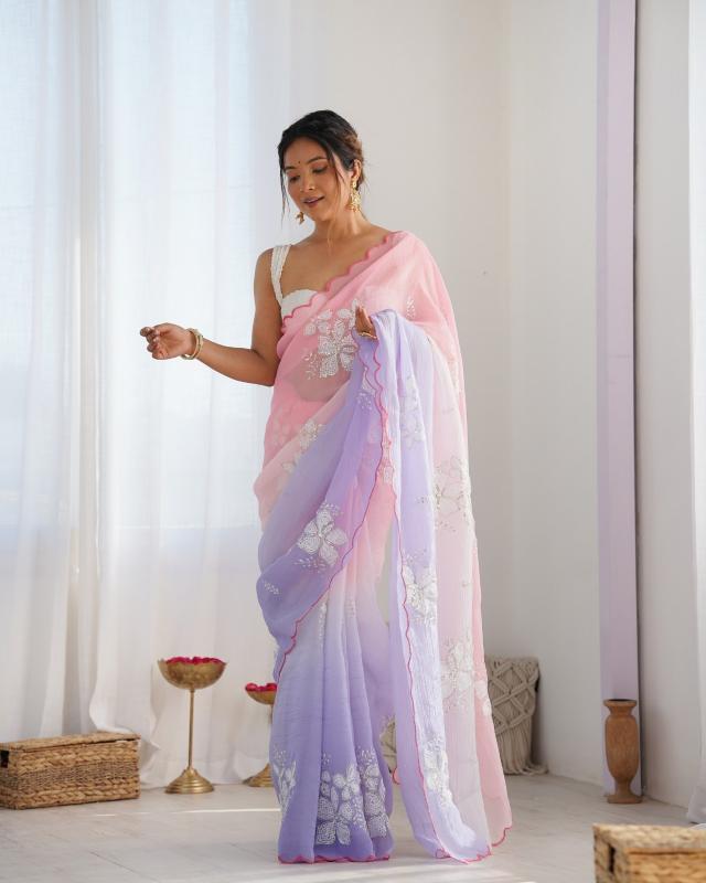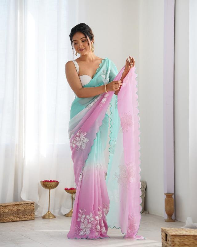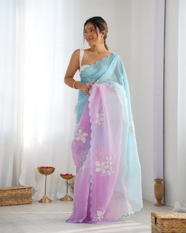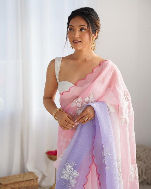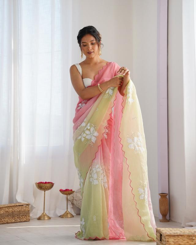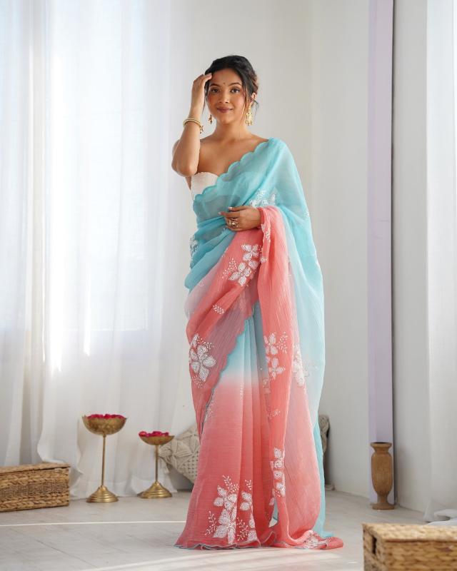 DS- 691 PADDING 👇 Fabric details 👇 🛑SAREE FABRIC- CRUNCHY 🛑SAREE LENGTH- 5.50 Mtr 🛑BLOUSE FABRIC- SATIN SILK Note- Saree comes with double arco border RATE - 1099/- |