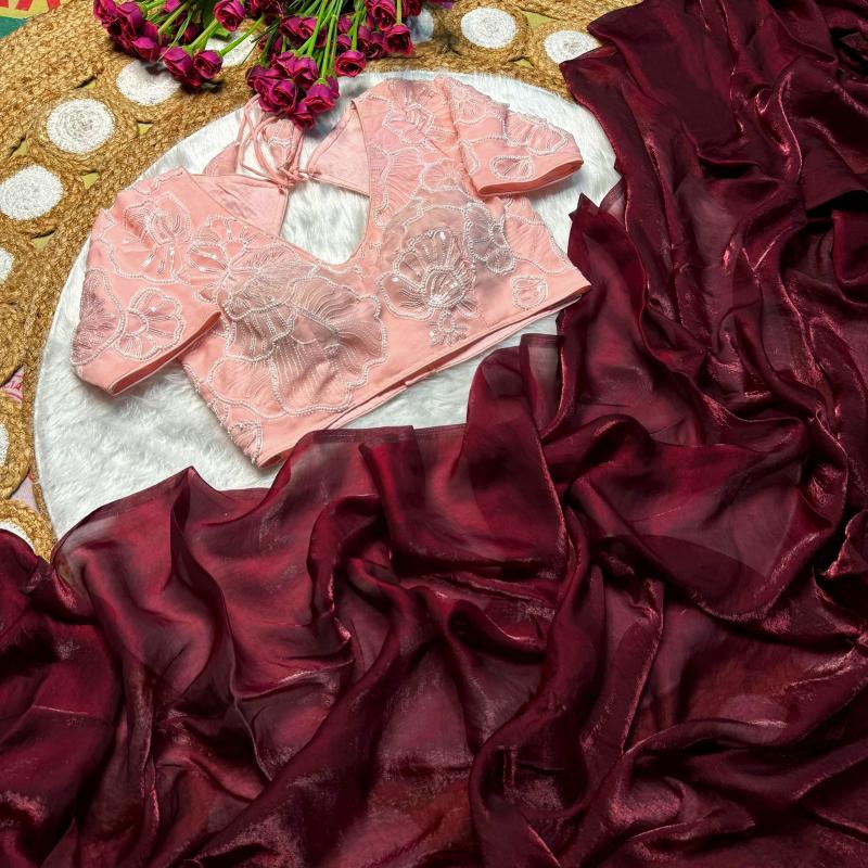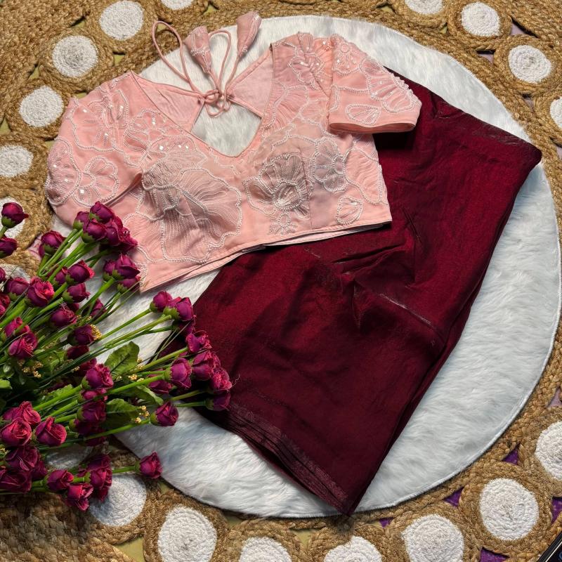 Most demanded space silk saree Saree length -5.50 mtr Stiched blouse is reference purpuse only Rate - 1299/- |