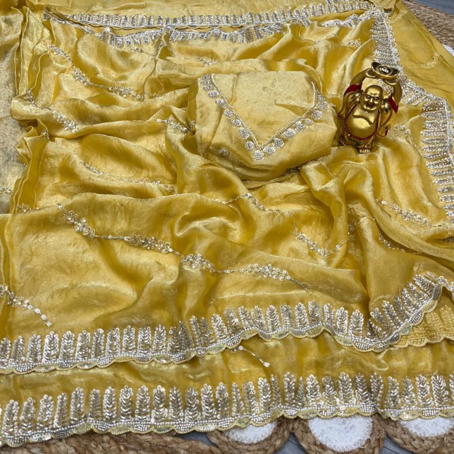 Presenting you the luxurious and glamorous trending hand work saree DS-715 👇 Fabric details 👇 🛑SAREE FABRIC - Space silk 🛑BLOUSE FABRIC- Space silk with beeds work RATE - 2549/- |