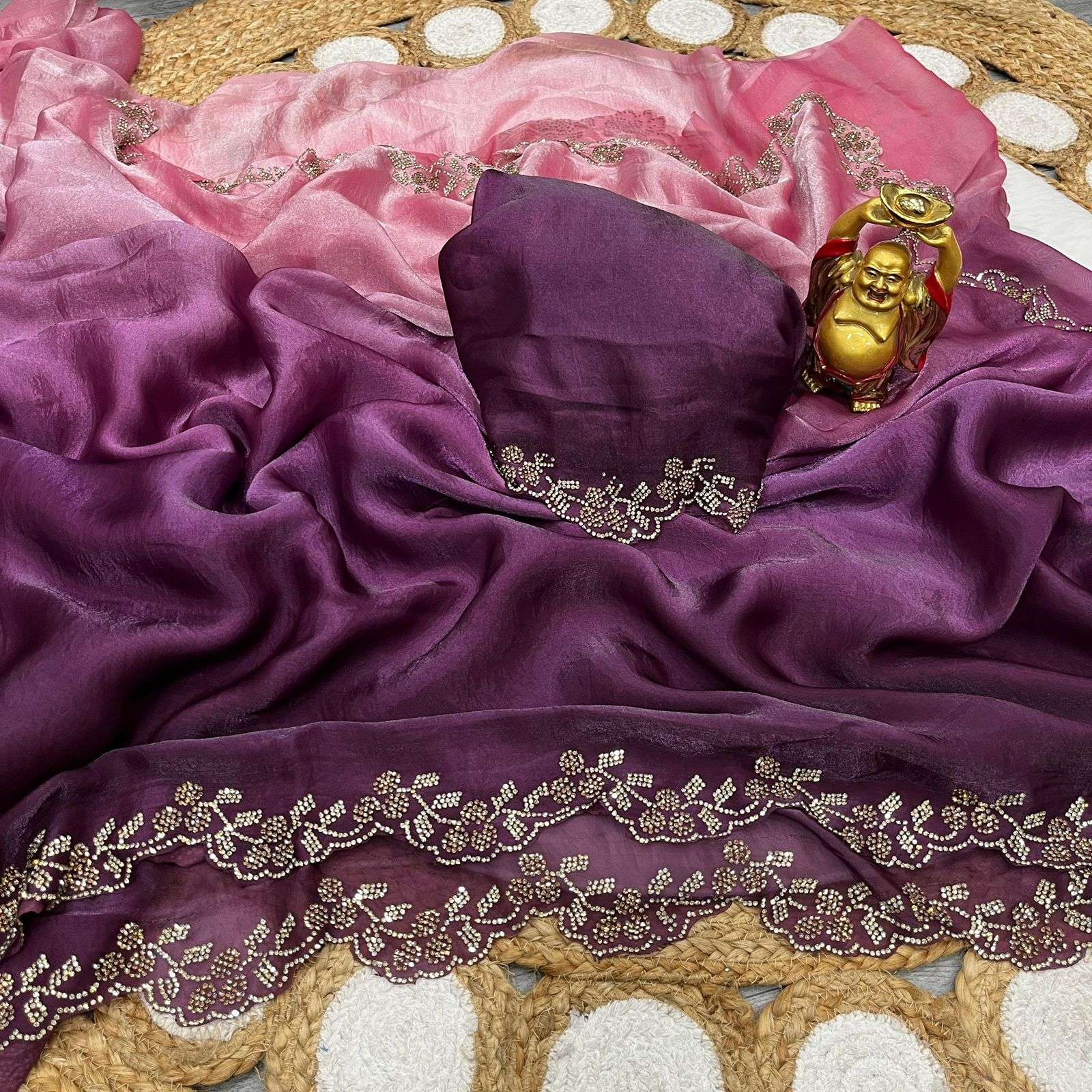 Presenting you most beautiful saree collection 🛑SAREE FABRIC- Shaded Space silk 🛑SAREE WORK- Dual shade Jarkhan work 🛑BLOUSE FABRIC- space silk with jarkhan work RATE - 1799/-😍😍😍 |
