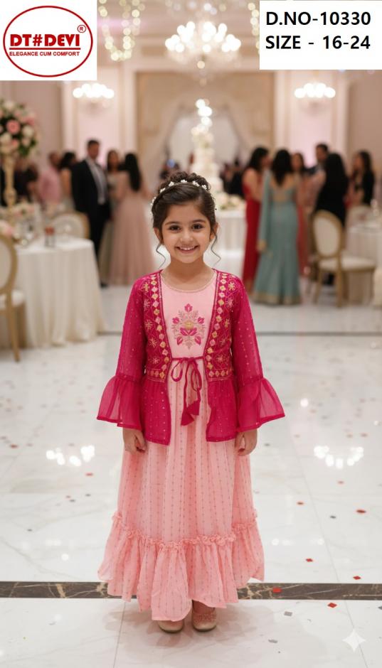 dt devi 10330 georgette fully stitch combo kids gown with coat online