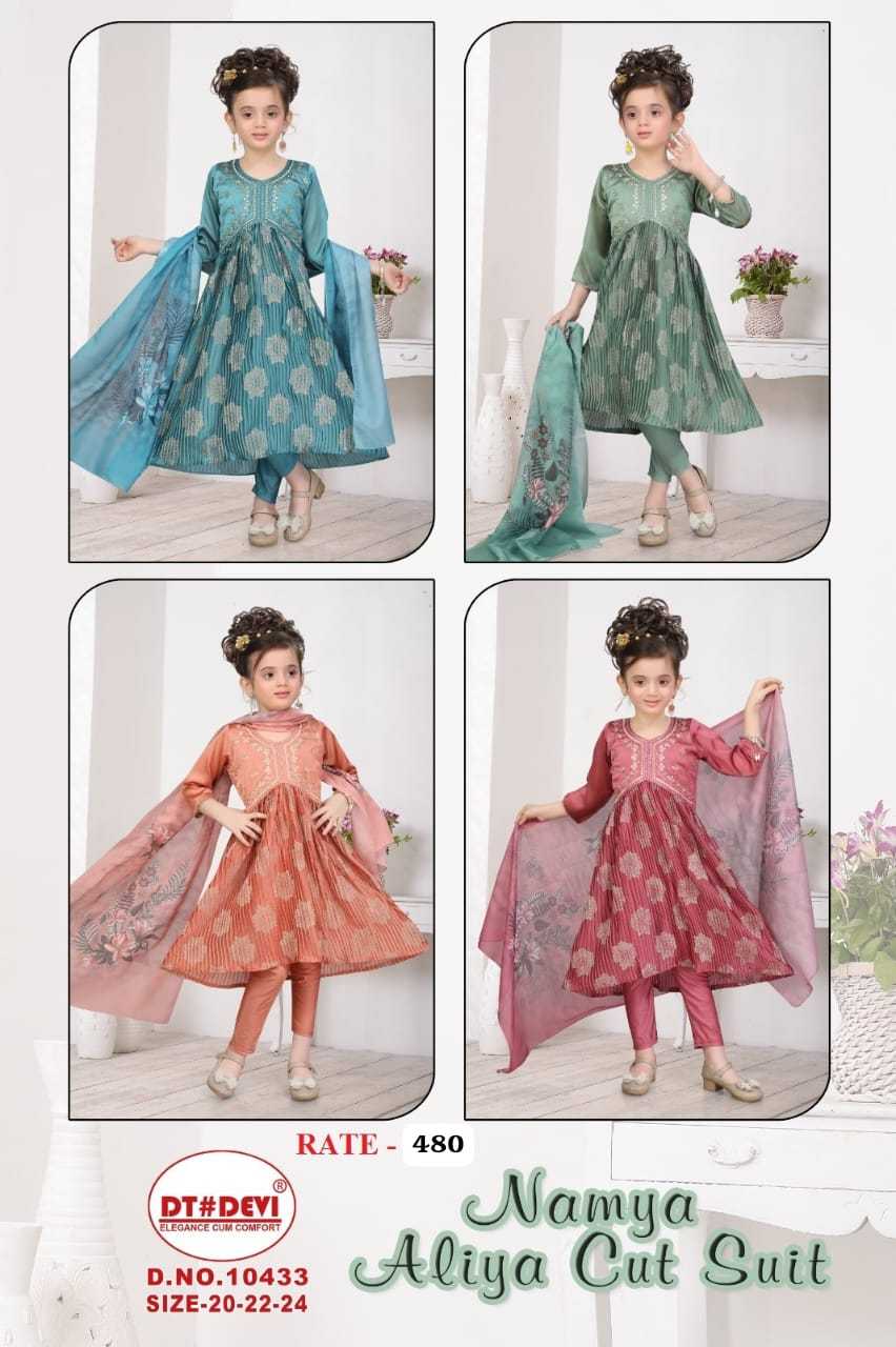 dt devi 10433 namya aliya cut fancy georgette readymade kids combo set dress