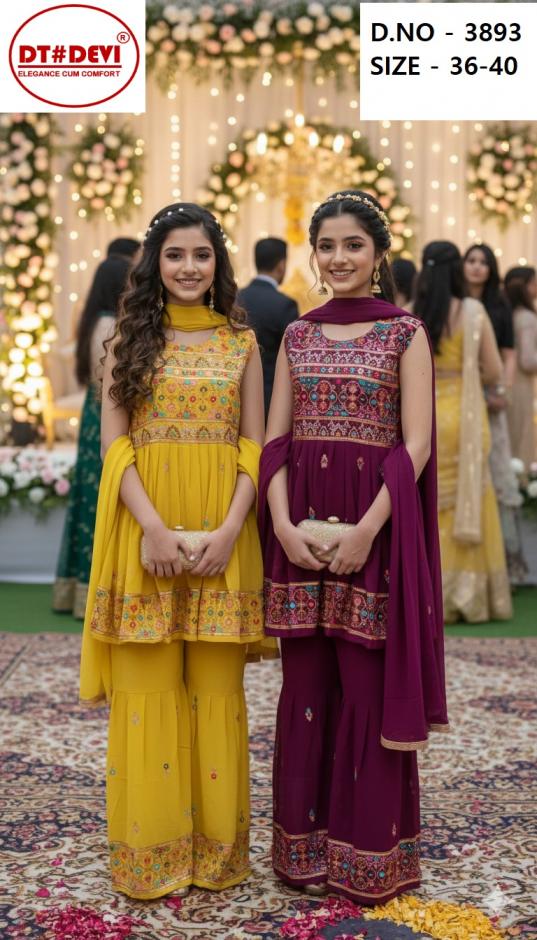 dt devi 3893 georgette fully stitch combo sharara kids 3pcs dress