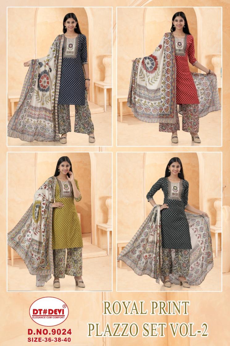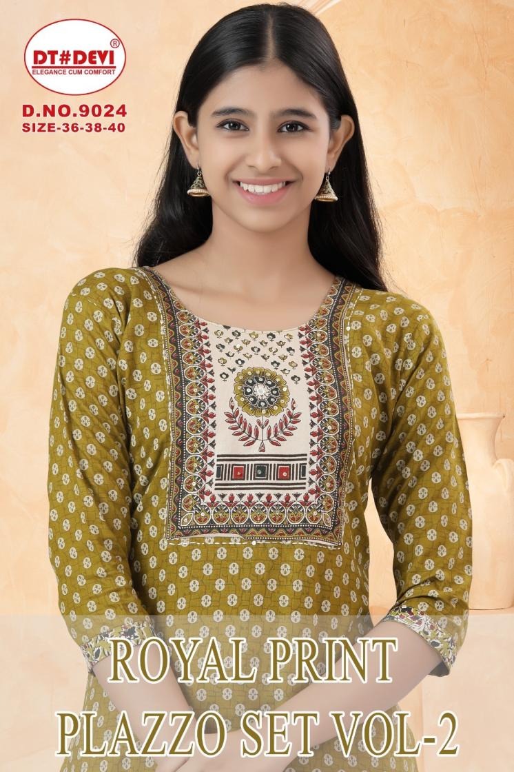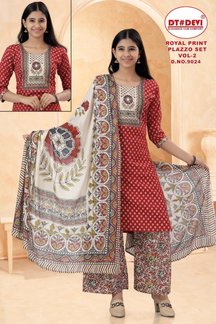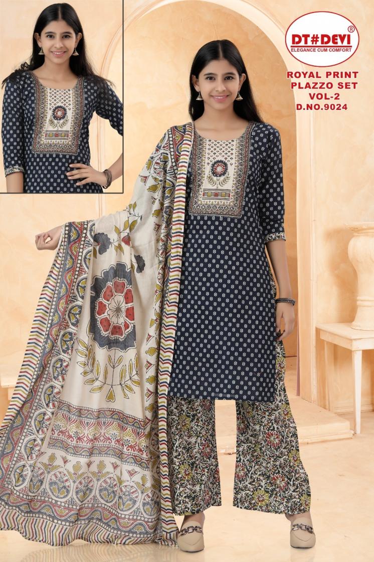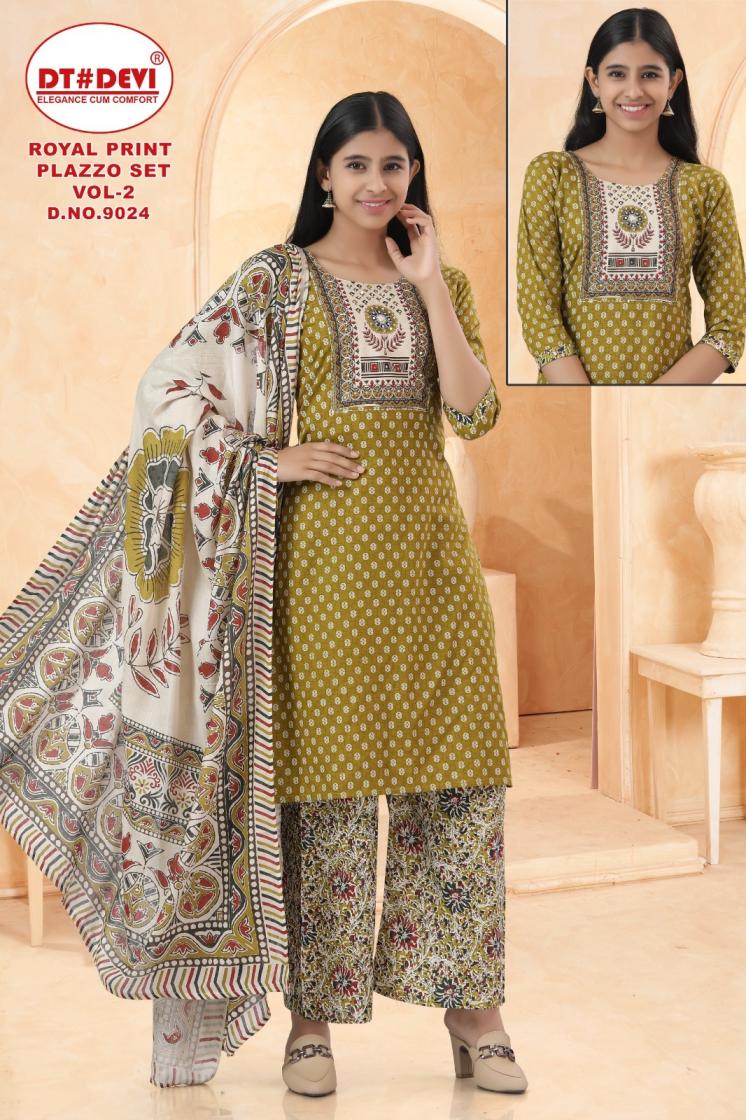 dt devi 9024 royal print plazzo set vol 2 cotton readymade casual combo kids dress